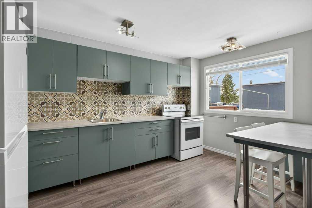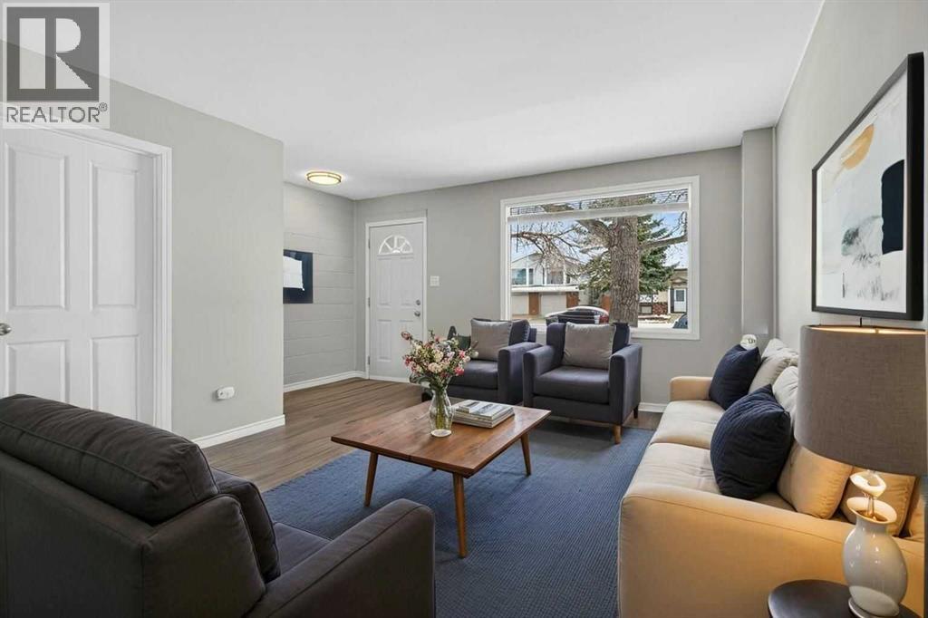 Step inside to discover a bright, open-concept layout with updated flooring throughout and a fully renovated kitchen complete with newer appliances, including a fridge and range. The kitchen seamlessly connects to a versatile flex space—ideal for a dining area, home office, or additional living space to suit your needs. The spacious great room opens onto greenspace, perfect for relaxing or entertaining. Upstairs, you’ll find a generous primary bedroom, two additional well-sized bedrooms, and a fully updated bathroom. Primary bedroom offers a large East facing patio. The unfinished basement provides ample storage, laundry space, and future development potential to add even more living area. A unique bonus in the basement is the soundproofed room—an ideal setup for working from home, gaming, or creative musical pursuits. New furnace in 2020. Enjoy the quiet setting with a concrete patio off the rear entrance and beautifully maintained green space throughout the complex. An oversized assigned parking stall plus additional street parking adds to the convenience. Ideally located close to schools, parks, shopping, and transit, with quick access to 16th Avenue, Deerfoot Trail, and downtown Calgary—this is an excellent opportunity to own in a well-connected and established area. Some photos have been digitally staged. (id:49203)