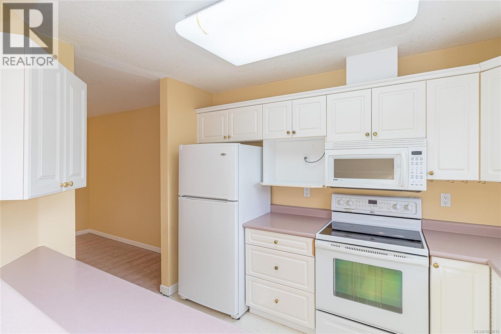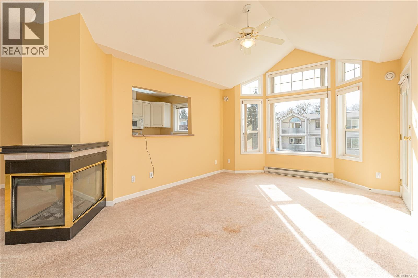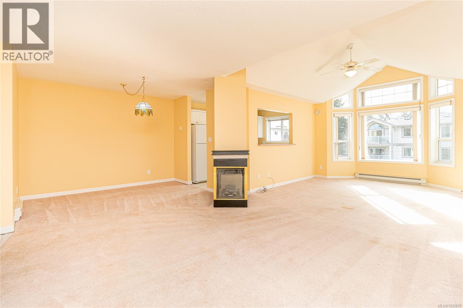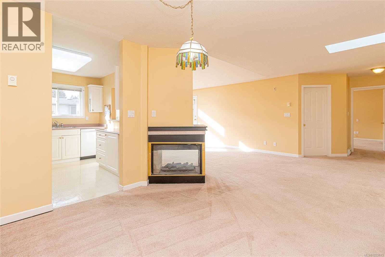 $499.40 MonthlyWelcome to Unit 303-245 First Street in the highly sought-after 55+ Centennial complex in the heart of Duncan! This spacious top-floor, 1,262 sq ft 2-bedroom, 2-bathroom condo offers secure entry, elevator access, and comfortable living in a well-managed building. The open-concept living and dining area is warm and inviting, highlighted by a cozy three-sided natural gas fireplace that beautifully separates the two spaces. The living room features vaulted ceilings, large south-facing windows that fill the home with natural light, and direct access to the private balcony. The bright kitchen enjoys its own south-facing window and convenient pass-through to the living room — perfect for entertaining and staying connected with guests. The generous primary bedroom offers balcony access, a walk-in closet, and a private 3-piece ensuite. The second bedroom also overlooks the balcony, making it ideal for guests or a hobby space. A full 4-piece main bathroom, along with in-suite laundry and additional storage, adds everyday convenience. Additional features include: Newer hot water tank Balcony awning for shade and comfort Dedicated parking stall 1 cat or 1 dog permitted Located within walking distance to beautiful Centennial Park and downtown Duncan’s shops and amenities, this is an exceptional opportunity to enjoy easy, low-maintenance living in a vibrant community. A wonderful place to call home! (id:49203)