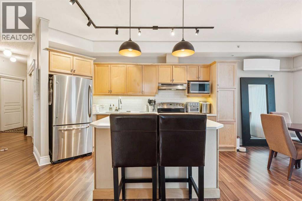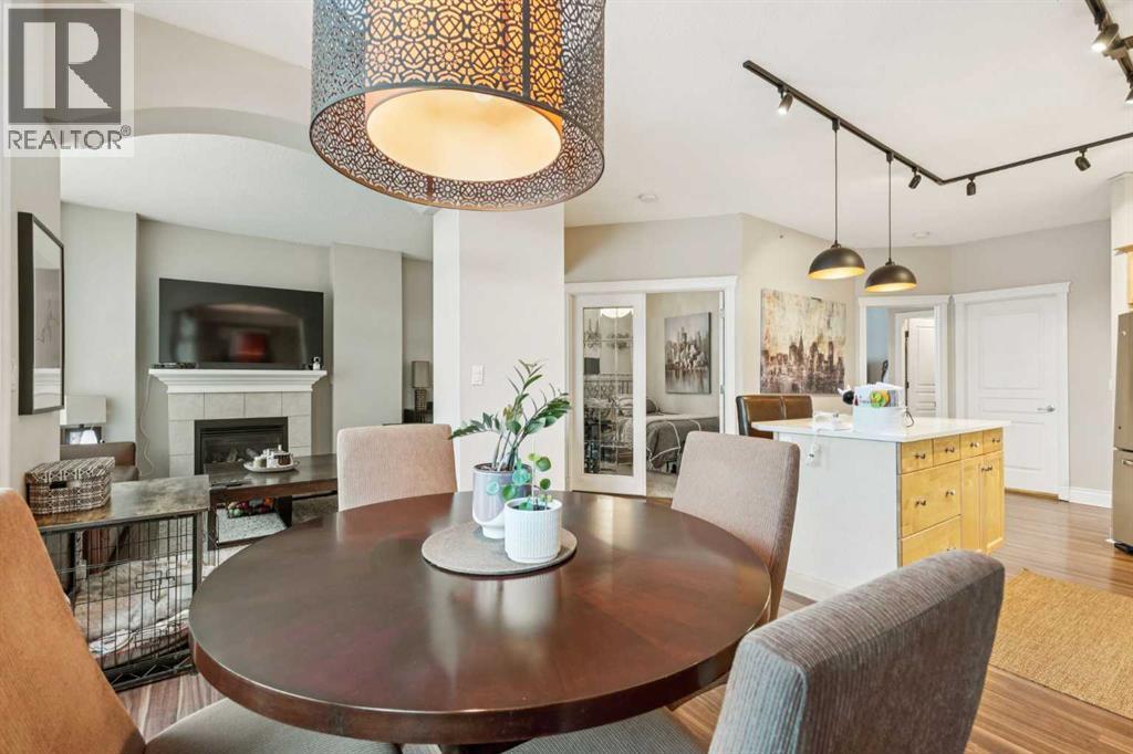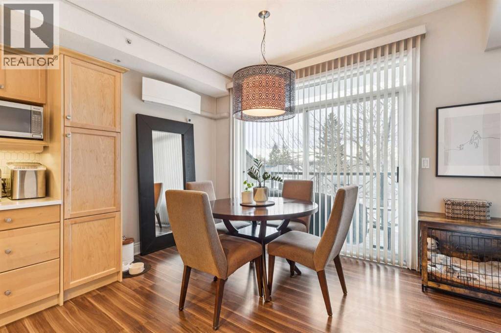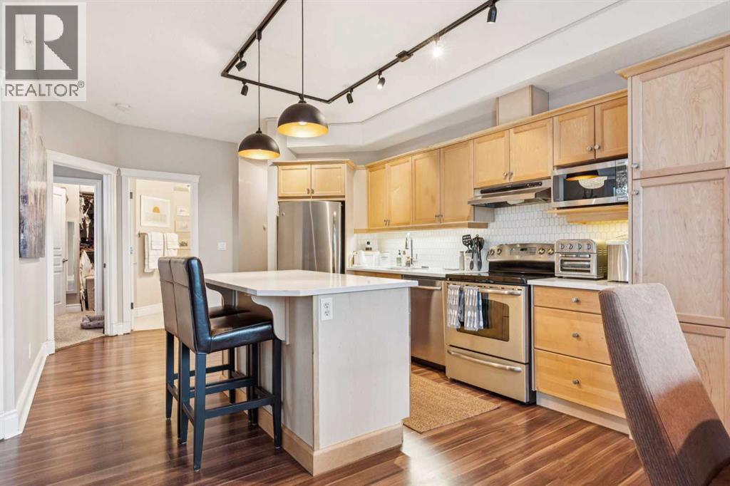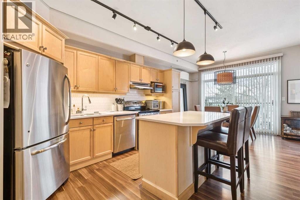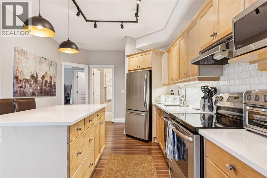 $506.37 MonthlyWelcome to Kensington living at its finest. Beautifully updated 2-bedroom, 1-bath condo located in the heart of Hillhurst, just minutes to downtown and steps from Kensington’s shops, cafés, transit, and river pathways. Professionally renovated in 2021, this home features an open-concept layout with quartzite countertops, Shaker-style maple cabinetry, stainless steel appliances, laminate flooring, ceramic tile, and a cozy gas fireplace. The kitchen is well designed with ample storage and functional counter space. Bright living and dining areas open onto a west-facing balcony with natural gas BBQ hookup, ideal for enjoying afternoon and evening sun. Additional highlights include central air conditioning installed in 2024, new bedroom carpet (2025), in-suite laundry, and underground heated titled parking with visitor parking. Residents enjoy an array of building amenities including elevator access, fitness center, party room, secured parking, storage, and visitor parking. Well-managed building in one of Calgary’s most walkable inner-city communities. A move-in-ready home offering excellent value and lifestyle. A must see to be truly appreciated! (id:49203)