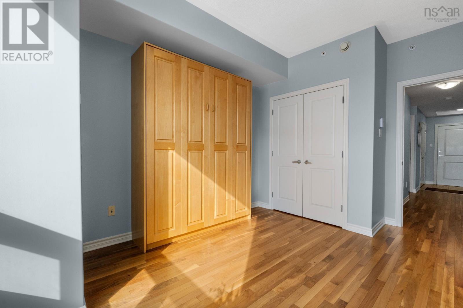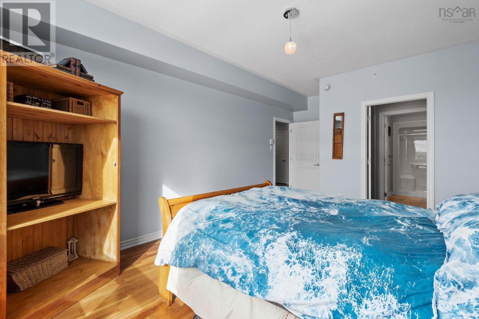 Welcome to this exquisite natural light filled, lake facing, 2-bedroom, 2-bathroom condo in Dartmouths desired 77 Russell Lake Drive. Entering the condo, you will be captivated with the beautiful hardwood flooring and refreshing daylight. To the left of the main foyer you find the in-unit laundry with steam washer & dryer / storage area. Proceeding through the foyer you will be awe-struck by the open concept kitchen, dining room and living room which opens onto a panoramic balcony overlooking the lake. The open concept kitchen is perfectly arranged for multiple home chefs, featuring stainless steel appliances, new counter tops and back splash with an entertaining peninsula. Impressive living room / dining rooms flow well together, naturally light filled and perfectly aligned for easy access to the large balcony, ideal for entertaining family and friends. On the private side of the condo you will find a roomy primary bedroom with picture-perfect lake views, a walk-through closet and 3-pc EnSuite. The guest bedroom includes a murphy bed, lots of closet storage, magnificent views and easy access to the 4-pc guest bath. Completing the condo is a large in-suite storage area. Condo includes 1 underground parking spot plus attached storage room. Amenities include a large common room, gym area, lower level storage, generator and outside deck. Ideally located to shopping areas, public library, access to major traffic arteries, it is only a short commute to downtown Dartmouth, Dartmouth Commons or Halifax International Airport. (id:49203)