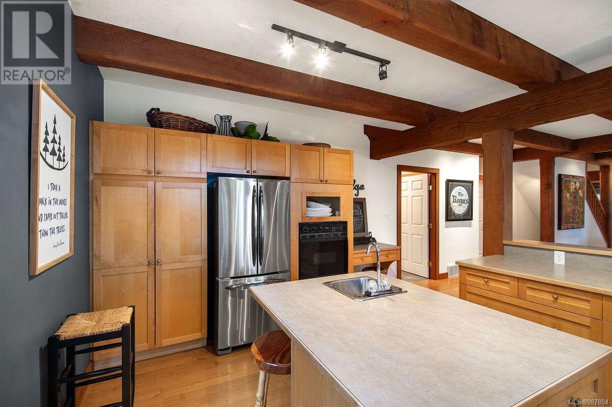 For additional information, please click on the Brochure button. Location, location, location. Set on a 1/3 acre property bordering the Willow Creek Conservation Forest and trails. Reclaimed old growth Douglas Fir timber frame posts and beams bring the natural beauty of the outdoors inside. Three storeys, 3,543 sqft of thoughtfully designed space allows single family living, intergenerational living, accessible main floor living and a potential in-law suite. Open concept main level features 10 ft ceilings, flooded with natural light, access to the stone patio and can easily transform from a cozy oasis to the perfect entertaining hub. Second floor features 2 bedrooms, bonus room, 1 bathroom, and a reading nook. Downstairs includes finished bedroom, bathroom, family room, with private entrance and storage room. This home embodies a perfect balance of comfort, convenience, and peaceful connection to nature making it a truly special living experience. (id:49203)