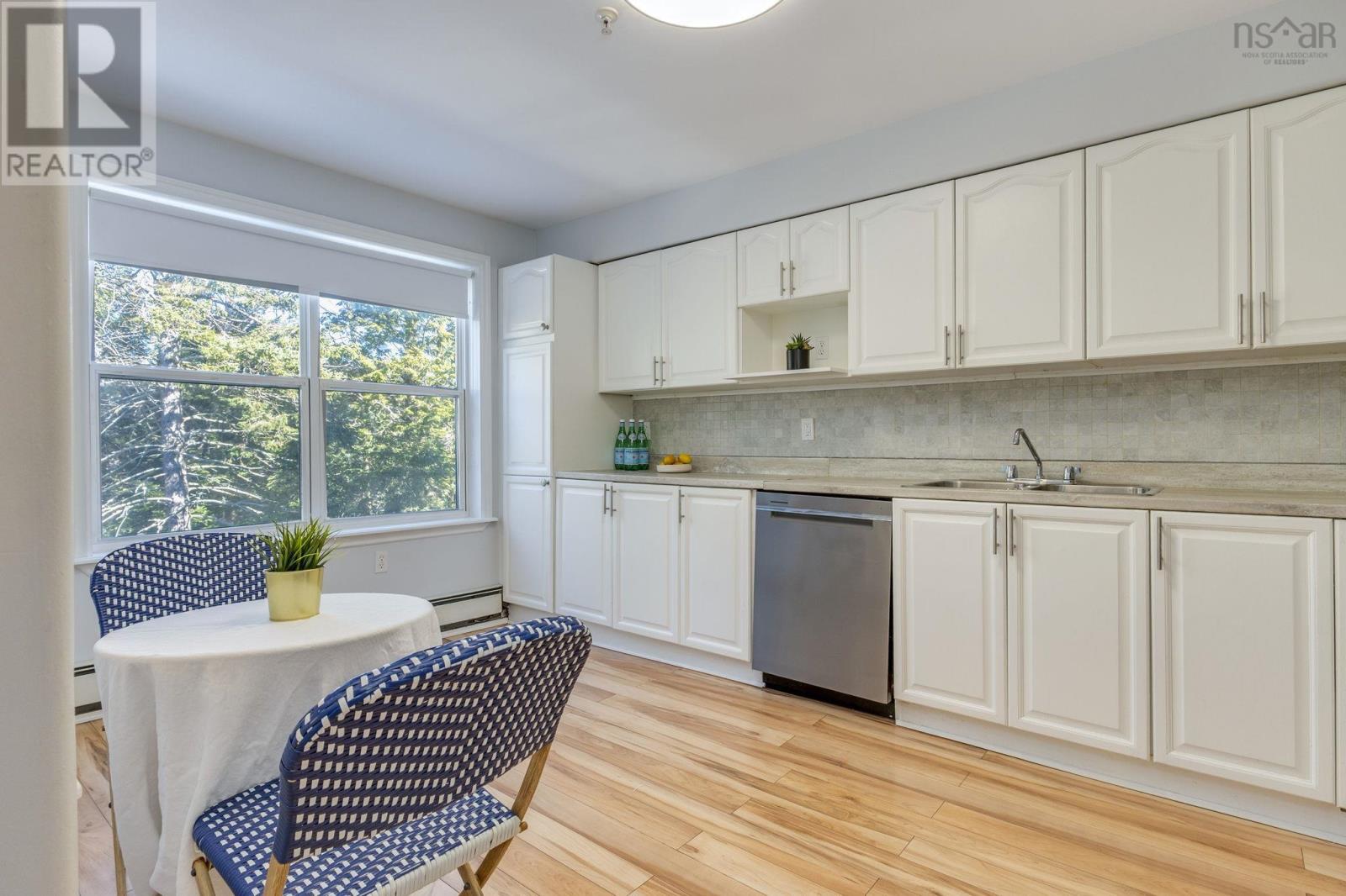 $596.18 MonthlyWelcome to 311 2 Lake Drive, Bedford a coveted corner unit perfectly positioned to offer privacy, natural light, and peaceful views of the surrounding trees and Papermill Lake. This spacious 2-bedroom, 2-bathroom condo combines comfort, convenience, and style in one of Bedfords most desirable locations. Freshly updated with a new stainless steel fridge and dishwasher (2023) and fresh paint throughout (2023), this home is truly move-in ready. Enjoy an open-concept layout with a bright living and dining area that flows naturally towards a private balcony where you can relax among the trees. The primary bedroom features a generous layout with an ensuite bath, while the second bedroom is ideal for guests, an office, or a hobby space. A well-designed kitchen, in-suite laundry, and great storage complete this functional floor plan. Located in a quiet, well-managed building, the unit includes indoor parking, a generous storage locker, an exercise room, and a library. It is close to parks, walking trails, and all Bedford amenities, including shopping, dining, and quick highway access. Not to mention Papermill Lake - for swimming, skating or canoeing! (id:49203)