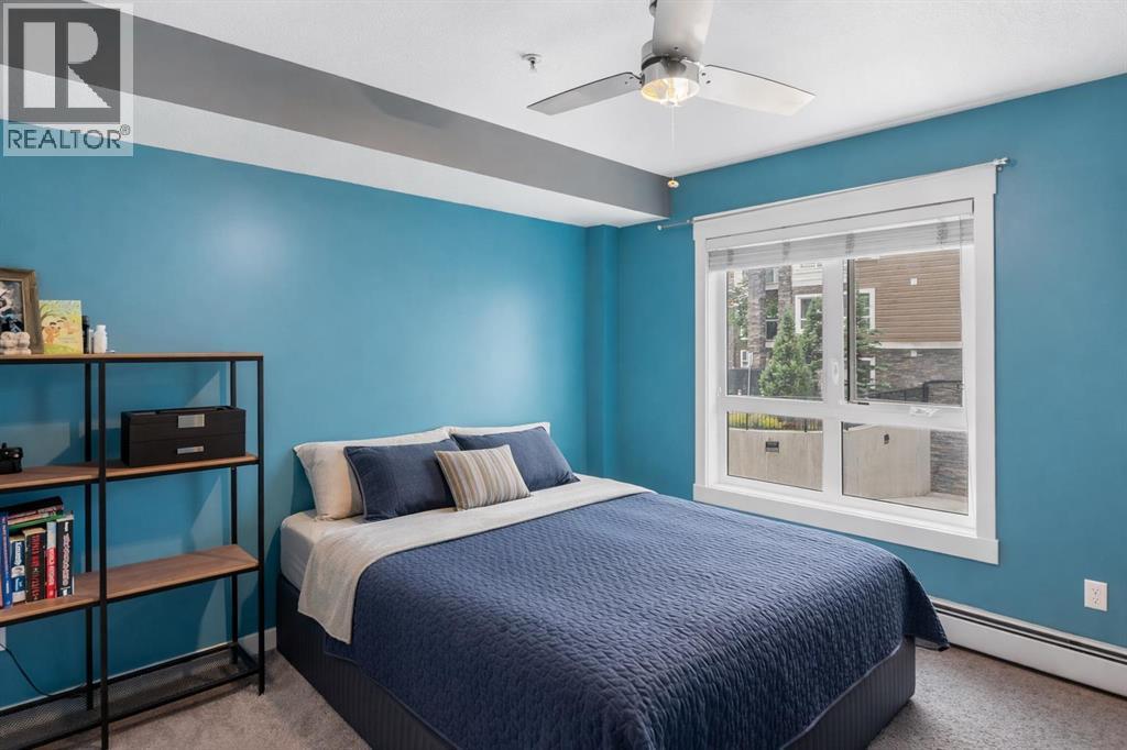 $623.20 MonthlyTwo titled parking stalls, one above ground and one in the heated underground parkade, set this unit apart before you even step inside. That combination is rare at this price point in Skyview Ranch, and whether you're an owner-occupant, sharing with a roommate, or investing, the flexibility is real. The Skymills corner unit offers over 945 sq ft with two bedrooms, two full bathrooms, and south and west-facing windows that pull in light throughout the day. Cork flooring runs through the open-concept main area, where a modern kitchen with quartz countertops and generous cabinetry flows into the living and dining space. Functional for everyday life, comfortable for guests. The primary bedroom is private with its own ensuite and double closets. The west-facing patio comes with a gas line, giving you a true outdoor extension of the living space. Both bedrooms are well sized with no compromises. Location delivers on the basics: parks, schools, shopping, transit, and airport access are all close. A smart entry point into Skyview Ranch for first-time buyers and downsizers, and a solid long-term hold for investors. (id:49203)