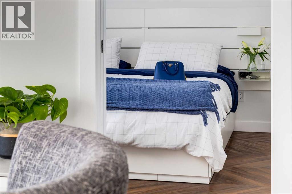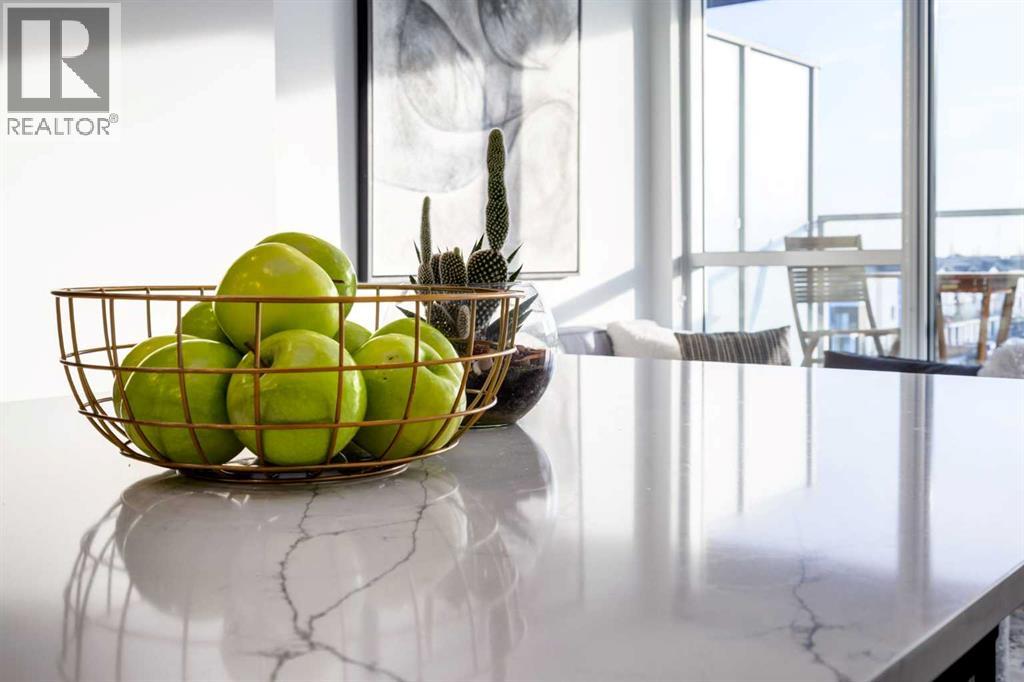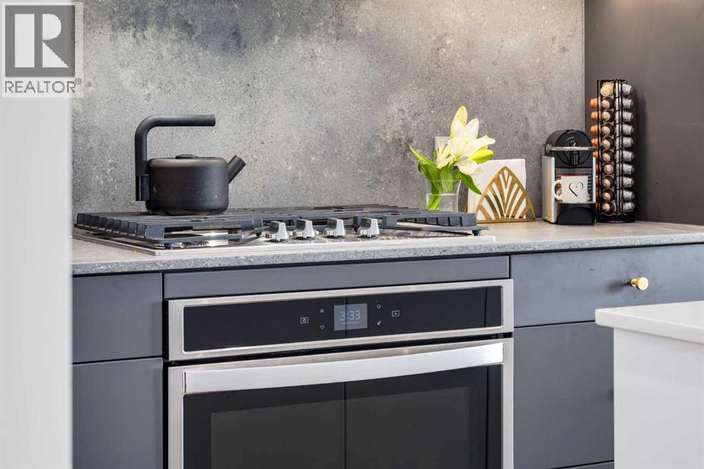 $402.10 MonthlyOPEN HOUSE SATURDAY, MARCH 7TH, FROM 2PM TO 4PM. Located in the heart of West District, this bright south-facing two-bedroom, two-bathroom home offers an exceptional blend of privacy, natural light, and outdoor living. One of the few residences in the building with a generously sized patio, it backs onto the beautiful church park, offering views that will always remain open. The home offers 792 square feet of thoughtfully designed interior space, expanding to 962 square feet when including the private patio. The patio is perfect for morning coffee, summer dining, or entertaining, with plenty of room for a BBQ and outdoor seating. The open-concept living and dining areas are filled with natural light from floor-to-ceiling windows. High ceilings and refined painted finishes create a bright and inviting atmosphere. The chef-inspired kitchen features matte grey slate cabinetry with soft-close hardware, brushed gold accents, white quartz countertops, a coordinating backsplash, and premium appliances, including a Whirlpool five-burner cooktop and oven, Elica range hood, and Fisher & Paykel integrated fridge and freezer. The primary suite is a serene retreat, with large windows that fill the room with natural light. The walk-in closet provides ample storage, and the beautifully finished three-piece ensuite features quartz countertops, modern fixtures, and spa-inspired finishes. The second bedroom is spacious and versatile, ideal as a guest room, home office, or creative space, with convenient access to the four-piece bathroom. Additional highlights include an oversized washer and dryer and ample storage throughout. Residents enjoy access to premium amenities, including a rooftop patio, private owner’s lounge, secure underground visitor parking, bike storage, EV charging stations, and concierge services. Ideally located in Calgary’s West District, you are steps from parks, walking paths, boutique shops, cafés, and dining options. A rare opportunity to secure a south-facing home with beautiful views, elevated outdoor living, and exceptional value. Schedule your private viewing today! (id:49203)