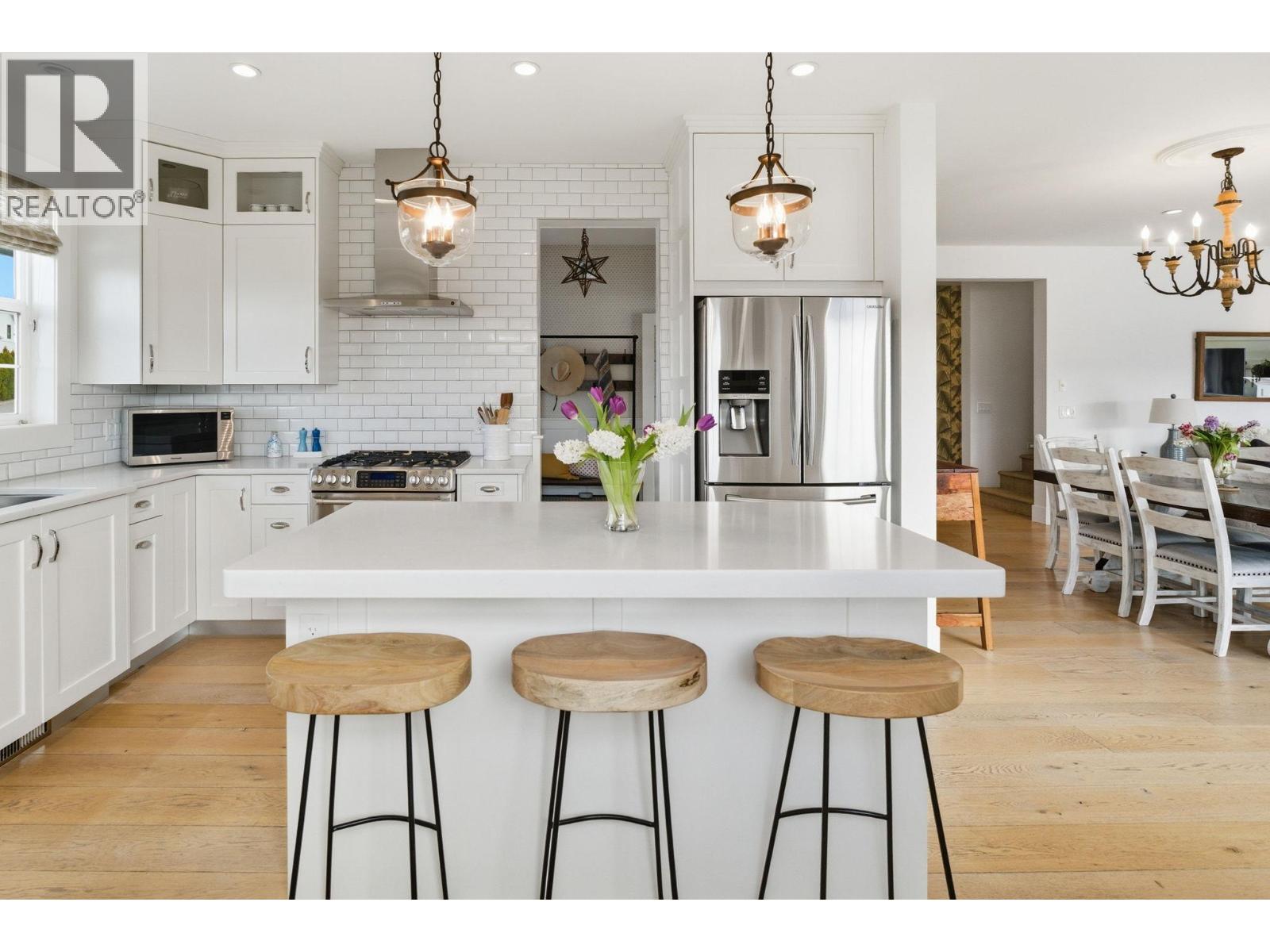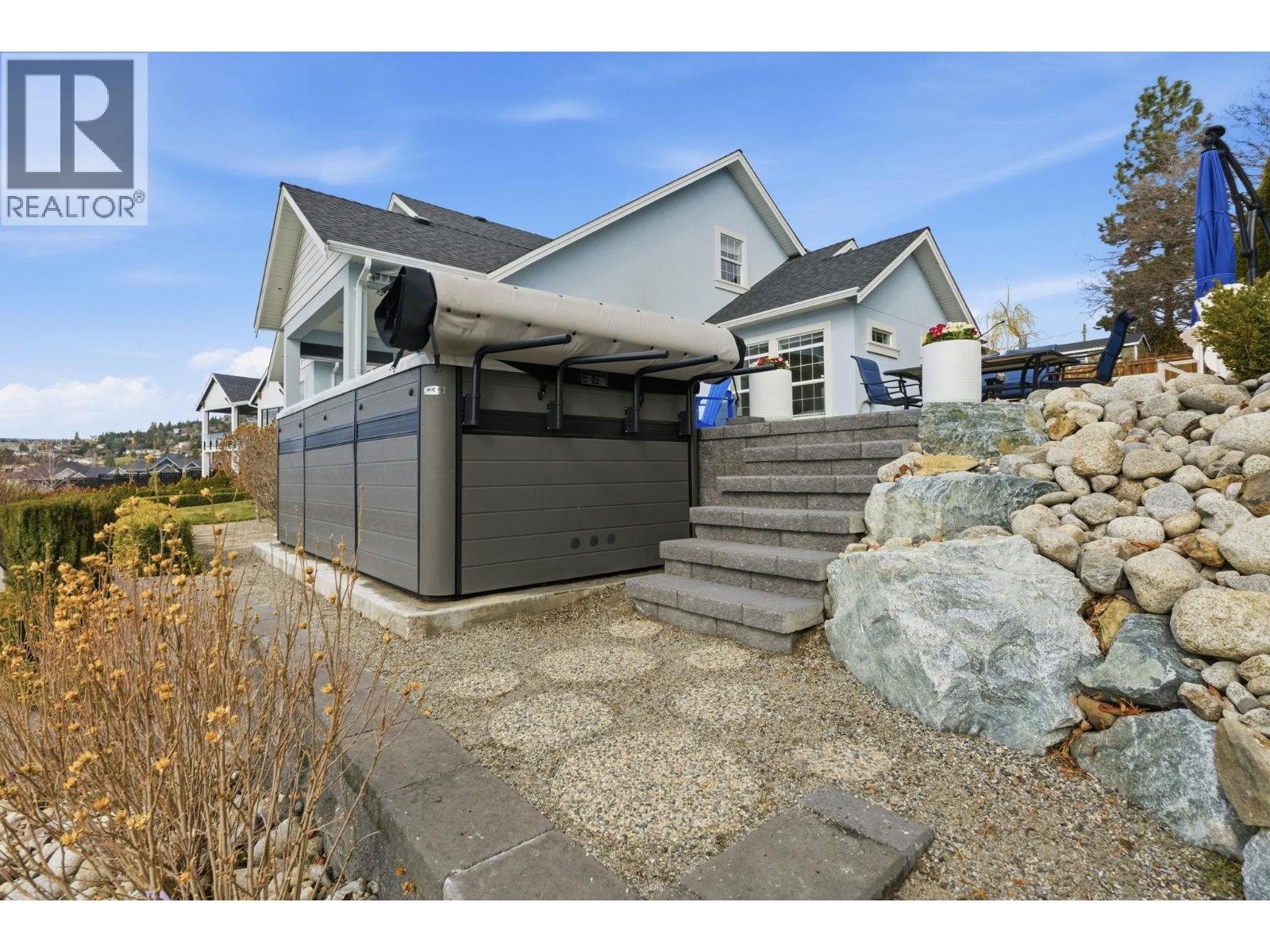 $100 MonthlyWelcome to this truly unique home, filled with natural sunlight and showcasing beautiful lake views, tucked within the exclusive and peaceful community of Kalamoir Vista. Offering over 3,300 sq ft, this 4-bedroom, 4-bathroom residence blends character, comfort, and functionality — far from cookie-cutter design. Thoughtfully laid out for main floor living, the home also provides generous upper and lower levels ideal for family or guests. The main level features a spacious primary bedroom with a luxurious ensuite, allowing for convenient one-level living. The bright white kitchen with island opens seamlessly to the living space, highlighted by tray ceilings and wide plank hardwood flooring. Patio doors extend your living area outdoors to a covered patio, perfect for enjoying the surrounding views. Upstairs, you’ll find two additional bedrooms, a full bathroom, and a versatile loft space — ideal as a home office, media area, or playroom. The fully finished basement offers even more flexibility with a fourth bedroom, bathroom, and a large family room, along with ample storage. Oversized garage allows for even more storage. Step outside to a beautifully landscaped yard with expansive patio spaces designed for entertaining or relaxing while taking in Okanagan Lake and city views. The perfectly placed Swim Spa offers year-round enjoyment — cool off in the summer or unwind in the winter with hot tub functionality. Ideally located within walking distance to Kalamoir Regional Park, nearby wineries, trails, golf courses, and restaurants, and just a short 10-minute drive to Kelowna City Park and Downtown Kelowna. A rare opportunity to own a distinctive home offering privacy, lifestyle, and breathtaking surroundings. (id:49203)