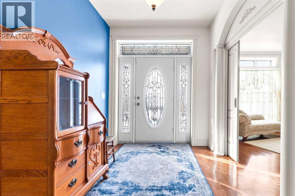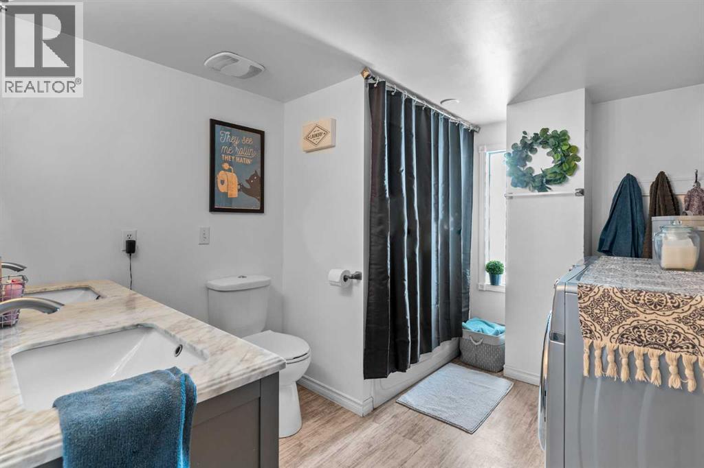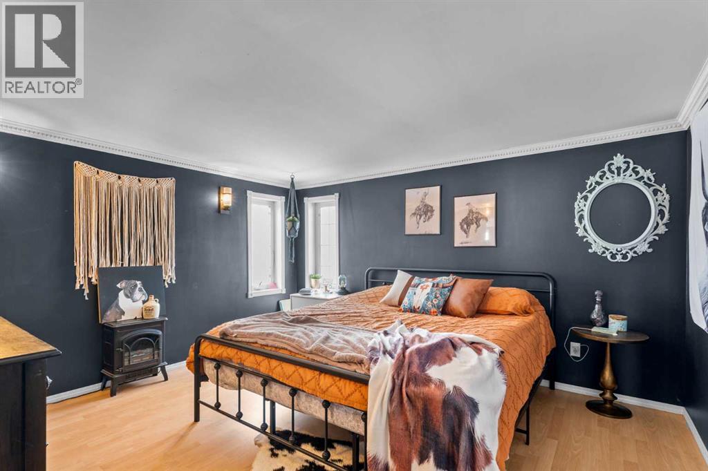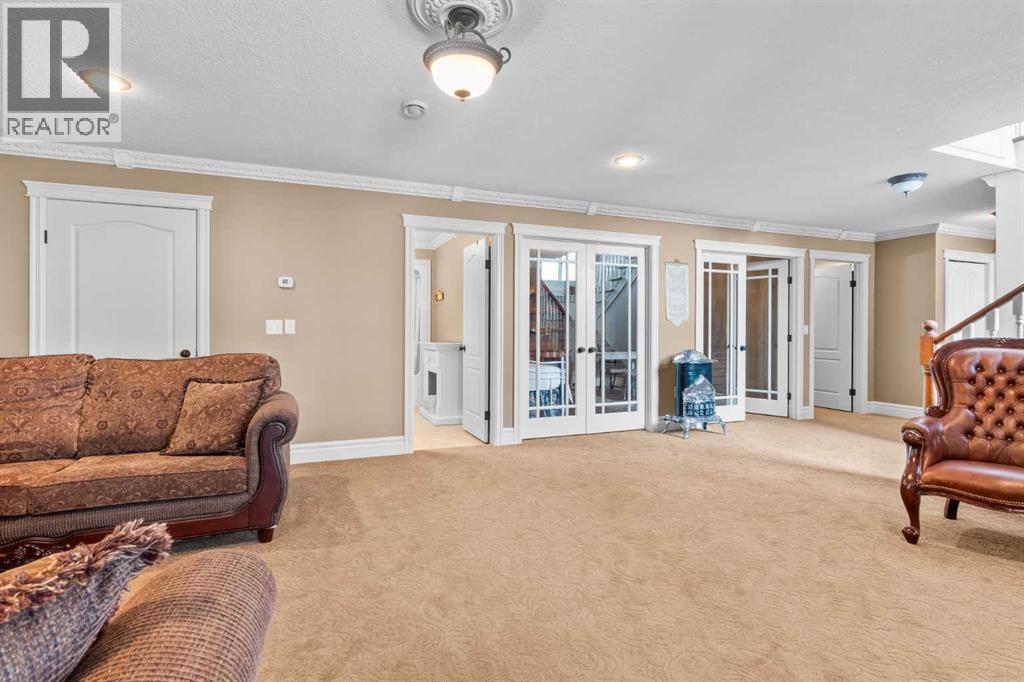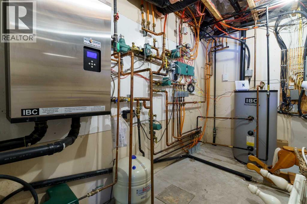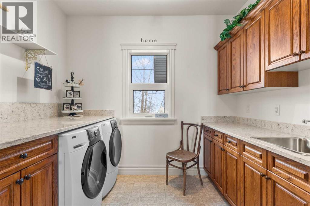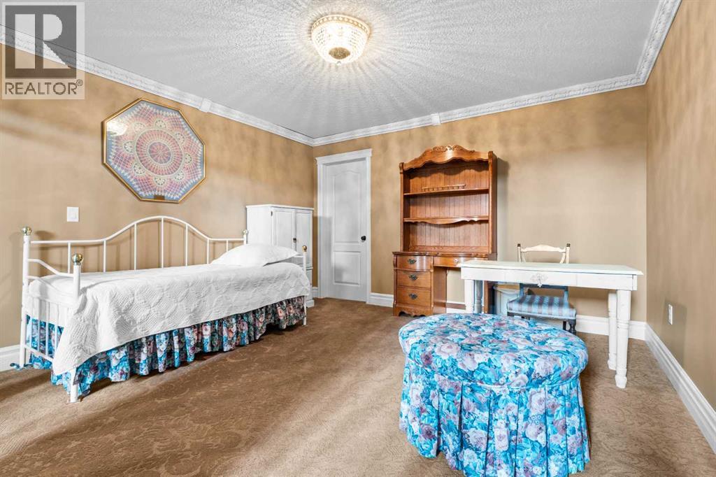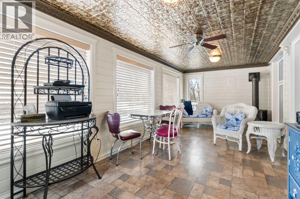 This beautifully landscaped 5.49-acre acreage offers exceptional potential for a small/medium-sized business and additional housing for extended or blended families. Located 5 minutes north of Didsbury, AB, and 10 minutes south of Olds, AB, just off Highway 2A, it boasts gorgeous mountain views. The main house, with 2,017 sq ft of French country charm, features crown moldings, barn and French doors, and hardwood floors. The spacious kitchen, updated in 2023, has a two-tiered island, quartz countertops, a farmhouse sink, hard wood floors and ample cabinet space. The main floor also includes a dining room, living room, covered maintenance-free veranda with an outdoor kitchen. Master bedroom with a 4-piece ensuite, fireplace, soaker tub, and walk-in closet. Additional spaces include a 2-piece bath, second bedroom, laundry room, mudroom, and garage entrance. The fully finished walk-out basement provides 1,735 sq ft, featuring 2 bedrooms, a media room, a 4-piece bath, a playroom, and storage. ICF construction, crown moldings, fresh paint (2023), and in-floor heating throughout enhance the home's appeal. The oversized, heated double garage has a paved driveway. The property includes a 6,400 sq ft shop (128' x 50') with three-phase power. Features include a 50’x24’ drive-through wash bay with 12’ overhead doors, a 50’x24’ welding bay with a 16’ overhead bay door and crane. 50’x80’ main shop area with two 14’ bay doors and 16’ clearance. The shop also has a wood workshop, paint storage, front office space, and a 3-piece bathroom. A new boiler (2024) ensures in-floor heating. Above the woodworking shop, a spacious living area includes a kitchen, laundry, 4-piece bathroom, 3 bedrooms, a master bedroom with a walk-in closet, and a storage room. The mezzanine adds additional living space, perfect for additional family members. This exceptional property has been meticulously maintained and offers an unparalleled combination of country residential comfort and business potential. Whether you are seeking a spacious family home, a live-work opportunity, or a combination of both, this acreage provides a rare and sophisticated setting with limitless possibilities. (id:49203)