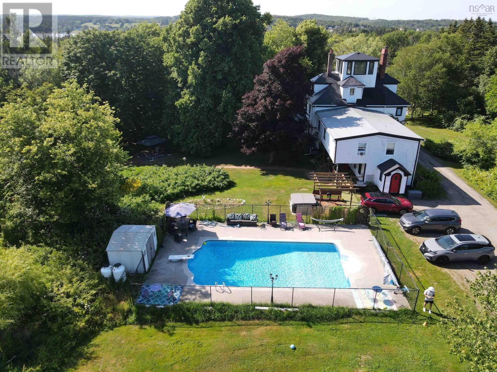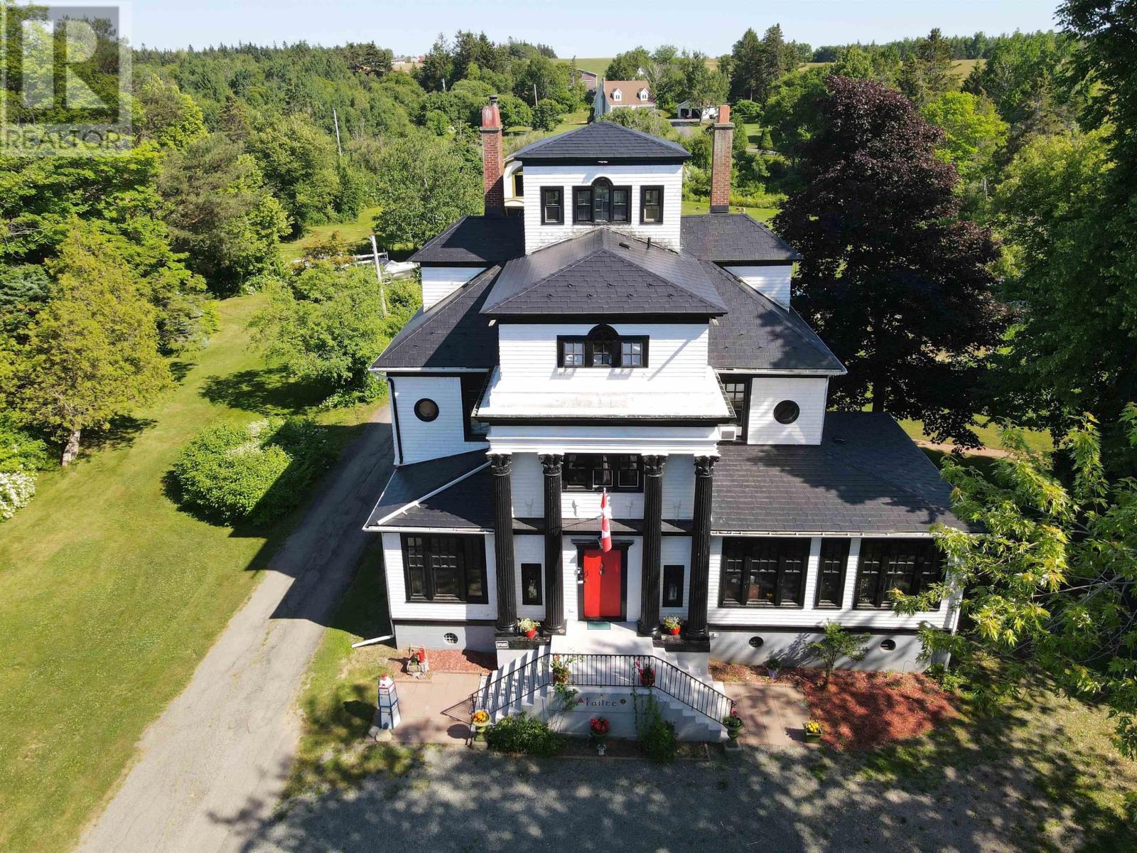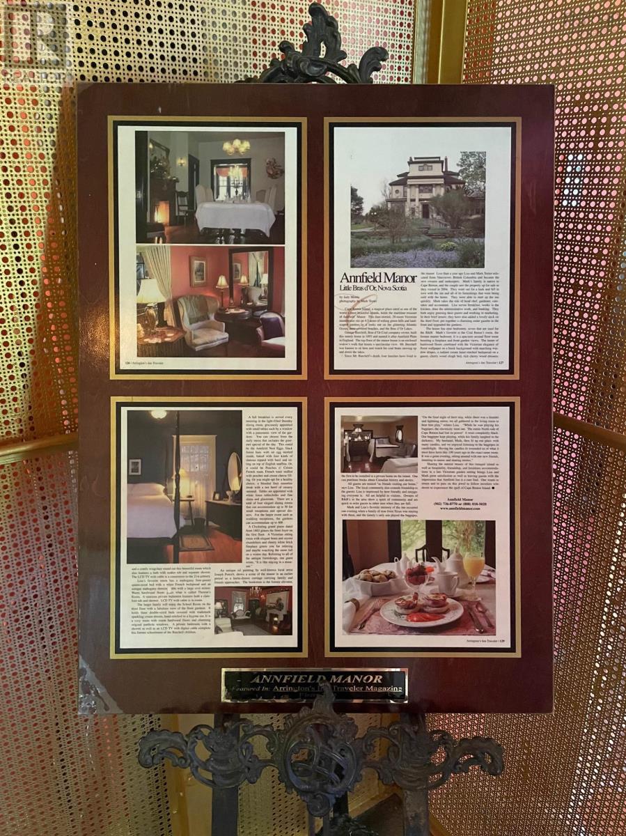 Welcome to Annfield Manor, a piece of Nova Scotian history on beautiful Cape Breton, named one of the world's most beautiful islands. Just a stones throw from the world-renowned Bras DOr Lakes Canadas Inland Sea you will find this extraordinary 8-bedroom, 7-bathroom estate spanning 5,000 square feet over 4 stories and 28 rooms. Built by George Burchell, owner of the Bras dOr Coal Company, this grand manor is set on beautifully manicured grounds. The home features four working fireplaces, a generous eat in chefs kitchen with a propane oven, laundry off the kitchen, and seamless flow to a large covered deck perfect for outdoor dining and entertaining. Enjoy resort-style amenities including a hot tub, heated in-ground pool with two new propane tanks, putting green, and bocce ball court. A 70x80 barn currently functions as a spacious garage or workshop, while the mature gardens and charming Widows Walk add elegance and character to the estate. Ideal as a private residence, luxury B&B, event venue, or corporate retreat, Annfield Manor offers incredible income potential. Currently operating as a very successful BnB, it has previously also served as a wedding venue, photography set, and restaurant. With its rich history, premium features, and breathtaking location, this property is only limited by your imagination. It really is a spectacular home with so much to offer. Contact your Realtor today! (id:49203)