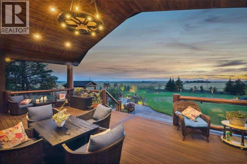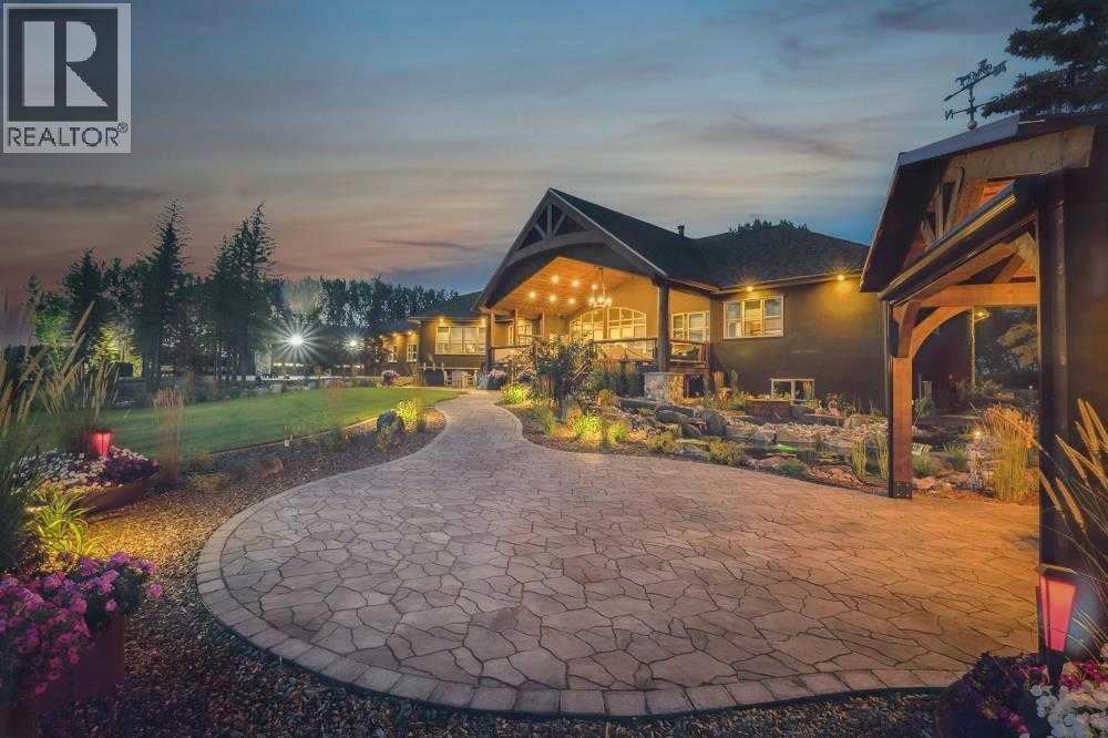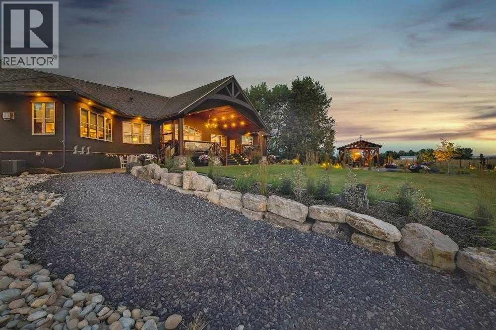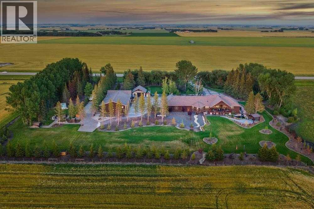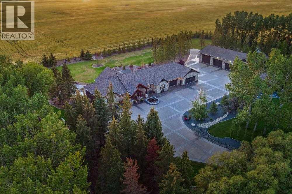 EXECUTIVE ACREAGE WITH STUNNING MOUNTAIN VIEWS AND A PARKLIKE SETTING! First time offered for sale and extremely rare opportunity to purchase this pristine 5.21 +/- Acres Located Just mins South of Olds on pavement. This is the perfect central Alberta location with Less than a 1hr drive to the Calgary airport and just 40 mins to Red Deer. The entire property sends a majestic mountain lodge feel where nature, towering trees, mature landscaping, gardens, family fire pit area, wide open spaces with waterfalls & streams soothe the soul. Executive touches greet you at the impressive main entrance with beautiful timbers, stonework, wrought iron fencing and over 46000 sqft (over 1 acre) of concrete driveway and stamped concrete edging inlays. The sprawling 3690sqft bungalow is loaded with features and class. Built with ICF Block foundation and a top of line list of mechanical features and sound system throughout. Rough edge quartz counter tops highlight a huge island kitchen with two dishwashers, a gas stove imported from overseas , under counter lighting, custom detailed wood artwork and more! The wide open concept and massive west facing windows allow for natural sunlight to stream throughout the entire main floor. Two Large fireplaces on the main floor & main floor laundry. The Primary bedroom is fit for a queen offering the most luxury built-in closet organizers and a massive ensuite with heated floors, two sinks and huge quartz shower. Two more large bedrooms, a 4pc and 2pc bath on the main floor. The basement features a large rec room, bar rough in and future room for even more development. The custom details don't stop in the 62' x 48' attached and heated garage with epoxy floors, 2pc bath, in-floor heart and a hot-water make up heater for quick recovery of heat. The concrete apron just outside the garage doors is also heated. Outbuildings include a fully finished 28' x 28 'detached garage and a massive fully finished 50' x 100' shop wi th bright LED lighting, in-floor heat, an RV sani-dump station and separate 1542 sqft legal suite. The legal suite includes two full 4pc baths, two bedrooms, large bonus room with custom fireplace mantel, custom kitchen and more! A true 10/10 showing is guranteed! Your best move starts here! (id:49203)