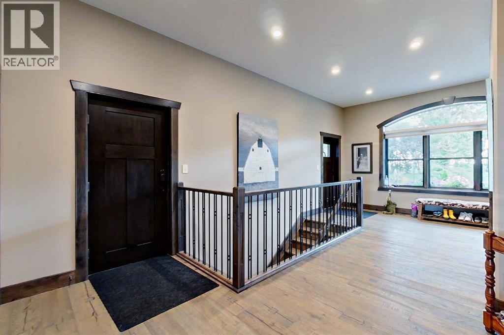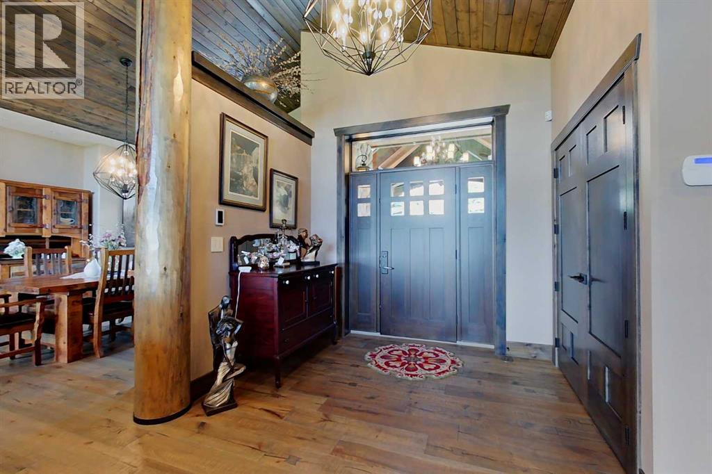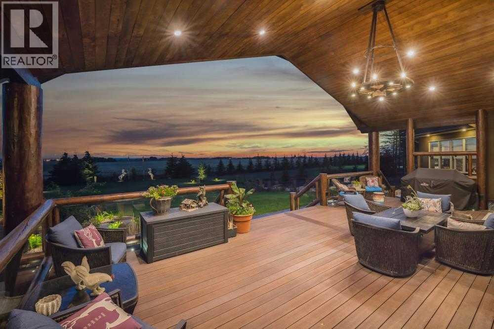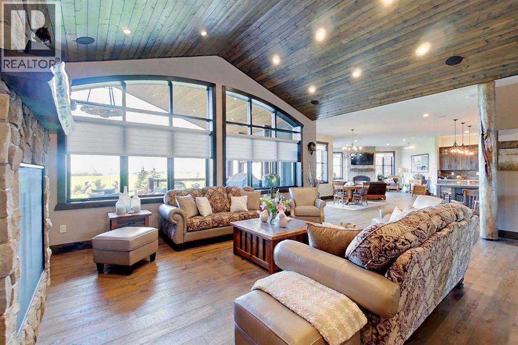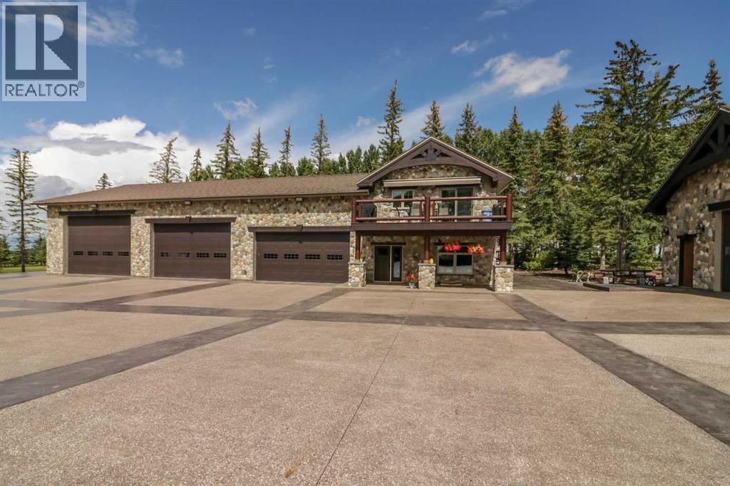 EXECUTIVE ACREAGE WITH STUNNING MOUNTAIN VIEWS AND A PARKLIKE SETTING! First time offered for sale and extremely rare opportunity to purchase this pristine 5.21 +/- Acres Located Just mins South of Olds on pavement. This is the perfect central Alberta location with Less than a 1hr drive to the Calgary airport and just 40 mins to Red Deer. The entire property sends a majestic mountain lodge feel where nature, towering trees, mature landscaping, gardens, family fire pit area, wide open spaces with waterfalls & streams soothe the soul. Executive touches greet you at the impressive main entrance with beautiful timbers, stonework, wrought iron fencing and over 46000 sqft (over 1 acre) of concrete driveway and stamped concrete edging inlays. The sprawling 3690sqft bungalow is loaded with features and class. Built with ICF Block foundation and a top of line list of mechanical features and sound system throughout. Rough edge quartz counter tops highlight a huge island kitchen with two dishwashers, a gas stove imported from overseas , under counter lighting, custom detailed wood artwork and more! The wide open concept and massive west facing windows allow for natural sunlight to stream throughout the entire main floor. Two Large fireplaces on the main floor & main floor laundry. The Primary bedroom is fit for a queen offering the most luxury built-in closet organizers and a massive ensuite with heated floors, two sinks and huge quartz shower. Two more large bedrooms, a 4pc and 2pc bath on the main floor. The basement features a large rec room, bar rough in and future room for even more development. The custom details don't stop in the 62' x 48' attached and heated garage with epoxy floors, 2pc bath, in-floor heart and a hot-water make up heater for quick recovery of heat. The concrete apron just outside the garage doors is also heated. Outbuildings include a fully finished 28' x 28 'detached garage and a massive fully finished 50' x 100' shop wi th bright LED lighting, in-floor heat, an RV sani-dump station and separate 1542 sqft legal suite. The legal suite includes two full 4pc baths, two bedrooms, large bonus room with custom fireplace mantel, custom kitchen and more! A true 10/10 showing is guranteed! Your best move starts here! (id:49203)