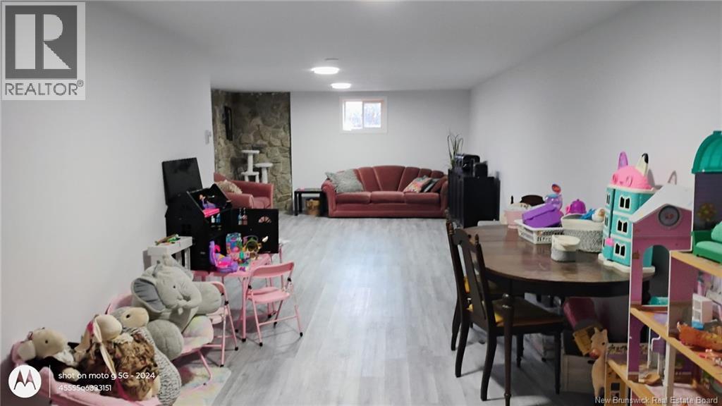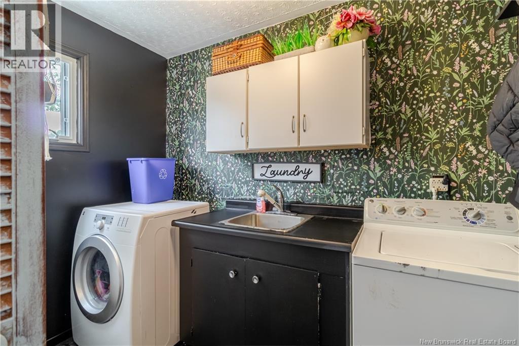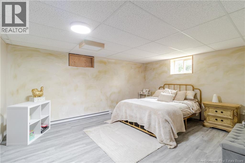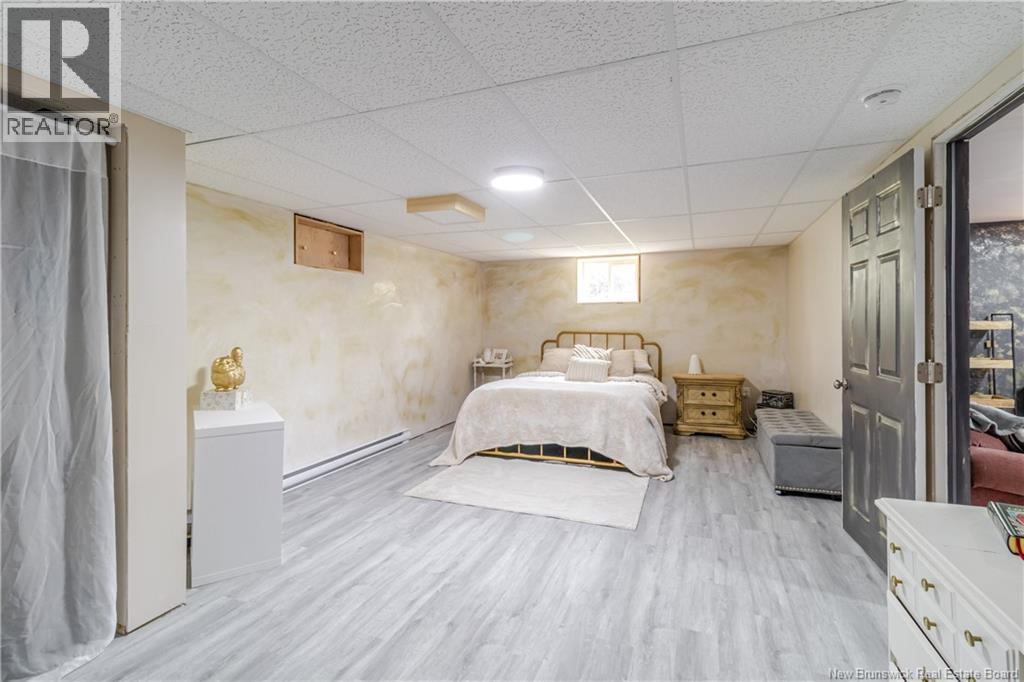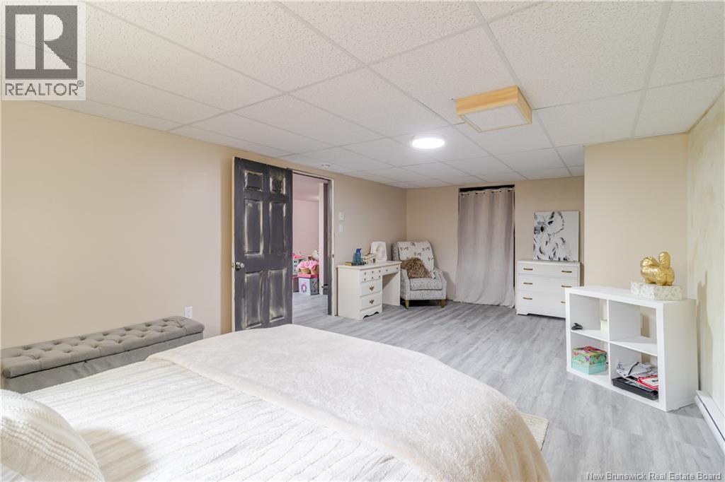This beautifully maintained 4 bedroom bungalow has lots of charm and has been painted & modernized with a newly added downstairs bedroom, living room & play area. Paved driveway with lots of curb appeal greets you as you pull in. Private fenced in back yard Oasis with privacy fence/ hedge & offers a garage/workshop at the back. Enter through the mudroom area with large laundry room w/sink. Main level offers a newly designed kitchen & dining area big enough for the whole family, which flows into the bright & cozy living area offering a propane fireplace. Out of the living area and into the hallway you will find lots of closets & storage space, leading to the 3 bedrooms & bathroom which all boast a unique warming custom touch.  Primary bedroom looks out onto the beautifully manicured back yard & has a custom  built-in wardrobe. Bathroom has a large soaker tub, stand-up shower & linen closet.  Downstairs you will find the recent renovation with huge bedroom, living area & playroom, along with 2 unfinished storage areas/utility room. Have the feel of the country yet be close to all amenities, minutes to Woodstock Golf & Curling Club, Superstore & the mighty Saint John River. (id:49203)