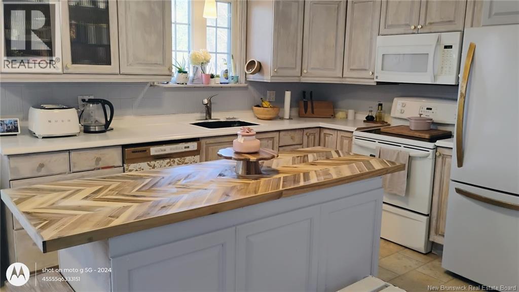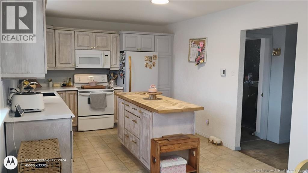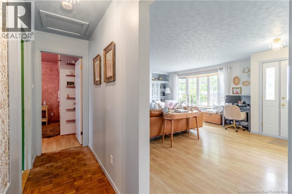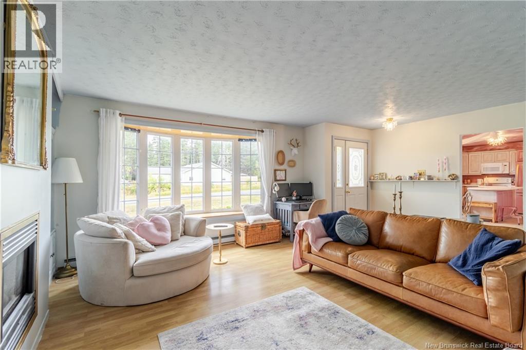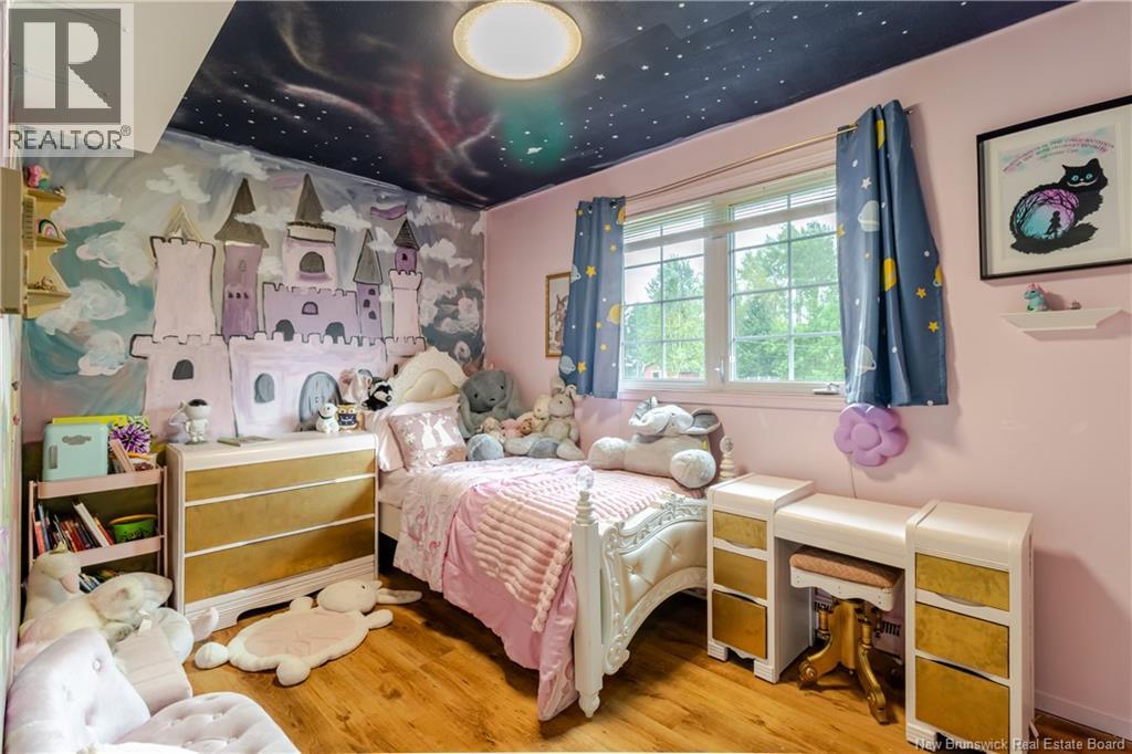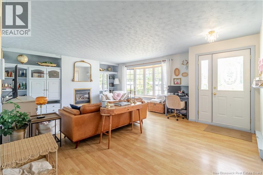 This beautifully maintained 4 bedroom bungalow has lots of charm and has been painted & modernized with a newly added downstairs bedroom, living room & play area. Paved driveway with lots of curb appeal greets you as you pull in. Private fenced in back yard Oasis with privacy fence/ hedge & offers a garage/workshop at the back. Enter through the mudroom area with large laundry room w/sink. Main level offers a newly designed kitchen & dining area big enough for the whole family, which flows into the bright & cozy living area offering a propane fireplace. Out of the living area and into the hallway you will find lots of closets & storage space, leading to the 3 bedrooms & bathroom which all boast a unique warming custom touch.  Primary bedroom looks out onto the beautifully manicured back yard & has a custom  built-in wardrobe. Bathroom has a large soaker tub, stand-up shower & linen closet.  Downstairs you will find the recent renovation with huge bedroom, living area & playroom, along with 2 unfinished storage areas/utility room. Have the feel of the country yet be close to all amenities, minutes to Woodstock Golf & Curling Club, Superstore & the mighty Saint John River. (id:49203)