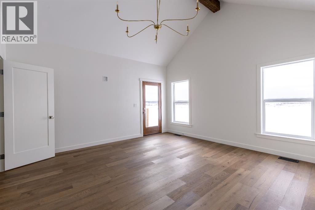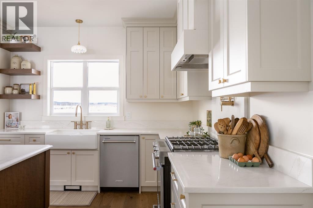 THIS BEAUTY IS NOW COMPLETE!! IF YOU’RE LOOKING FOR COUNTRY LIVING AT IT’S FINEST THIS IS THE ONE!! ONLY MINUTES AWAY FROM SUNDRE and you can escape to the tranquility of country living with MOUNTAIN VIEWS in this stunning 2107 sq ft “custom built” bungalow by Rosewood Homes & Design! This gorgeous home has HIGH END FINISHINGS inside, as well as HARDIE BOARD & HARDIE SHAKES on the exterior! You’ll love the fact the home is situated on 2.85 acres (on a quiet road, with no through traffic) and offers “BREATHTAKING VIEWS” to the west, ensuring peaceful and picturesque living! The layout has been thoughtfully designed and offers spacious rooms throughout the home, creating a balance of personal space and family connection. The impressive 9’ ceilings on both floors, combined with large windows, create an open, yet inviting space! From the moment you step into the foyer you can see this is an exceptional home! The elegant hardwood floors that flow throughout the home add warmth and sophistication, and the open concept of the main floor enhances the flow and promotes interaction with family and friends! The spacious living room has custom white oak built-in’s, gas fireplace for added ambience, as well as warmth. The heart of the home is always the kitchen, and this one does not disappoint! A chef’s dream some may say! From the custom 8’ white oak island, exquisite quartz countertops, to the carefully selected appliances including a 5 burner gas range, pot filler, & OVERSIZED walk-in butler pantry with floor to ceiling storage & a window that brings in loads of light! This is a perfect kitchen for culinary enthusiasts & large family gatherings! The main floor laundry features quartz countertops, LG washer and dryer, & a large farmhouse sink. There are 4 well thought out bedrooms (one could be the perfect office) 3 of the bedrooms are on one side of the bungalow, and the huge primary suite on the other, providing a quiet and tranquil retreat! Unwind in this beautiful bedroom suite with vaulted ceilings, spacious 5 pc ensuite / soaker tub and walk in shower! BONUS is the 10’6” x 5’9” walk-in closet, and the private door to the back deck where you can enjoy your morning coffee & mountain views! The undeveloped basement awaits your creative ideas to make it your own with room for a future family room, bathroom, 2 more bedrooms and storage room/cold room. The 24x26 garage is fully finished, heated, and provides ample space for vehicles, storage or a workshop. The Well produces 20 gpm, and there is a full filtration system and water softener, which still allows for 18 gpm! Don’t miss out on this rare opportunity to own a piece of paradise with a brand-new custom build, and so close to town! Call today and make your dream acreage a reality. Pls note** RMS square footage is based on builder's blueprint, many of the photos are a 3D rendering to give an idea of what the home will be. Call today :) (id:49203)