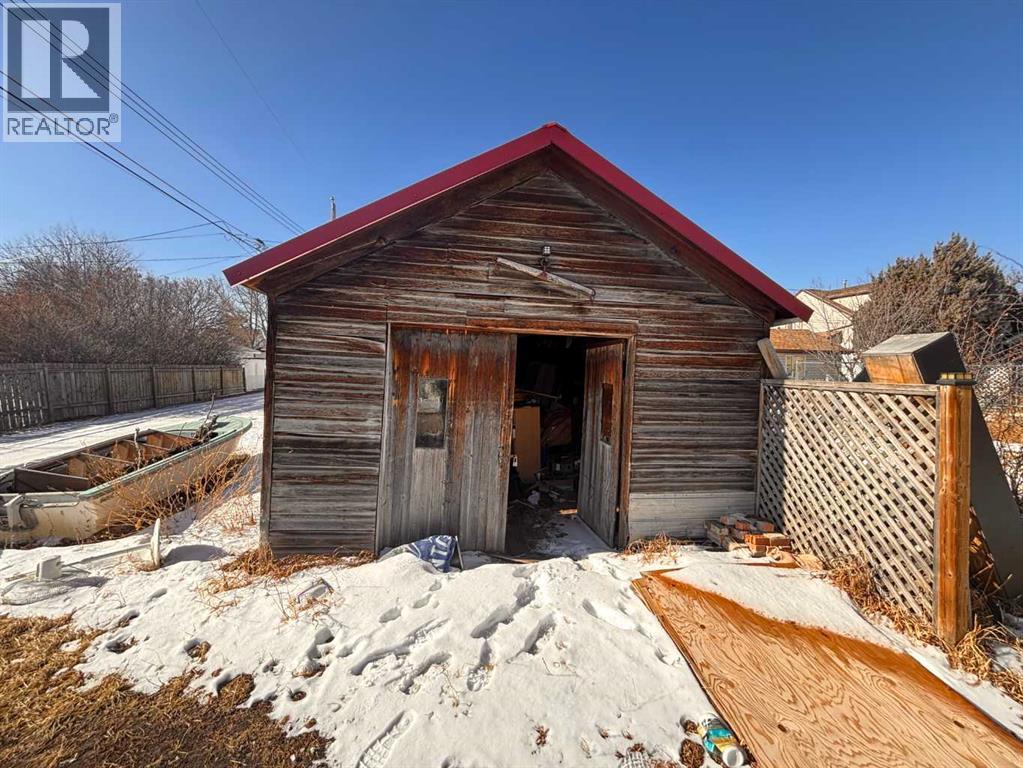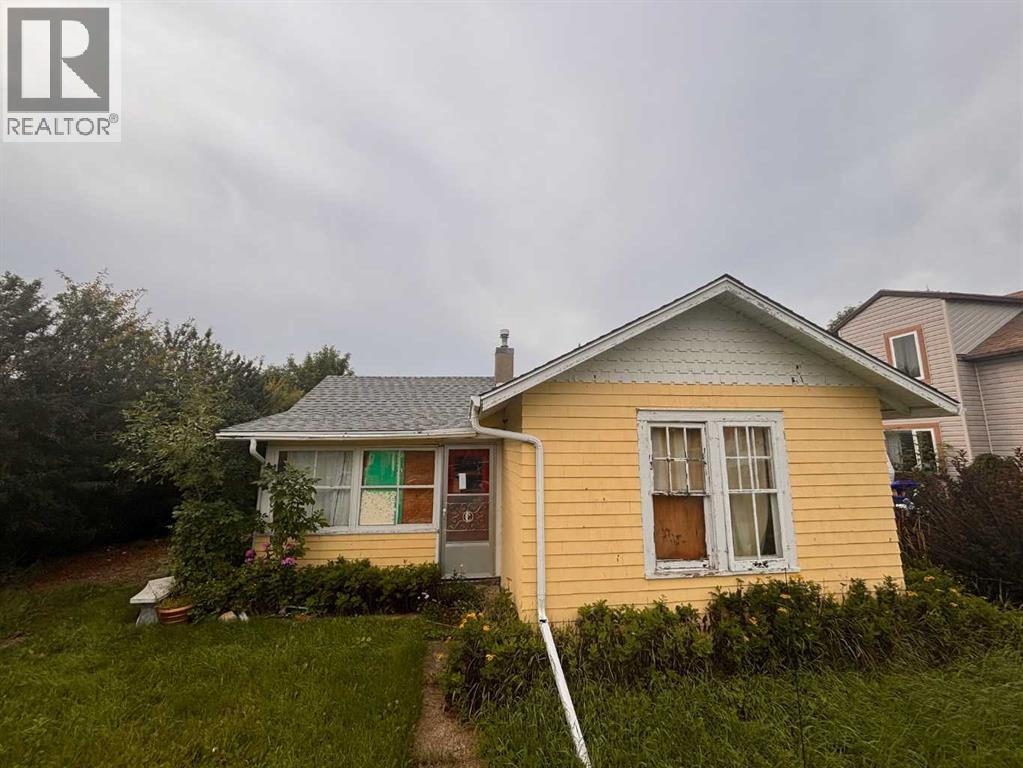 SOLD “as is – where is, on completion” *All offers must be cash and unconditional. Handyman special?, possibly, but much more appropriate for an in-fill opportunity. Located on a quiet street just one block to park, playground; short walk to post office & downtown business district. 1 bedroom bungalow with a full bath featuring a claw foot tub; eat-in kitchen with adjacent pantry, living room, bedroom and a sun porch. Original windows, wide baseboards and original hardwood floors in living room & bedroom. A partial basement houses the mechanical & storage area with an older forced air furnace. Large 50 X 140 lot features perennial beds, large trees, hedges, RV parking and additional parking space off the alley, beside and behind the 32x14 garage / shed. (id:49203)