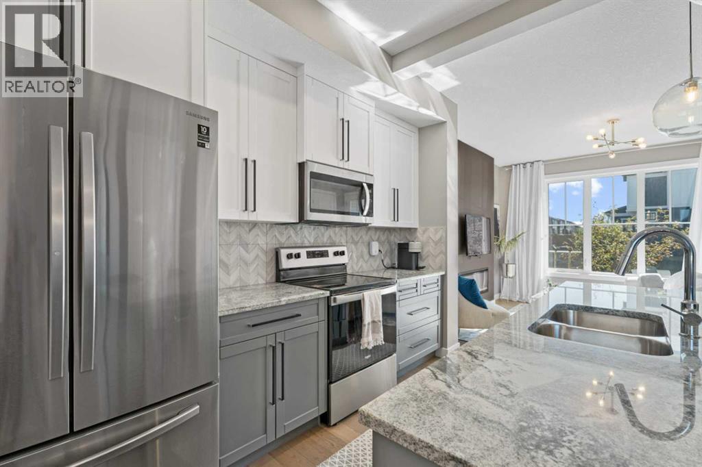 Welcome to this immaculate upgraded home in Lanark, one of Airdrie’s most family-friendly communities! This elegant, timeless home is perfectly situated directly across from a beautiful park, allowing you to watch your kids play right from your front porch. Just one block away, enjoy all the amenities of Lanark’s main community hub, including a pump track, soccer fields, outdoor hockey rink, and a community garden, an ideal setting for an active family lifestyle. Surrounded by kilometers of connected walking and bike paths through Lanark, Kings Heights, and Ravenswood, this home offers a gateway to outdoor adventure. Families will also appreciate the proximity to multiple schools, including French immersion and Catholic options, as well as being just minutes to Kingsview Market and Genesis Place for all your shopping and recreation needs. Inside, you're welcomed by grand 8-foot doors and an open-concept main floor that blends comfort and class. The upgraded flooring, kitchen cabinetry, and counters elevate the space, while the cozy, south-facing living room and fireplace fill the home with warmth and natural light. Upstairs, the spacious primary suite features a walk-in closet and upgraded 3-piece ensuite. Two additional bedrooms and a second full bathroom — also thoughtfully upgraded — complete the upper level. Step outside into your private landscaped backyard oasis, complete with paving stones and raised retaining walls, offering a flat and functional yard perfect for relaxing or entertaining. The key upgrades include and in-ground sprinkler system, complete landscaping, upgraded flooring and granite counters, water fixtures, window coverings, and more. This wonderful home's location adds lifestyle, and the perfect place to plant roots in one of Airdrie’s most sought-after family neighborhoods. (id:49203)