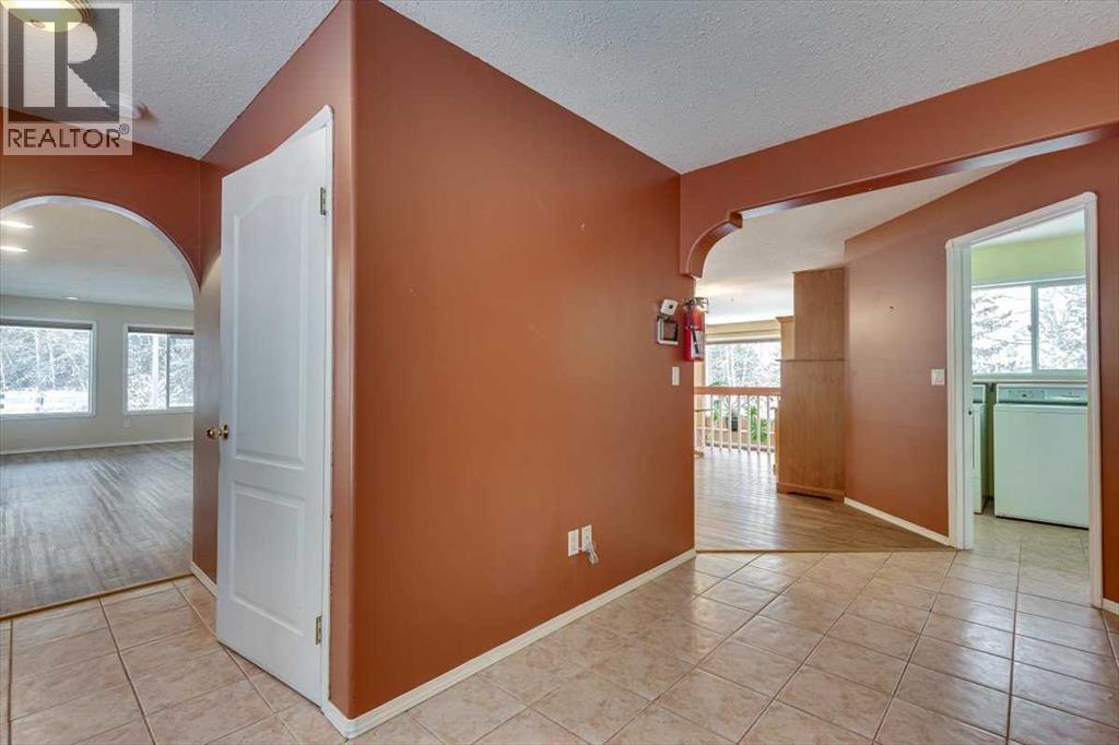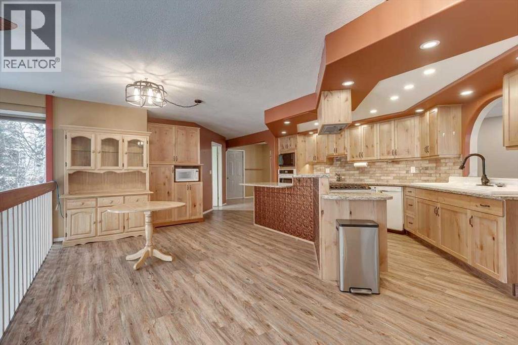 Stunning Acreage Living – Beautifully Updated 2 Storey Walk-out with over 3500 sq ft of living space! 5 bedroom (+2 Den) & 3.5 bath home with double attached heated garage on 5.85 Private Acres with Shop. Discover the perfect blend of privacy, space, and modern comfort on this beautifully treed property. Roughly 2-acres are fenced for a yard site, the remainder of the property is complete with walking trails, elevation changes, and a serene natural settingDesigned for both family living and entertaining, this property offers exceptional outdoor spaces including an 18’ x 38’ gated deck, wrap-around deck, a covered hot tub area overlooking open field, and a charming goldfish pond with waterfall. A mature mix of spruce and poplar trees, apple trees, and a seasonal creek create a picturesque backdrop in every season.A 22’ x 23’ heated double attached garage, automatic driveway gates, and a transfer switch for whole home generator backup offer convenience and peace of mind. Additional storage includes a sea-can, tarp shed, and garden shed.Step inside the front entry to a bright, airy home filled with natural light thanks to plenty of windows and a breathtaking two-storey atrium with remote-controlled blinds. The beautifully renovated kitchen features new LVP flooring, quartz counters, new cabinetry faces, a wall oven & microwave, dishwasher, a café fridge and an impressive cafe 6-burner gas stove. A breakfast bar and dining area overlook the atrium, and a convenient pass-through to the living room enhances flow. Enjoy cozy evenings by the living room woodstove. Main floor laundry and a refreshed powder room complete this level. The upstairs opens to a spacious landing with built-in storage and a functional flex/desk area, all accented by hardwood floors. The renovated 3-pc bathroom (2024) serves two oversized bedrooms, one featuring its own private balcony. The primary suite offers a walk-in closet, luxurious 5-pc ensuite, and a large private deck with peaceful vie ws.The lower level provides walkout access through patio doors onto a massive deck with a gazebo, overlooking the wooded ravine—an incredibly private retreat. This level offers 4 additional bedrooms - one with a 4-pc ensuite (2 room windows do not meet egress due to deck coverage) and a generous common area, ideal for a family room, playroom, or entertainment space.Additional Features include In-floor heat throughout, including garage. Dog-safe liquid in boiler system. Hot water tank & pressure tank (2020). Wrap-around decking with scenic views.Finishing off this property is a fantastic 26’ x 30’ heated shop with concrete floor, workbenches, 100-amp service, abundant power outlets, and a woodstove. The upper-level room in the shop offers excellent potential for an office, hobby space, home based business, or even more storage.A rare opportunity to own an exceptional acreage with a unique home that offers space, privacy, and endless potential. (id:49203)