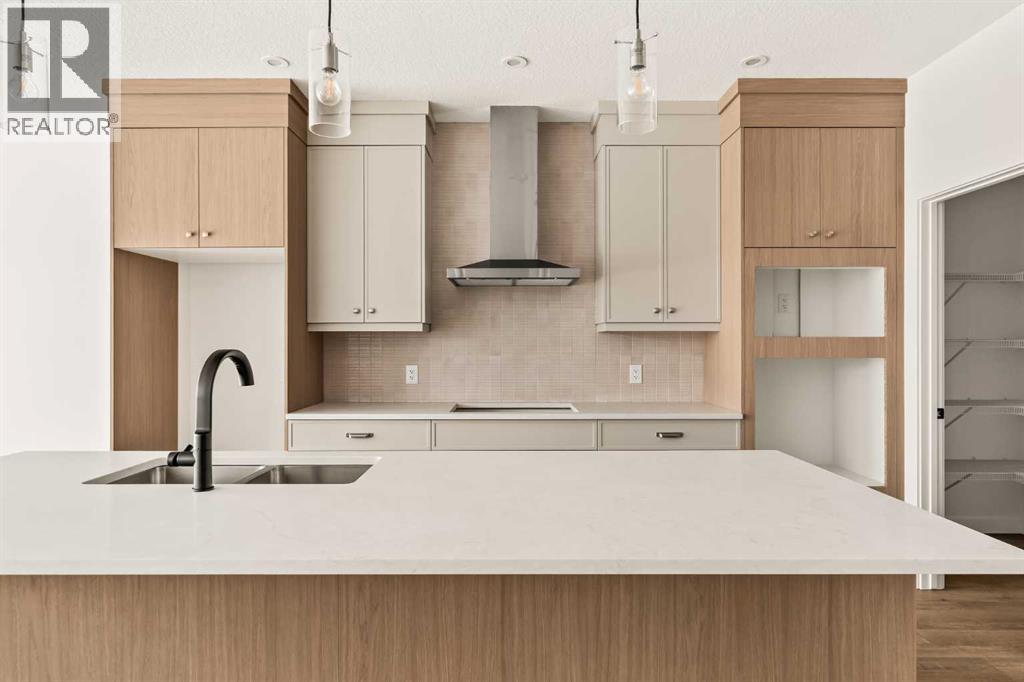 Nestled in the beautiful community of Pine Creek, this brand new four-level split, The Hudson, built by Brookfield Residential, features nearly 2,200 ft2 of developed living space + an undeveloped basement that awaits your imagination and design touches. Featuring 2 living spaces, a home office/flex space, 3 bedrooms, 2.5 bathrooms and plenty of living space, this beautiful family home provides the nostalgia of a four-level-split with the openness you desire in a modern home. Situated on a sunny lot with an ideal south-facing backyard, this home is beautiful both inside and out, giving you plenty of natural light all year long and optimal sunshine in the backyard throughout the summer. The bright and open main level features a gourmet kitchen complete with built-in chimney hood fan, built-in wall oven & microwave, and a gas cooktop. The kitchen is complete with a large walk-in pantry, providing ample storage. The central kitchen overlooks the living and dining areas - making it the perfect entertainment space. The main level is complete with a large flex room with doors, ideal for a home office space, and lastly a large mud room and 2 pc powder room round out the main level. Up a half set of stairs is the expansive bonus room with vaulted ceilings and access to the private balcony off the front of the home. With the main living area just a few steps down, the open concept allows for separation without compromising the open feel and making it feel closed off. Up another half set of stairs, you'll find the primary bedroom complete with a walk-in closet and 5pc ensuite bathroom including a soaker tub, walk-in shower, private water closet and dual sinks. The upper level is complete with two additional bedrooms, a convenient 5 pc main bathroom with dual sinks and a full laundry room. Situated on an incredible lot and featuring beautiful design throughout, this brand new home includes full builder warranty as well as 10 year Alberta New Home Warranty with countless amenit ies nearby! (id:49203)