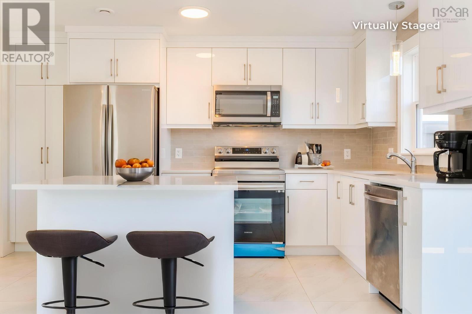 Welcome to 34 Grosse Street - a unique and distinctly modern and three-years-young executive townhome in the conveniently located and feverishly popular Lovett Lake Subdivision next to Bayer's Lake in Halifax. This exquisite 4-bedroom, 3.5 bathroom three-level floor plan offers a stylish and attractive main level with a street-facing living room with an electric fireplace and a backyard-facing kitchen/dining combo. With the sun entering the home from both front and back, entertain family and friends in your on-trend white kitchen with an abundance of cabinets, quartz counters, and stainless steel appliances, an enormous pantry, and a sit-up island. Lounge on your rear deck, right off the dining space, and perfect during BBQ season. Upstairs is home to a large primary bedroom with a walk-in closet, a stunning ensuite with a custom shower with a glass enclosure, and two more bedrooms for growing families. The downstairs, with its interior door separation, will not feel so "down" as the lower level is grade-entry and has a walkout basement to the backyard. A 4th bedroom/rec room, and a full bathroom complete a compelling lower level - ideal for those with family members looking for privacy and independence from the rest of the home. First-time and investment buyers alike will appreciate the many attributes of this exciting home: efficient electric heating with a ductless heat pump, high-end laminate floors on three levels, NO laminate counters, gorgeous modern fixtures and finishes, just minutes to downtown Halifax, close to walking trails, restaurants, shopping, ideal bus routes, you name it! We hope you fall in love, and you will! (id:49203)