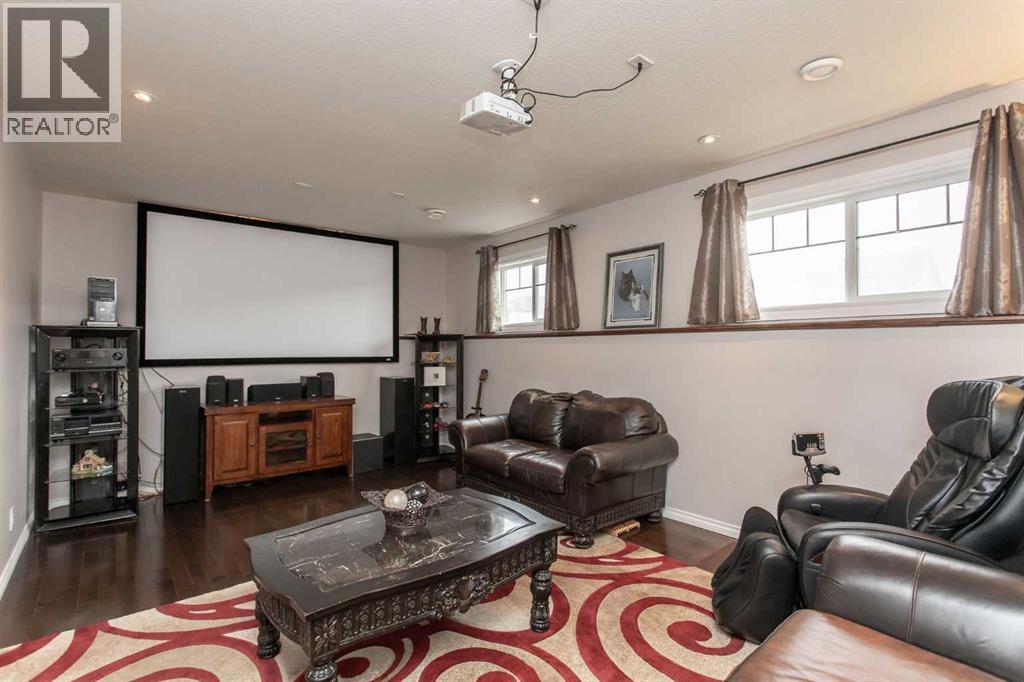 This well-kept bi-level in Timberlands checks a lot of boxes for first-time buyers and young families. Built in 2011 and sitting at 1,212 sq ft above grade, it's the kind of home that feels solid without trying too hard — a functional layout, and a location that genuinely delivers on the neighbourhood front. You're walking distance to an elementary school, the public library, parks and playgrounds, and everyday shopping including grocery and restaurants.The main floor opens with a spacious tiled entryway before stepping up into a bright living room with hardwood floors and a large window that pulls in plenty of natural light. The kitchen has dark maple cabinetry, a island, and counters with a stylish epoxy finish that gives it a bit of a custom feel. The dining area is a good size with a view to the backyard. The primary bedroom has hardwood floors, a larger closet, and connects directly to a 3-piece ensuite with a stand-up shower. The second bedroom is carpeted, while the third features hardwood and a built-in cabinet with a murphy bed — a setup that works equally well as a guest room or a dedicated home office.Downstairs is where things get interesting. The basement is finished to a high standard with hardwood throughout, tall ceilings, and pot lights. The living area is set up as a media room, complete with a projector setup. The bedroom is oversized with a very generous walk-in closet and its own 3-piece bathroom featuring a deep soaker tub — a setup that functions almost like a second primary suite. The laundry room is a good size with cabinets and counter space.Outside, the stamped concrete walkways wrap around both sides of the home leading to a wood deck and patio in the backyard, all enclosed with a wood fence. There's a large gravel parking pad in the back. The high-efficiency furnace and hot water tank were both replaced in 2021, so the mechanical side of things is in great shape. (id:49203)