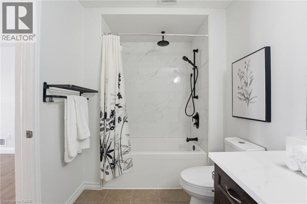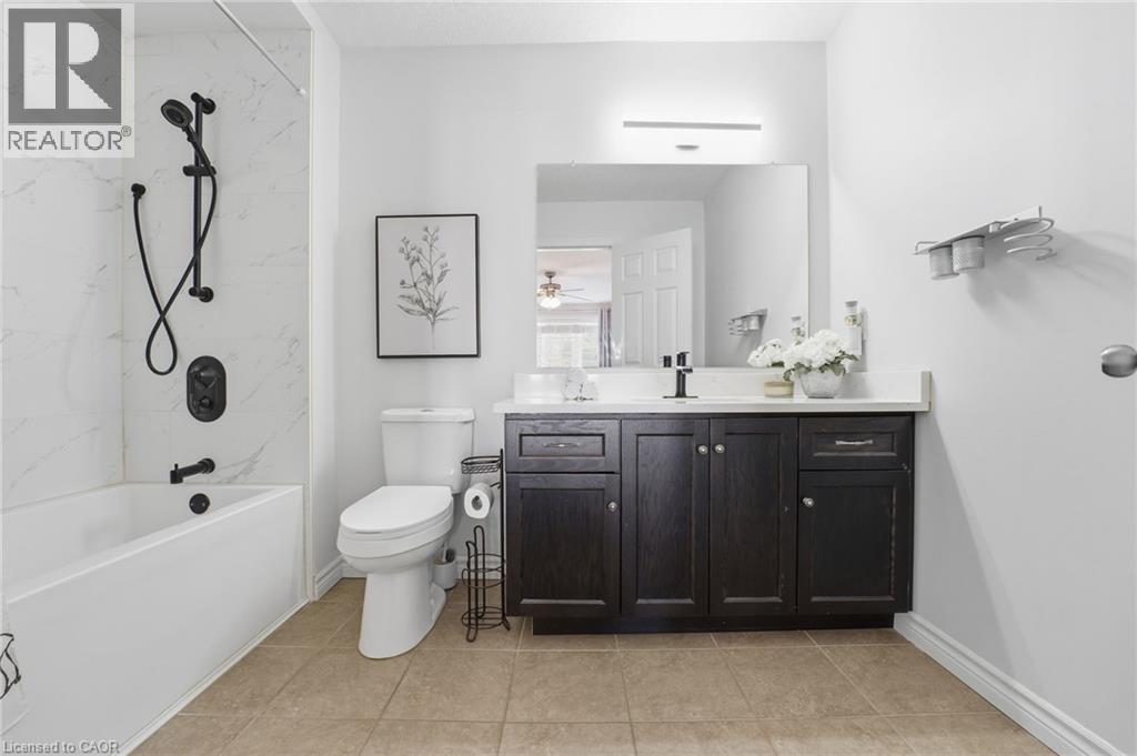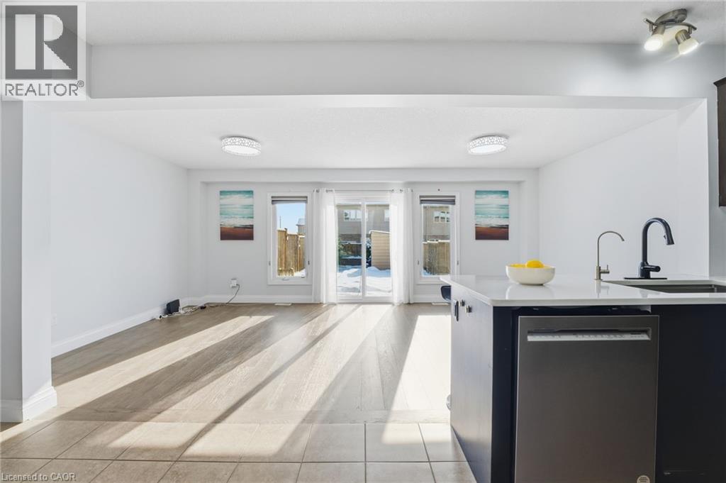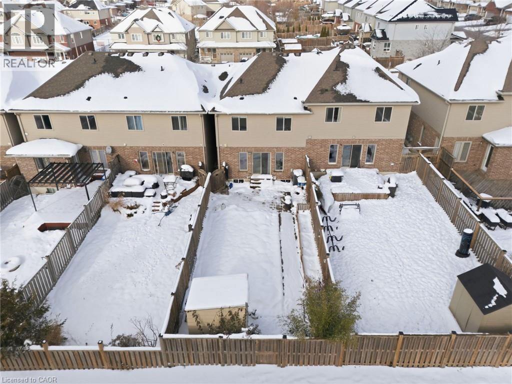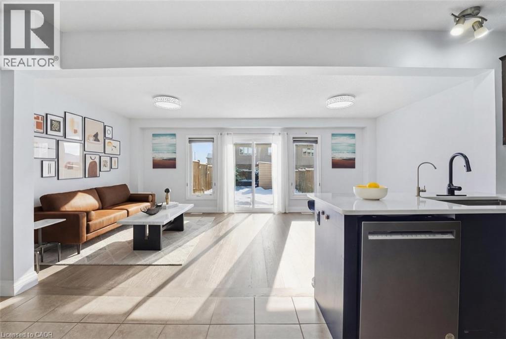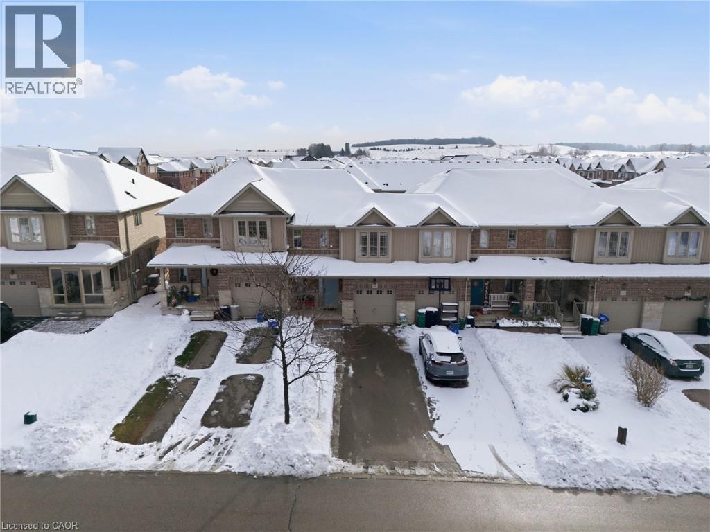 Welcome to 347 Vincent Drive in Ayr! This FREEHOLD townhome offers you the chance to own in an established and family friendly neighbourhood in Ayr, close to parks and Cedar Creek Public School. Newly installed pavers lead you to the front porch, offering a cozy sitting area. Through the front door, the hall and coat closet have plenty space for your outdoor gear and bring you through to your main living area with tons of natural light. The kitchen, boasting dark cabinetry, upgraded quartz counters, backsplash, and an undermount sink with R/O system overlook your dining area and large living room with ample space for different décor and furniture configurations. A cute powder room, and access to the garage complete the main floor. Upgraded stairs lead you to the carpet-free second floor with newer flooring. The oversized primary bedroom showcases an upgraded ensuite, and a MASSIVE walk-in closet with a window for extra light. Two additional bedrooms are complete with good-sized closets, and benefit from the additional 4pc bathroom on this level. You are sure to appreciate the upgraded light fixtures that can be found all throughout the main and second floor. The unspoiled basement area offers the perfect space for you to put your finishing touches and design a rec-room, office, or even another bedroom. The south-facing backyard, accessible from the garage or through the sliding door in the living room, receives lots of sun and has been recently outfitted with gardens on one side and a walkway from the stone patio to the shed at the rear! Don't miss out on your chance to make this townhome, your home. Book your private viewing today! (id:49203)