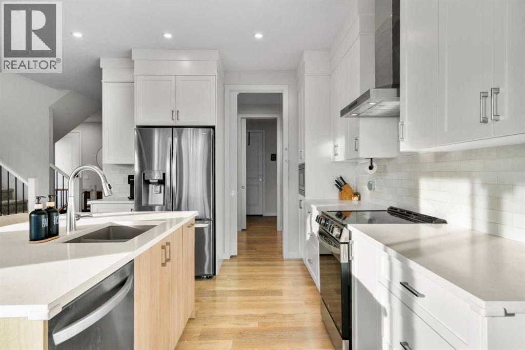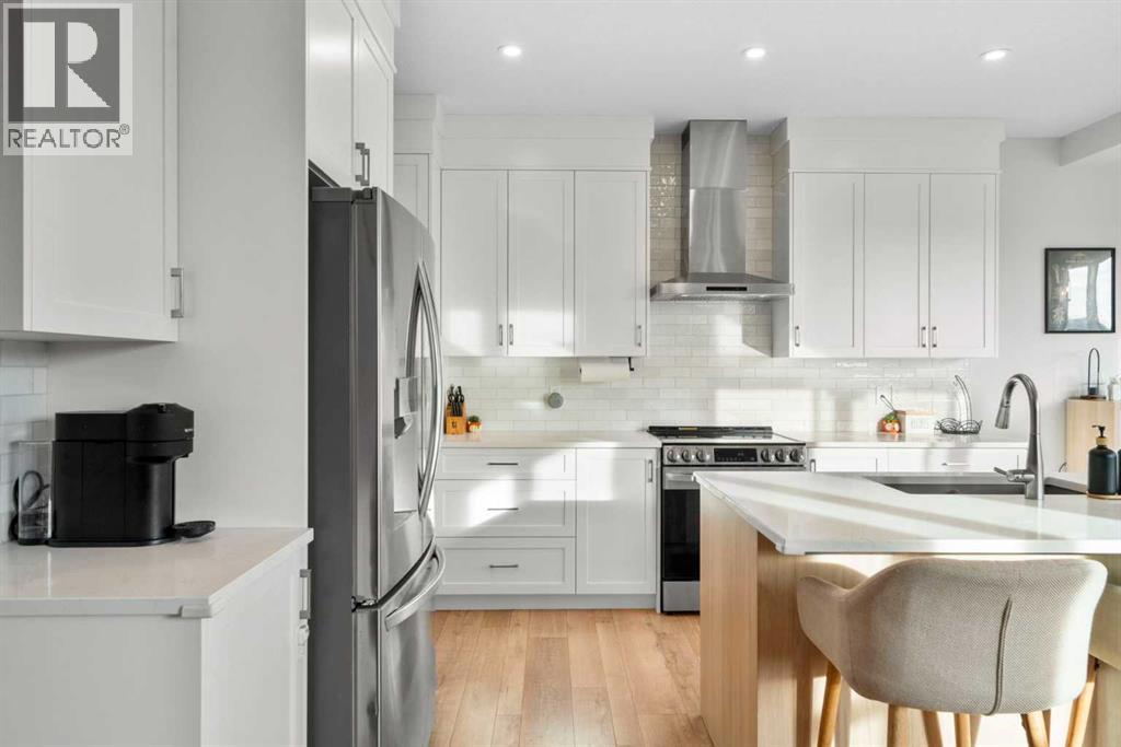*OPEN HOUSE SUNDAY MARCH 8 AT 12:00PM - 2:00pm* Welcome to 35 Cranbrook Mount SE, a home that surprises you in all the right ways. Tucked into a quiet CUL DE SAC on a pie shaped lot, this unique 3 STOREY home offers space, light, and flexibility that truly sets it apart. Just steps from the Bow River and Fish Creek Park, the setting feels peaceful and connected to nature. Step inside and you immediately notice the elevated features like 9 FOOT CEILINGS, 8 FOOT DOORS, and oversized windows that draw natural light deep into the space. The kitchen is both striking and functional, finished with full height cabinetry, quartz countertops, pot drawers, a beautiful tile backsplash, and sleek pot lighting. At the heart of it all, the island invites gathering, whether it is weekday breakfasts or drinks on the weekend with friends. Tucked just behind, the BUTLER’S PANTRY with open shelving and a sink keeps prep and storage beautifully organized. The dining nook is bright and welcoming, flowing seamlessly into the great room where a striking ELECTRIC FIREPLACE adds warmth and ambiance. A well placed powder room and mudroom complete the main level with everyday practicality. Upstairs, the second floor is designed for real family living. A spacious BONUS ROOM creates the perfect hangout for movie nights or homework sessions. Two generous bedrooms share a full bath with quartz counters, while the primary suite feels like a true retreat. The ensuite features DOUBLE SINKS, a WALK IN SHOWER, a deep soaker tub, and a large WALK IN CLOSET that makes staying organized effortless. Laundry is conveniently located on this level with plenty of storage, a detail you will appreciate from day one. Then there is the third storey. This is where the home becomes unforgettable. A massive bonus space with a wet bar opens onto a covered southwest facing balcony, creating the ultimate lounge for long summer evenings and sunset views. With its own powder room, this level offers flexibility for enterta ining, a home office, a games room, or a private escape away from the rest of the house. The unfinished basement is ready for your ideas, whether that means a home gym, additional bedroom, or recreation space. The double attached garage adds comfort and convenience year round. Outside, the pie shaped lot gives you a backyard that feels expansive and private. The large deck is made for morning coffee and summer BBQs, with room for kids to play and friends to gather. Living in Cranston means access to the Cranston Residents Association with its splash park, skating rink, tennis courts, and community events, plus endless pathways along the river and through Fish Creek Park. It is a lifestyle rooted in connection, nature, and community. Homes like this do not come along often. Three finished levels, a CUL DE SAC location, and that incredible third floor retreat make this one truly special. Come see it in person and imagine the memories waiting to be made. (id:49203)