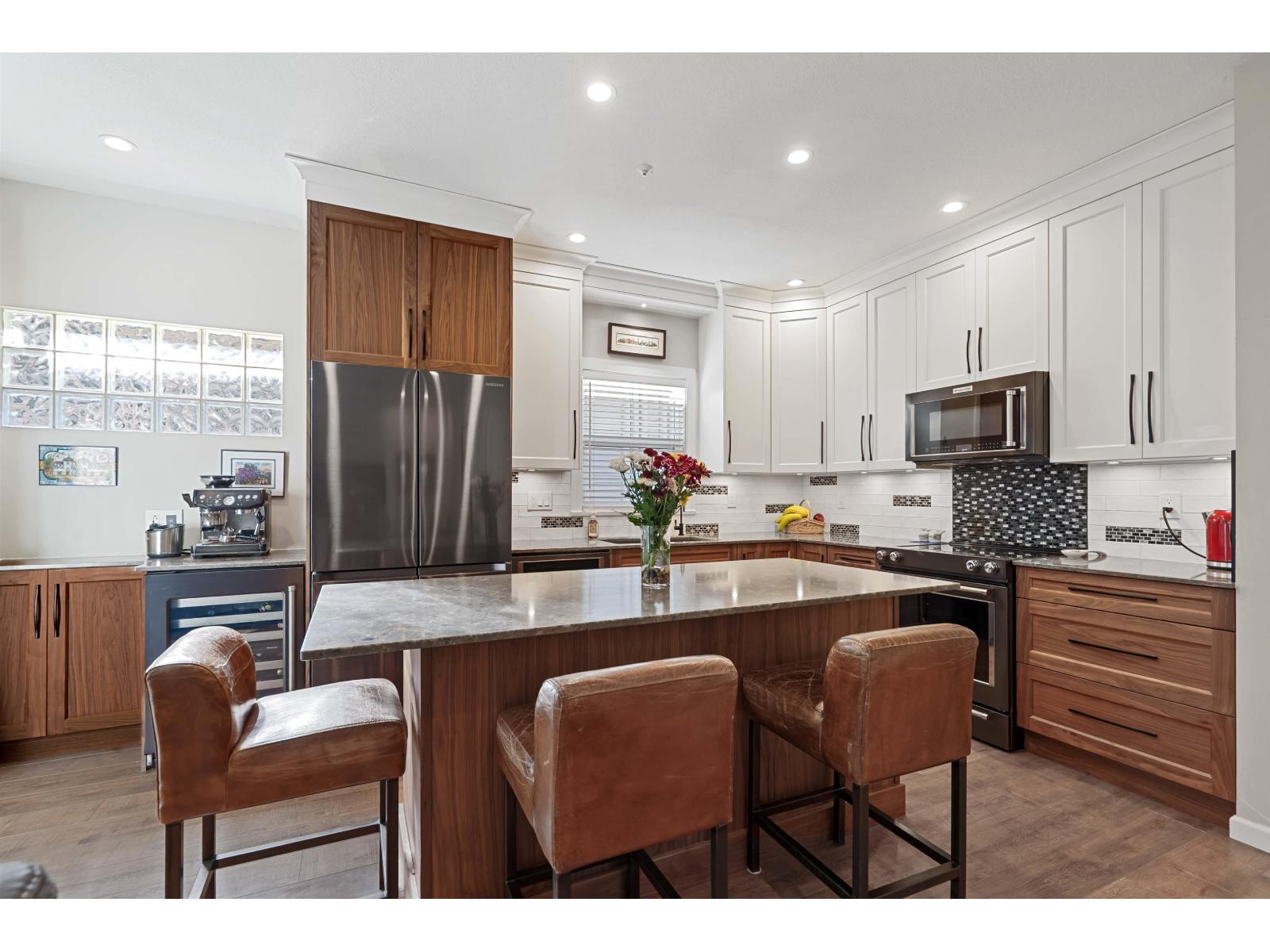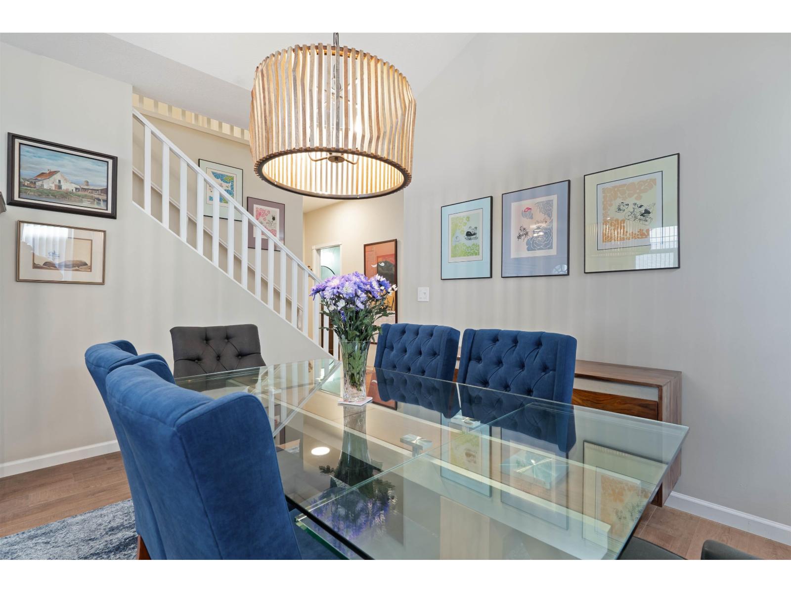$741.45 MonthlyWelcome to Coventry Woods, one of the area's most sought-after gated communities. This beautifully fully renovated 2 story townhome offers an exceptional layout w/ the primary bedroom on the main floor, complete w/ a stunning spa-inspired ensuite. Upstairs features 2 generous bedrooms, ideal for family or guests. The main living area impresses w/ vaulted ceiling, stylish wood floors, updated lighting throughout. Enjoy your completely redesigned chef's kitchen offering elegance for everyday living & entertaining w/ an Island, coffee bar & built-in wine fridge. All bathrooms have been stylishly renovated w/ contemporary touches. Enjoy the serenity of private greenbelt surroundings, a double garage, & resort-style amenities including outdoor pool, hot tub. Very well run strata. (id:49203)