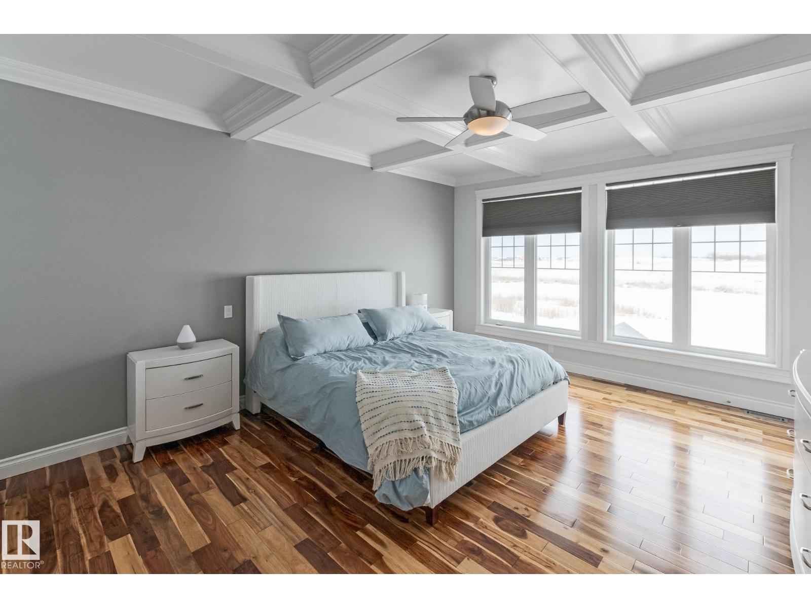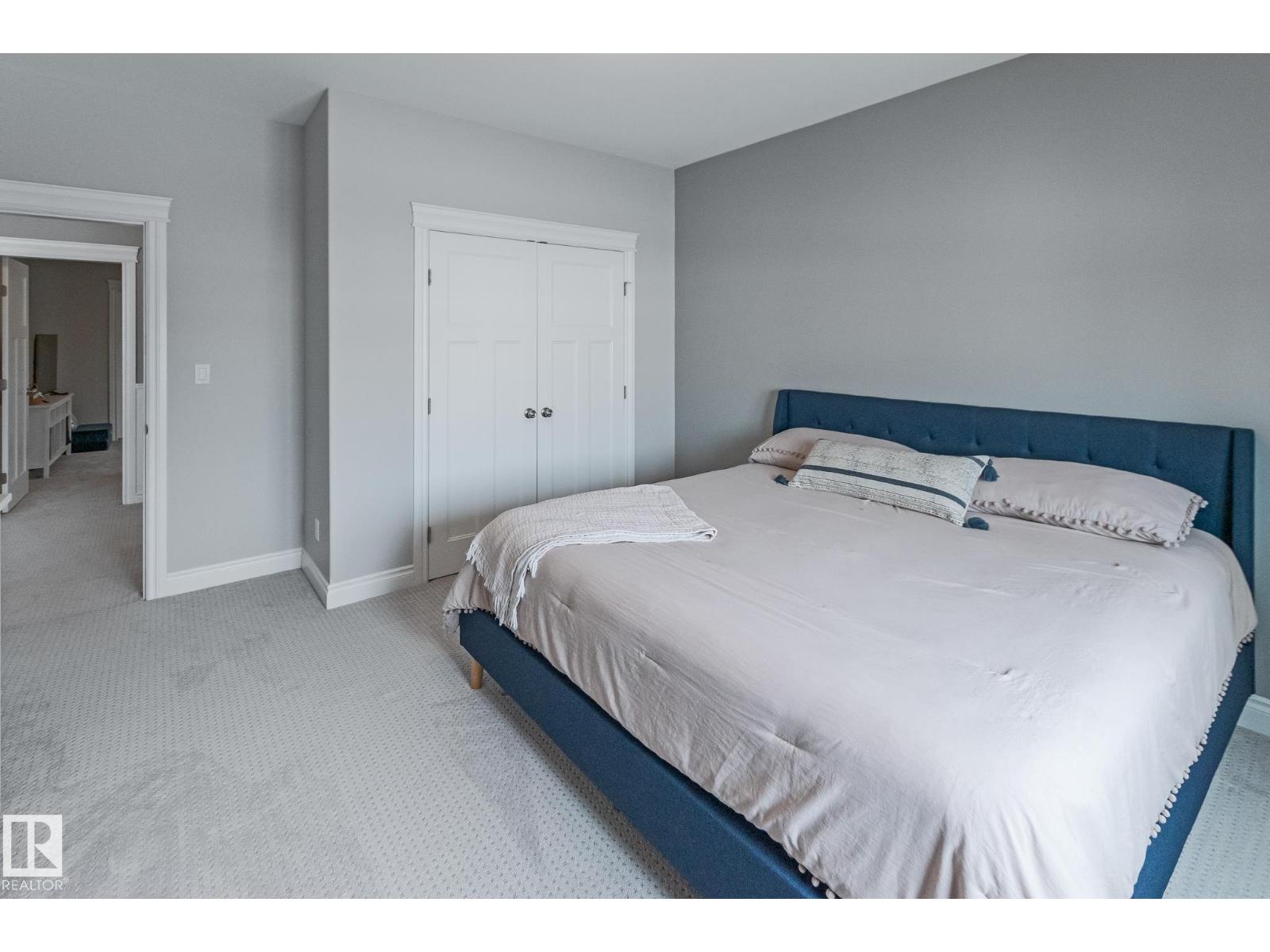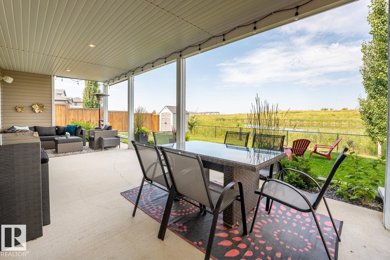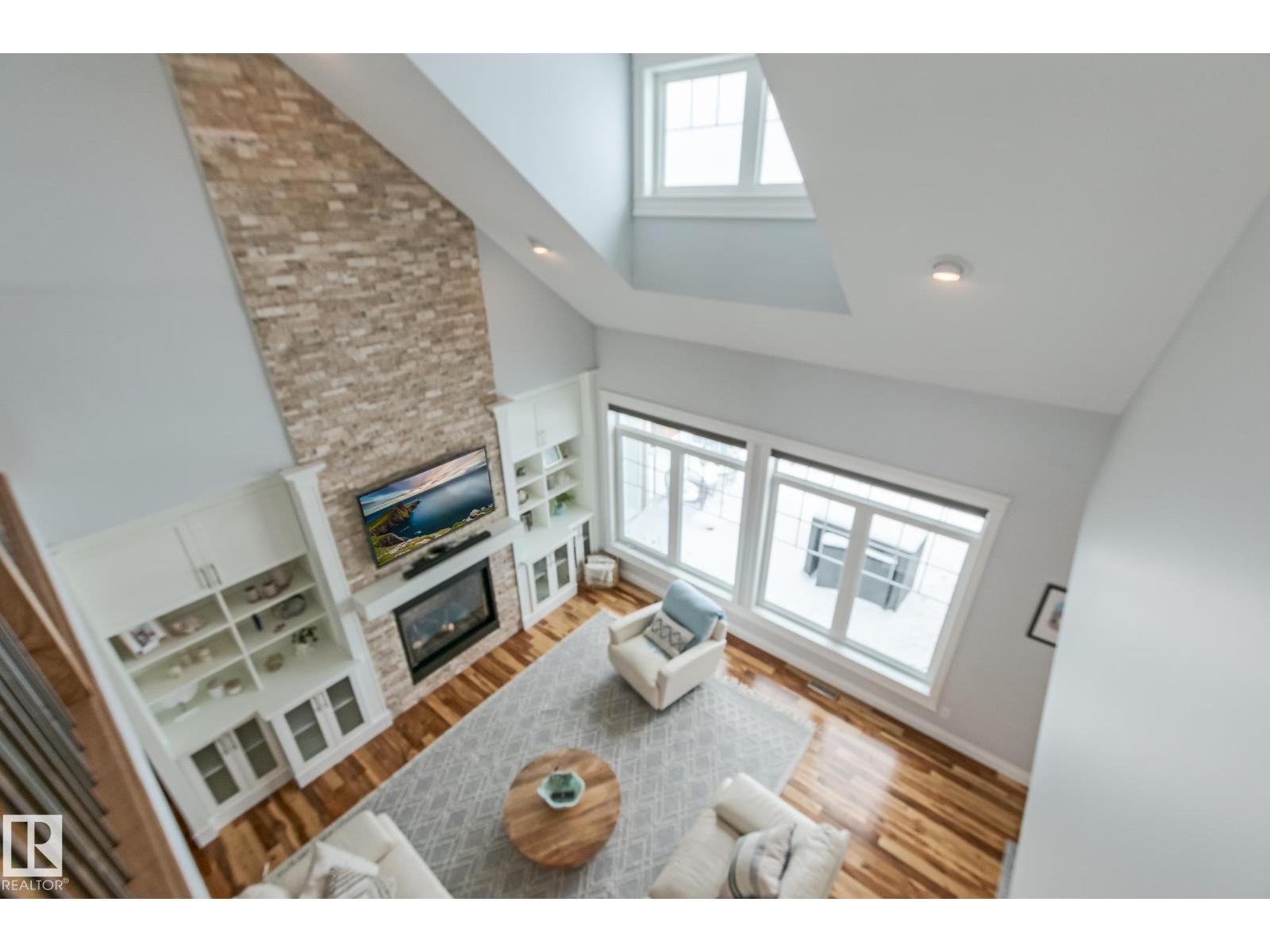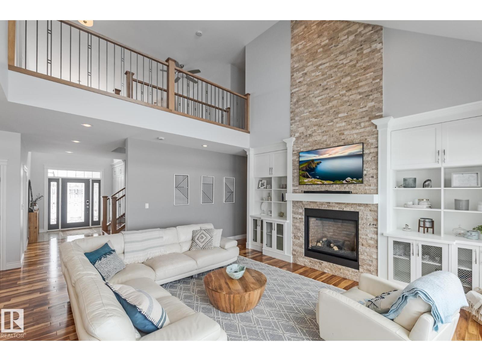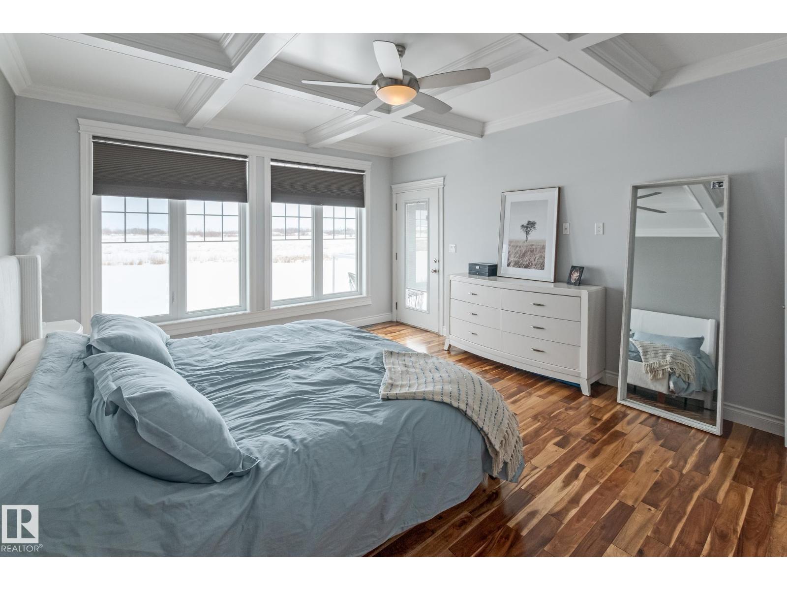 Custom crafted 2750 sqft. 1-1/2 Story with double attached heated garage located in Beau Vista. Welcoming covered veranda opens up to a spacious foyer, Kitchen has custom white cabinetry, w/under cabinet lighting, gas stove, Stainless steel appliances, pantry, quartz tops. Island w/sink & seating. Living room ceiling is open to the second floor with dormer and has built in cabinetry on either side of a gas fireplace. Big bright triple pane windows & luxurious hardwood floors throughout. 7 bdrms & 4 bath, Master suite w/ coffered ceilings walk-in closet, huge ensuite w/ tiled shower, heated floor, huge soaker tub & 2 sinks. Main floor laundry, Upper floor with open office/reading area, Fully developed walk out basement incl. large Rec room w/ wet bar, BI speakers in/out door, underslab heating & A/C, Central Vac and R/O, H/W on demand. Enjoy the views from the covered deck or lower walk out patio w/ RI for Hot tub, overlooking the ponds and beautifully landscaped fenced yard w/ firepit. Home of a LIFETIME! (id:49203)