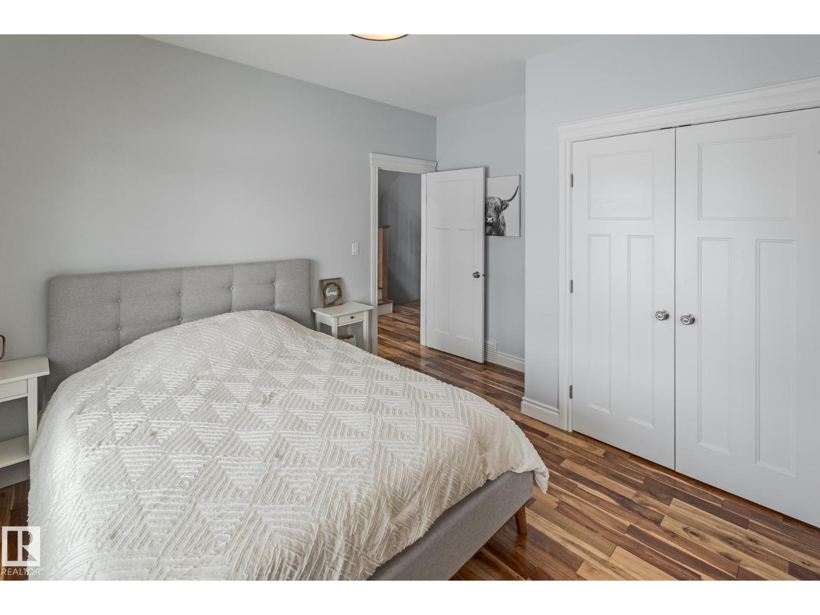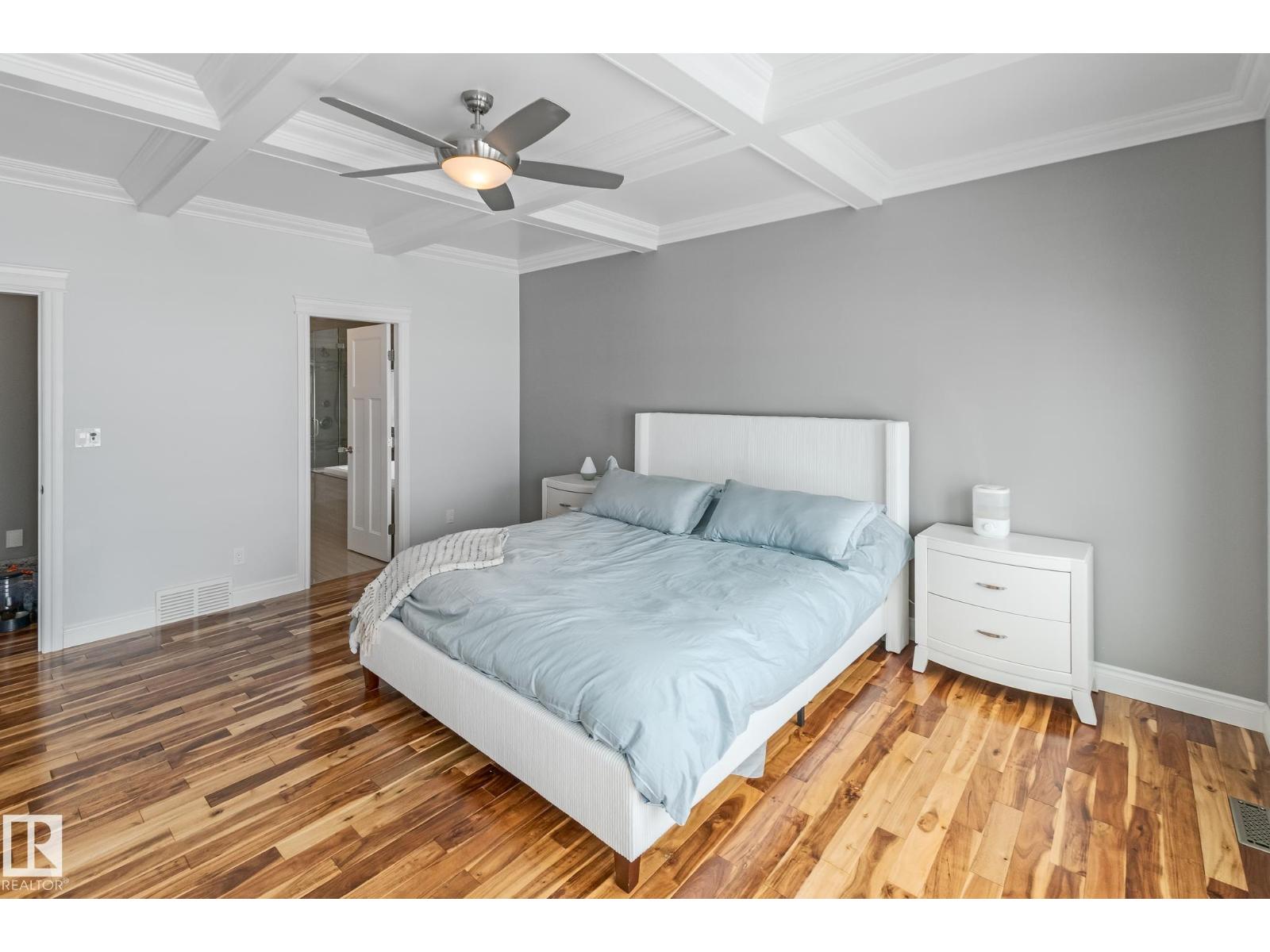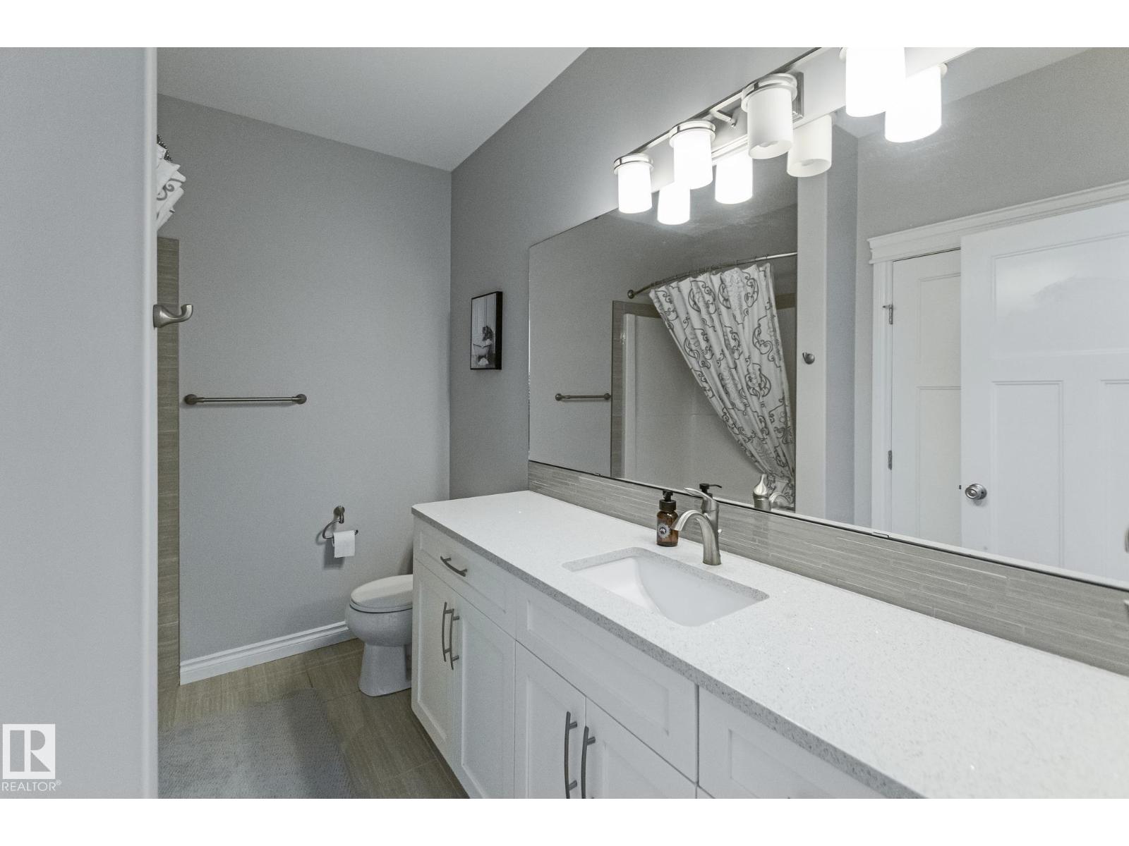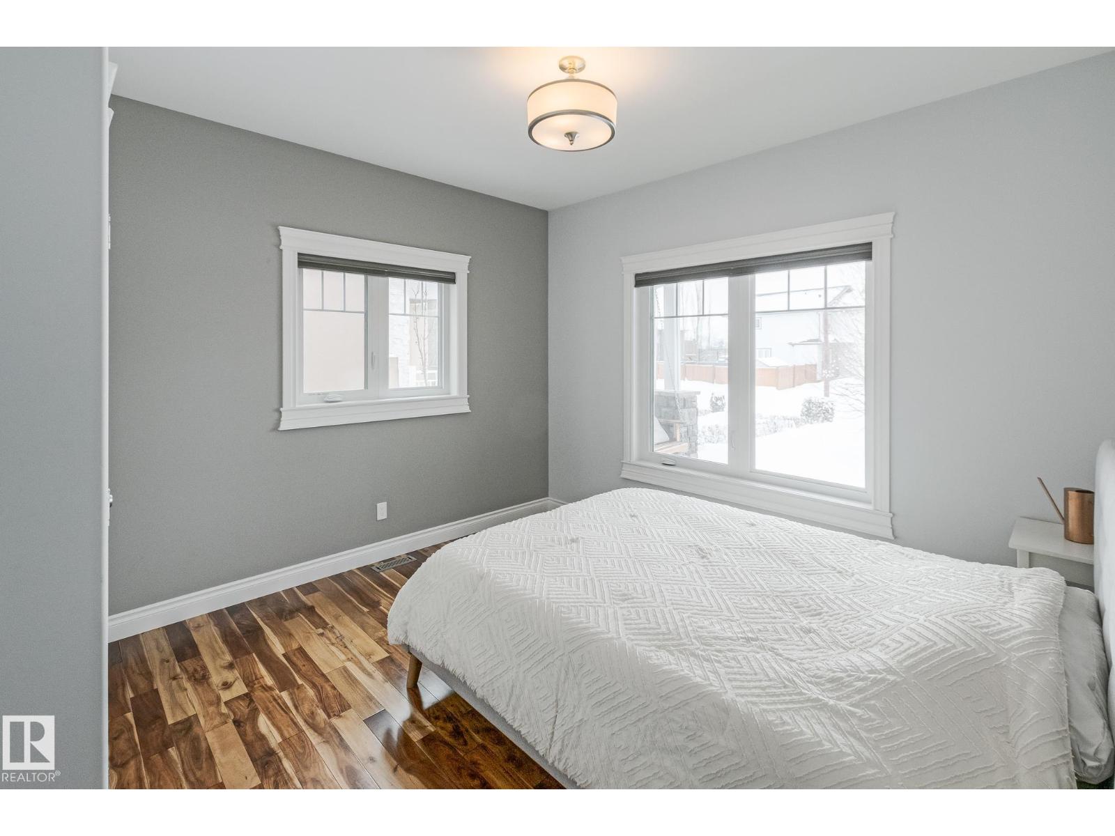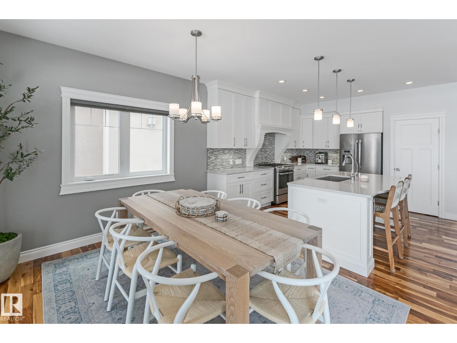 Custom crafted 2750 sqft. 1-1/2 Story with double attached heated garage located in Beau Vista. Welcoming covered veranda opens up to a spacious foyer, Kitchen has custom white cabinetry, w/under cabinet lighting, gas stove, Stainless steel appliances, pantry, quartz tops. Island w/sink & seating. Living room ceiling is open to the second floor with dormer and has built in cabinetry on either side of a gas fireplace. Big bright triple pane windows & luxurious hardwood floors throughout. 7 bdrms & 4 bath, Master suite w/ coffered ceilings walk-in closet, huge ensuite w/ tiled shower, heated floor, huge soaker tub & 2 sinks. Main floor laundry, Upper floor with open office/reading area, Fully developed walk out basement incl. large Rec room w/ wet bar, BI speakers in/out door, underslab heating & A/C, Central Vac and R/O, H/W on demand. Enjoy the views from the covered deck or lower walk out patio w/ RI for Hot tub, overlooking the ponds and beautifully landscaped fenced yard w/ firepit. Home of a LIFETIME! (id:49203)
