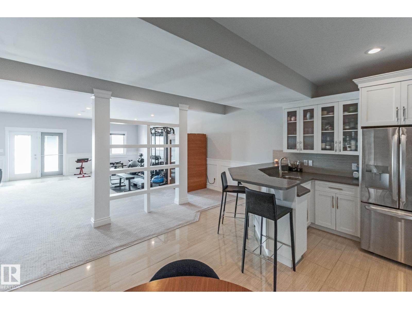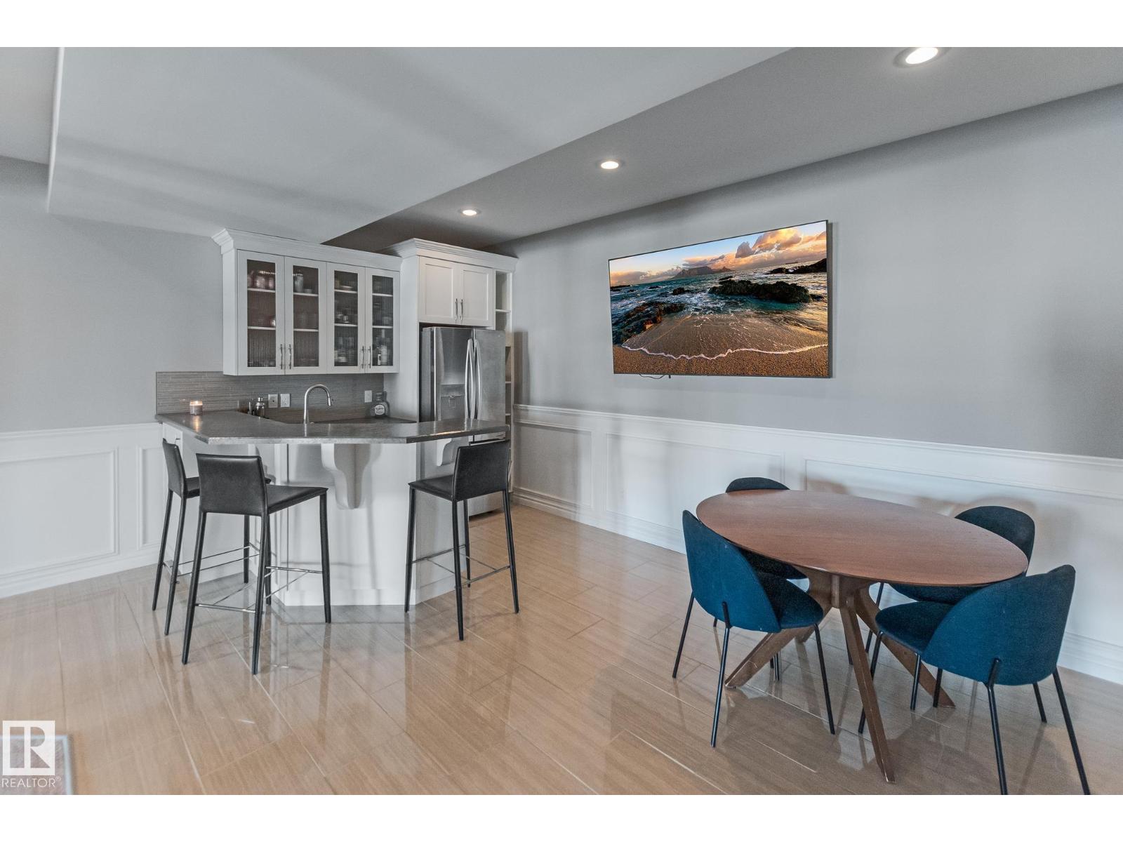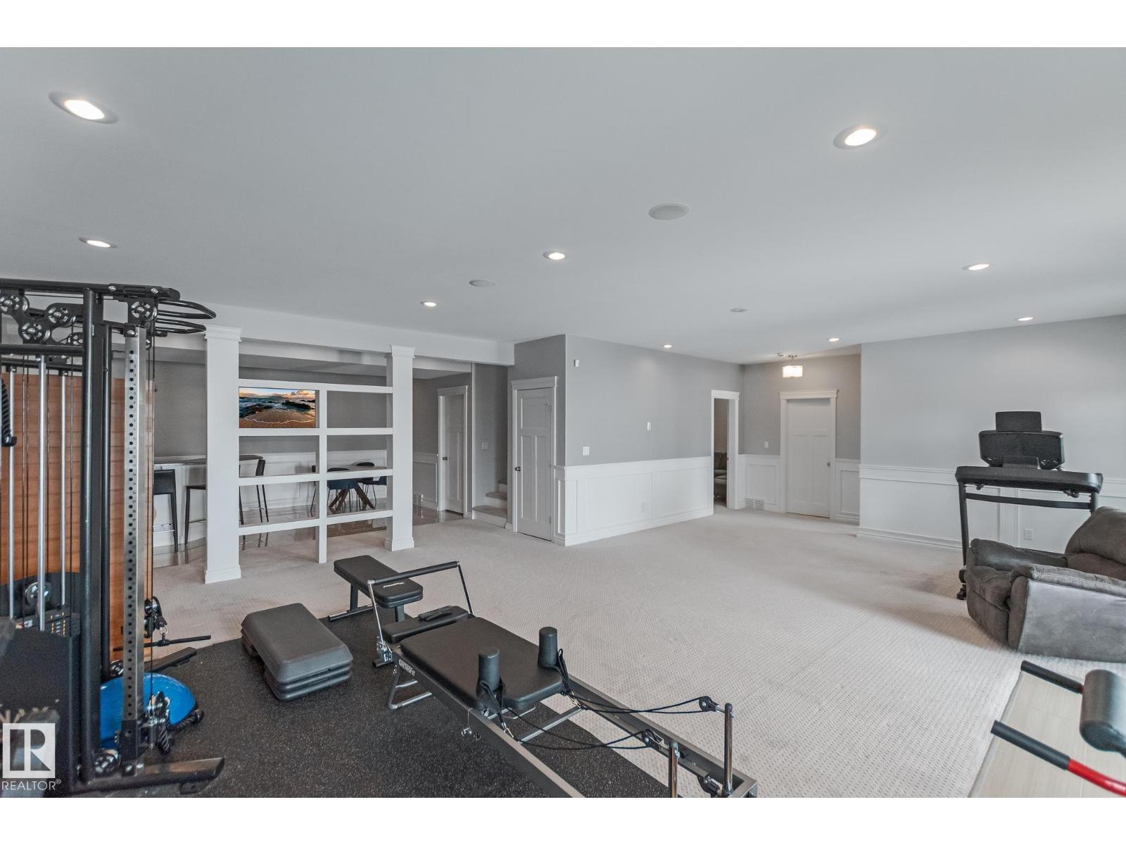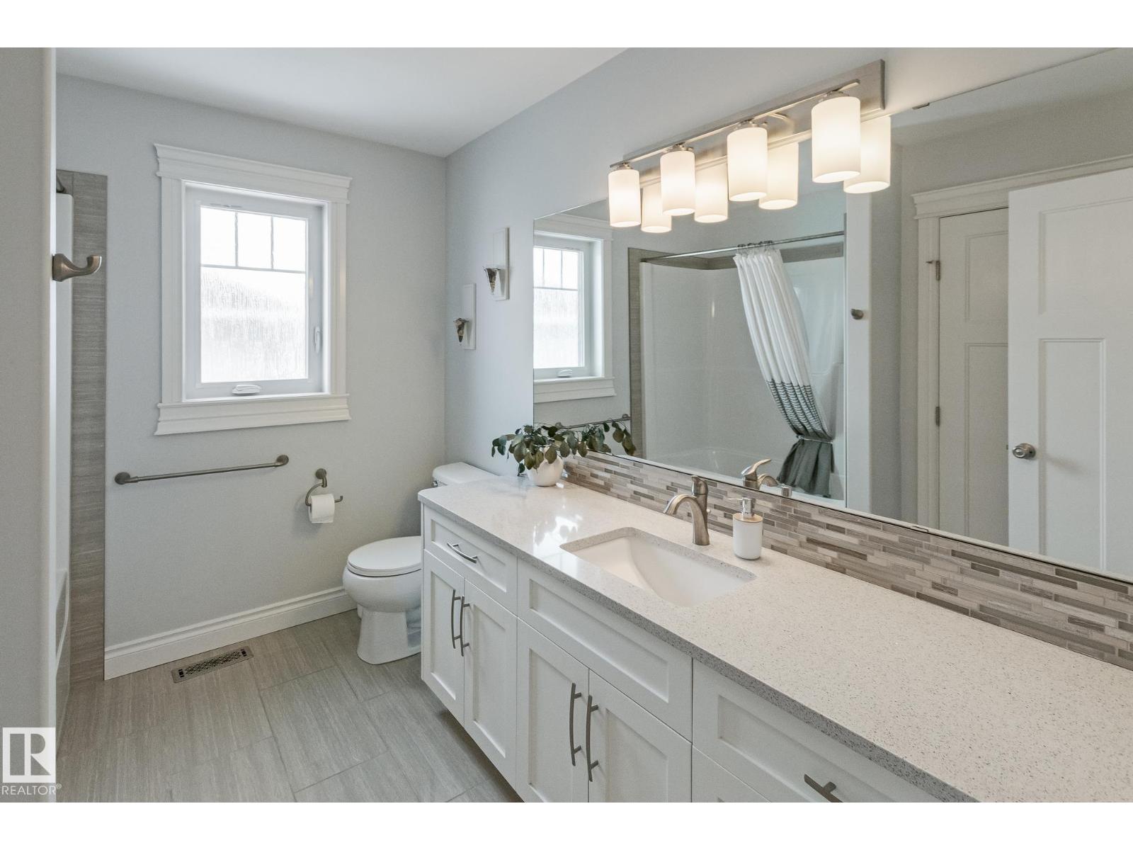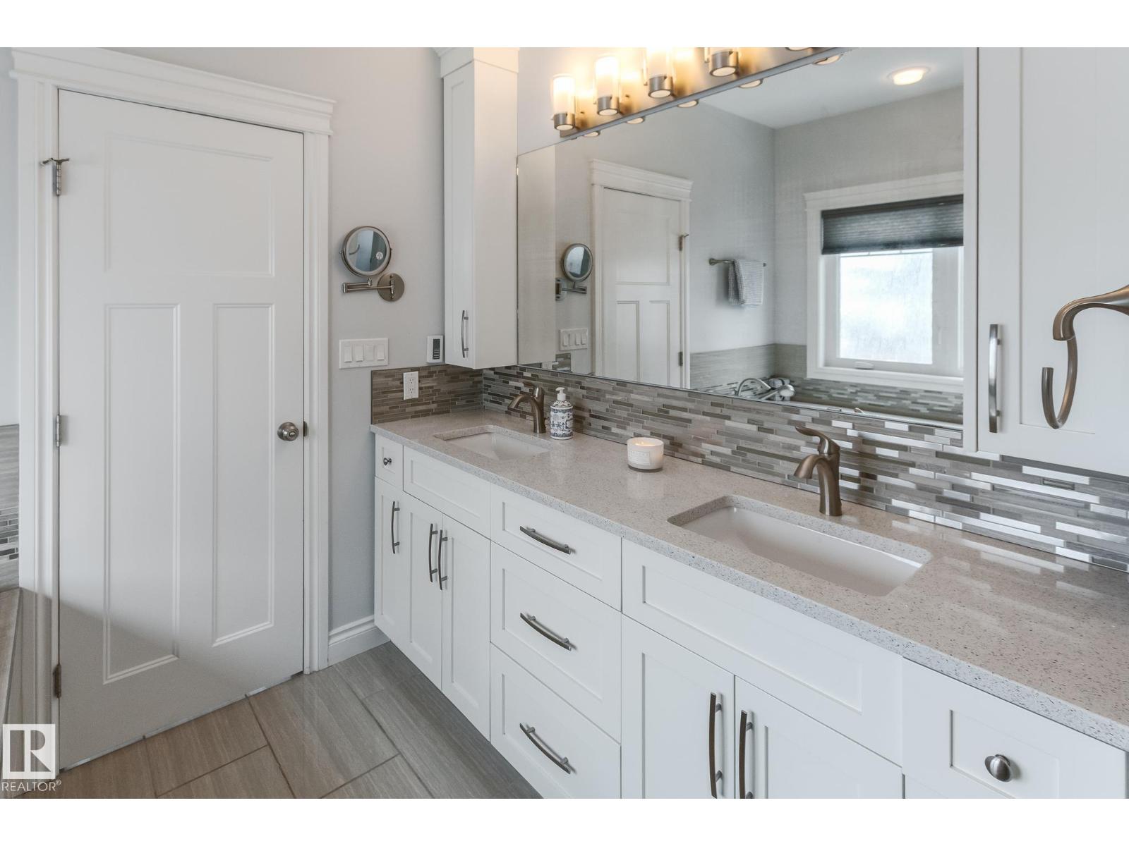 Custom crafted 2750 sqft. 1-1/2 Story with double attached heated garage located in Beau Vista. Welcoming covered veranda opens up to a spacious foyer, Kitchen has custom white cabinetry, w/under cabinet lighting, gas stove, Stainless steel appliances, pantry, quartz tops. Island w/sink & seating. Living room ceiling is open to the second floor with dormer and has built in cabinetry on either side of a gas fireplace. Big bright triple pane windows & luxurious hardwood floors throughout. 7 bdrms & 4 bath, Master suite w/ coffered ceilings walk-in closet, huge ensuite w/ tiled shower, heated floor, huge soaker tub & 2 sinks. Main floor laundry, Upper floor with open office/reading area, Fully developed walk out basement incl. large Rec room w/ wet bar, BI speakers in/out door, underslab heating & A/C, Central Vac and R/O, H/W on demand. Enjoy the views from the covered deck or lower walk out patio w/ RI for Hot tub, overlooking the ponds and beautifully landscaped fenced yard w/ firepit. Home of a LIFETIME! (id:49203)