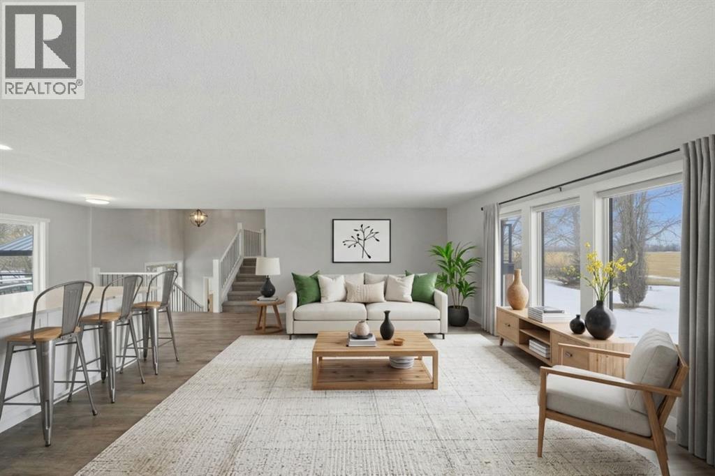 Experience the perfect blend of country living and modern comfort on this stunning 14-acre property—fully renovated, move-in ready, and ideal for families, hobby farming, or an equestrian lifestyle.Enjoy this 2,500 sq ft modified bi-level with treed perimeter, private ½ km driveway, a 5-acre fenced pasture with water and livestock shelter—perfect for horses or hobby farming. The north side features a chicken coop, multiple outbuildings, a 20 x 26 secondary building equipped with power gas and water. Ample space remains for equipment or RV storage. The 36' x 60' Heated shop has 13' ceilings allowing for a a Mezzanine area, 220 power and cement floor with a 12' x 20' door for easy access for machinery. Underground power has been run to most outbuildings.The south side showcases a landscaped yard with large garden, secluded fire pit area, with RV hook ups including water, power and sewer and stunning West-facing views. The 5-bedroom, 3-bath home includes an attached heated 24x25 garage with 8 ft doors and 3-season sunroom./gym. Entering the home enjoy a vaulted entrance, functional mudroom, office/craft/rec. room with in-floor heat, and 10x19 covered deck. The open-concept kitchen/living area features quartz countertops, a large island, all-new stainless-steel appliances, and a spacious butler’s pantry with counter space, pull-out shelves, fridge/freezer combo, WOW!Upstairs, the primary retreat offers vaulted ceilings, private west-facing deck, luxurious 4-piece ensuite, separate water closet , standalone tub, and walk-in closet with separate washer/dryer. The lower level includes a family room, two additional large bedrooms with egress windows, full bath, large laundry, ample storage, and a cold room for garden harvests.Enjoy a quiet, family-friendly country lifestyle on 14 private acres with room to play, garden, and explore—just minutes SE of Red Deer. (id:49203)