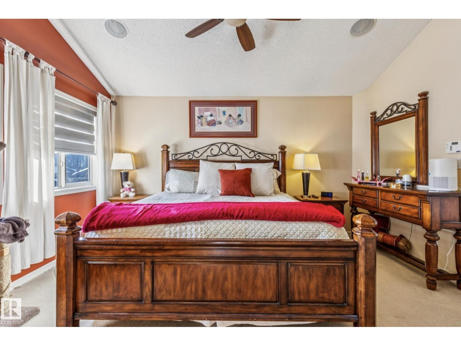 $330 MonthlyLovely adult complex, bi-level 2 bedroom, 2.5 bathroom, west backing onto green space with an oversized deck featuring an electric awning. Double attached garage with painted walls and epoxy flooring. Fully finished basement with 9’ ceilings and, electric fireplace, TV room and bedroom. The home offers granite countertops, stainless steel appliances, and an upgraded kitchen backsplash on the pantry wall. Vaulted ceilings highlight both the primary bedroom and main living area. Air conditioning. Recent upgrades include furnace and hot water tank replaced within the last five years. Custom window coverings throughout. Enjoy direct ravine access to walking trails, with quick connections to Whitemud Drive and Anthony Henday Drive, approximately 10 minutes away, and just 20 minutes to the airport. (id:49203)