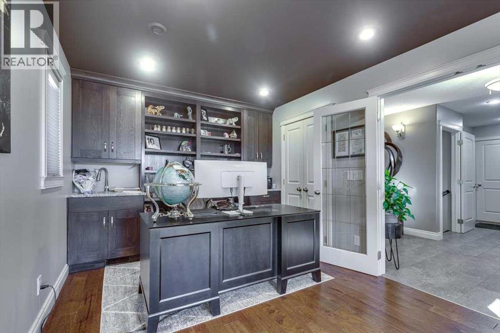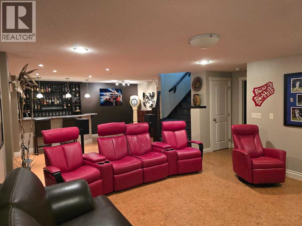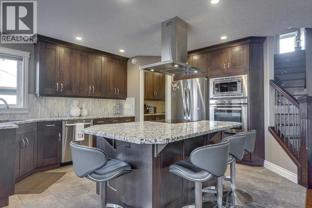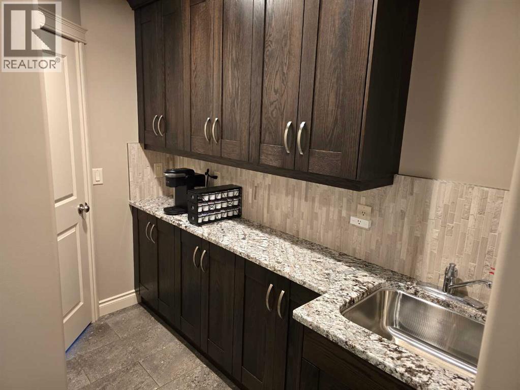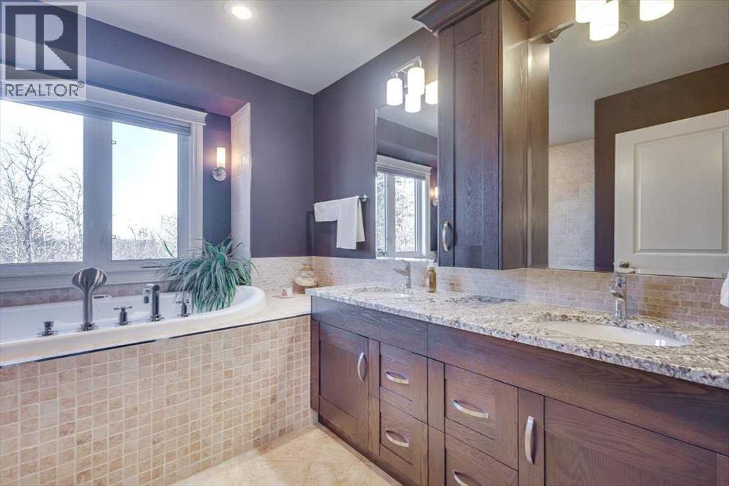 Beautifully finished 2 Storey home, tucked away in a peaceful community, with a Triple Attached Garage, and backing on to the picturesque walking trails of Elizabeth Park. Upon entry, you are greeted by a tiled foyer, nicely appointed Den/Office that comes with a sink, and gorgeous built in cabinetry. Further on in, you will be immediately drawn to the flood of natural light throughout the 2 Storey living room, vaulted ceiling, accented by the stone finishing on the fireplace from floor to ceiling. Plenty of high end finishes in the kitchen, including quartz countertops, soft-close drawers, full tile backsplashes, large kitchen island, and walk-through pantry with a prep sink. The dining room is surrounded by more windows, and provides access to the huge deck, partially covered, with Gas hookup for the BBQ. The back yard also includes a garden shed with siding and finishes that match the house, along with a concrete path & pad for the firepit area. The main floor also includes a 2 piece bathroom, and of course access to the heated Triple Attached Garage, which also has a separate entrance into the back yard. Upstairs features an area overlooking the living room, convenient laundry room next to the bedrooms, a 5 piece main bathroom with dual sinks, along with 3 bedrooms. The primary bedroom is an oasis, with a couple of windows overlooking the living room, and 5 piece ensuite that features a pedestal tub with tile surround, dual sinks, nicely tiled shower, and walk in closet. Downstairs features a recreation area set up for pure entertainment, with full wet bar, a feature nook, the fourth bedroom currently set up as a gym, and a 3 piece bathroom with steam shower! Additional features include LED lighting throughout, efficient in-floor heating serviced by a boiler system, oversized H/W tank, and water softening equipment. Recent upgrades include newly installed A/C, the in-floor heating system has been flushed and new glycol installed, and the cushion tanks, PSV's and zone valves have been replaced. Washer & Dryer, and the induction stove top in the kitchen were replaced about 2 years ago. (id:49203)