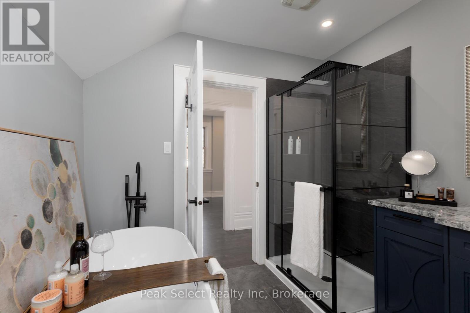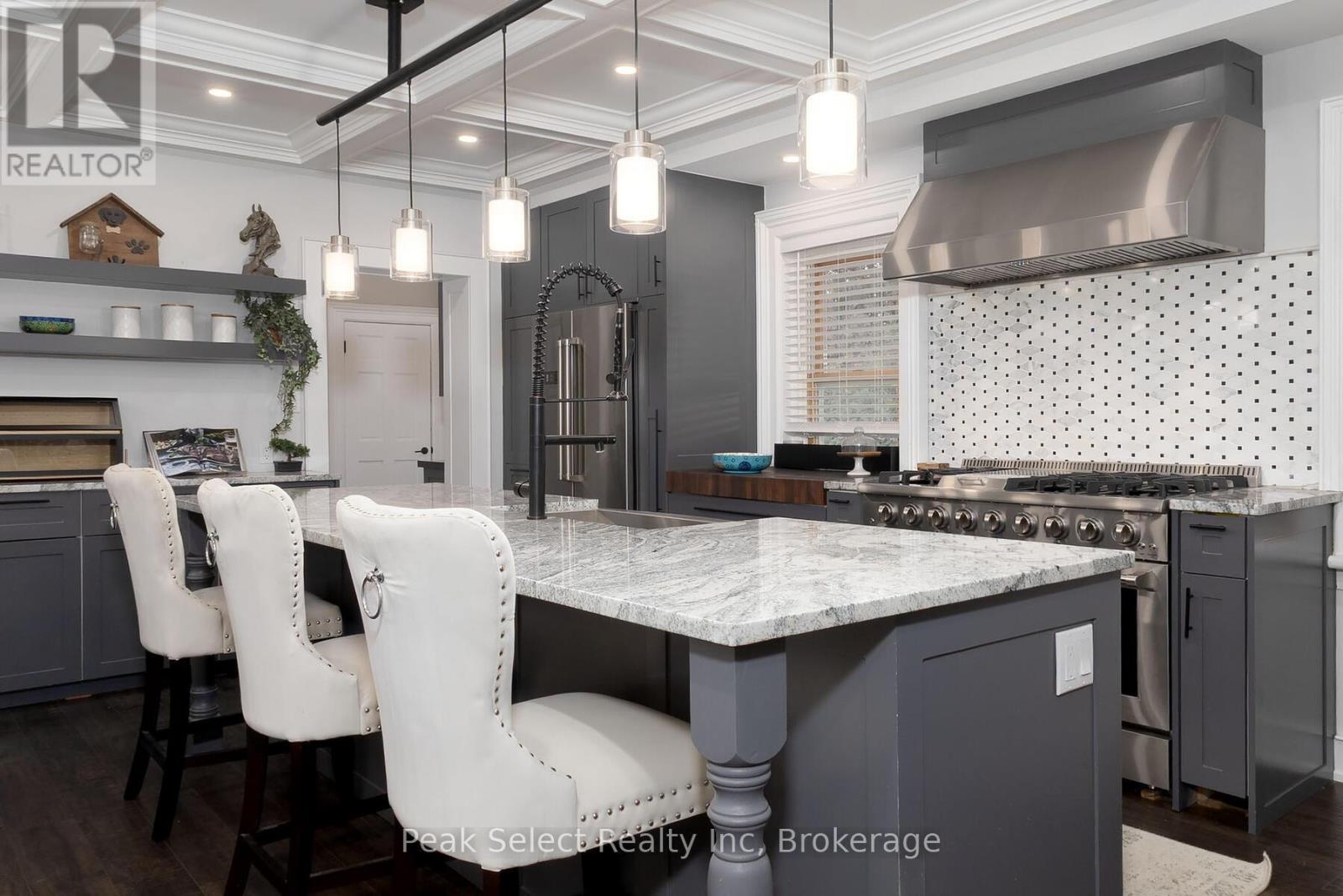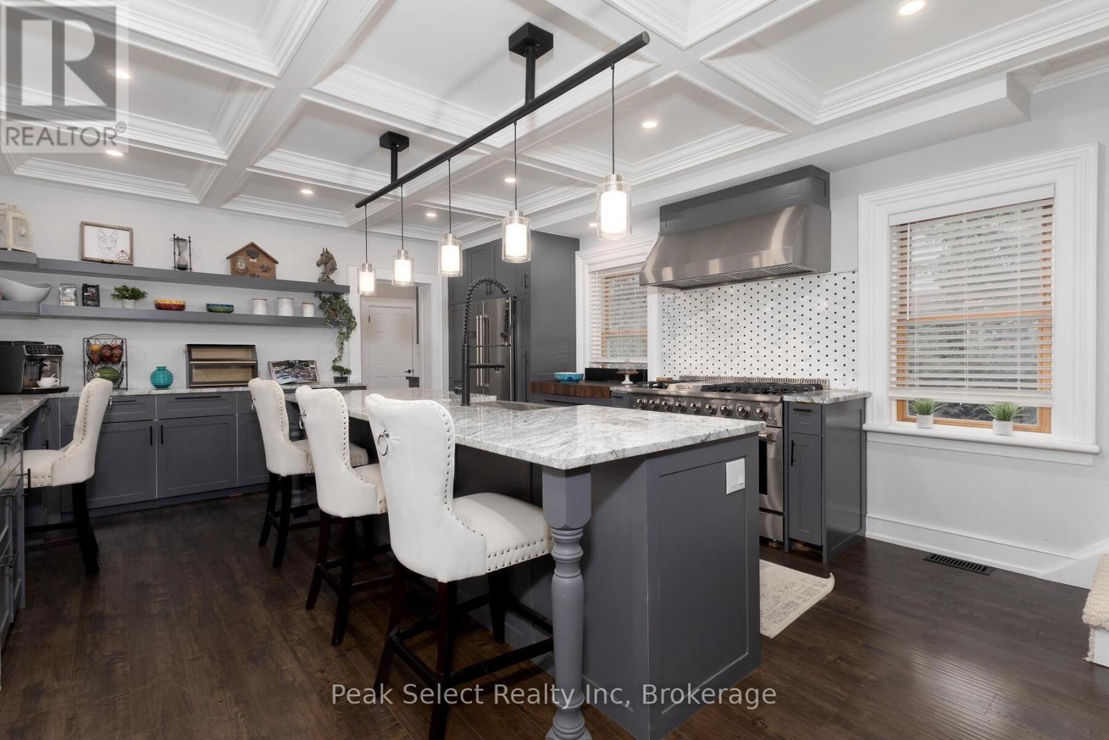Welcome to 382 Queen St. E., in the picturesque town of St. Marys, ON. This 1890 solid-brick beauty has been extensively modernized and is ready for a new family to call her own. Renovated in 2023 for those who love to entertain or host family gatherings, key features include a large dining room directly off of the kitchen, a separate bar area ideal for preparing cocktails or for use as a coffee bar, and a separate living room with bay window. The kitchen stands as the hallmark trait of the home, with modern cabinetry, a large centre island with breakfast bar, a 48" gas range, an apron farmhouse sink, and a built-in, beautifully-crafted walnut cutting board counter. The focal point, however, is the magnificent wine refrigeration cabinet built in under a staircase, which could be repurposed to house fruits, cheeses, or other beverages if wine isn't your thing. The magnificent coffered ceiling that flows from kitchen, dining to living room levels up the elegance. Travel up the curved staircase to an upstairs that hosts 3 bedrooms, including a large Primary suite with natural gas fireplace, a 4-piece bath with glassed-in shower, a claw-foot tub and spacious vanity. A back "servant's staircase" leads from this bedroom to the kitchen for those urgent early-morning coffee runs. Outside you will find a large raised wood deck and private, fenced-in backyard. Take a short walk to the downtown core to enjoy the fabulous shops, cafes and restaurants. (id:49203)