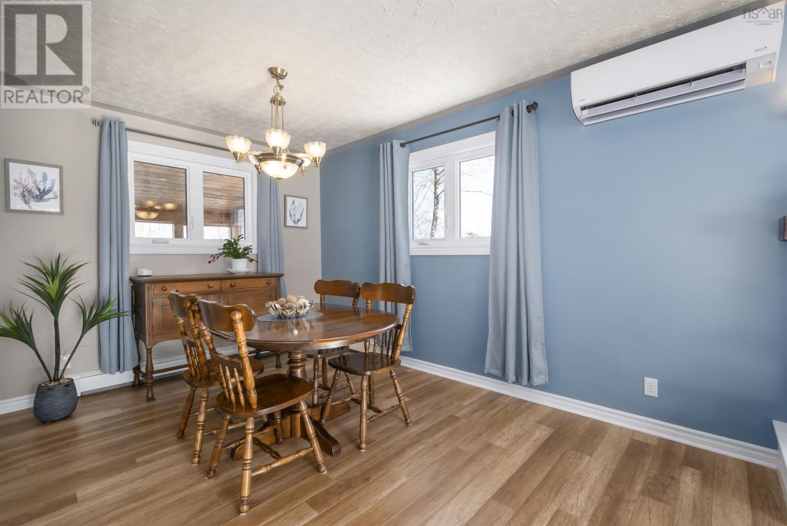 Welcome to 39 Franklyn Drive in Beaver Bank! This well maintained 3+1 bedroom, 2 full bathroom split entry home sits on an impeccably landscaped 15,000 plus square foot lot with municipal water and sewer. The location offers excellent convenience close to amenities, schools, the lake, and the golf course. As you enter the home, the spacious living room is filled with natural light from the oversized front window, while the ductless heat pump provides efficient heating and cooling throughout the main living area. The dining room leads to the kitchen featuring quartz countertops and a walkout to the large back deck, creating an ideal space for summer entertaining and barbecues. A covered patio offers additional outdoor living space, and the expansive backyard provides privacy surrounded by mature hardwood trees and shrubbery. The main level also includes three well-sized bedrooms and a full bathroom. The lower level features a generous family room that is perfect for movie nights, along with a fourth bedroom, another full bathroom, storage, utility and a laundry area. Recent upgrades include the roof shingles (2020), oil tank (2023), upper and lower heat pumps installed in 2019 and 2022, new flooring in the living room, dining room, and upper hallway in 2023, a generator panel added in 2023, and more. Meticulously maintained by the current owner, this home is an excellent opportunity offered at $524,900! (id:49203)