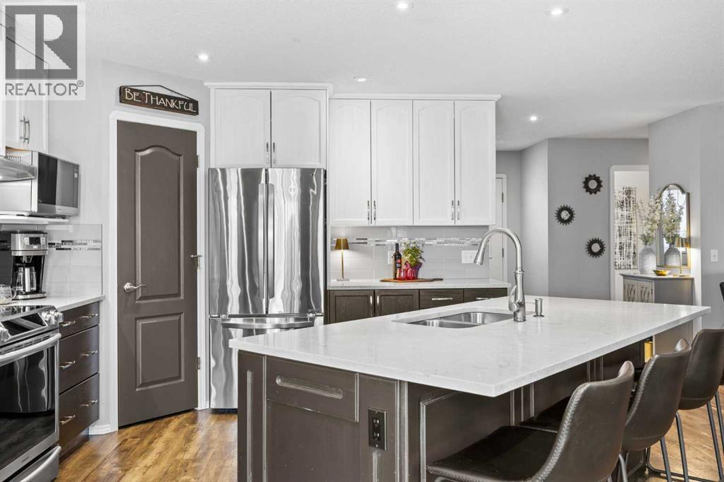 **OPEN HOUSE ** SAT MARCH 7, 2-4PM & SUN, MARCH 8, 1-3PM ** STUNNING MAIN FLOOR RENO + WALKOUT BASEMENT + WEST-FACING BACKYARD OASIS — THIS IS THE ONE YOU HAVE BEEN WAITING FOR!!!Welcome to 390 Cove Road, located in one of Chestermere’s most desirable LAKE communities — known for its PRIVATE BEACH, pickleball courts, and quiet, family-focused atmosphere. If you’ve been waiting for a SINGLE-FAMILY home that gives you real space, real upgrades, and real value… THIS IS IT!!Offering over 2712 SQ.FT. OF FULLY FINISHED living space, a WALKOUT basement and an DOUBLE ATTACHED GARAGE, this home IS READY TO GO!! The main floor has been COMPLETELY RENOVATED and features LVP flooring throughout, a beautifully updated half bath and CUSTOM laundry/mud room that is designed for busy family life with both style and function in mind. And then there’s the kitchen… COMPLETELY TRANSFORMED and absolutely GORGEOUS!! Featuring stainless steel appliances, QUARTZ countertops, a stylish tile backsplash, updated cabinetry, a functional island with breakfast bar seating, and a corner pantry — this is the kind of kitchen buyers get excited about. It flows effortlessly into the bright dining nook and welcoming living area with feature floor to ceiling stone FIREPLACE that creates a stunning focal point and is the perfect layout for everyday life and entertaining.Step outside and you’ll see why this home truly stands out. The WEST-FACING backyard has been fully upgraded with a HUGE stamped concrete patio — the ultimate setup for summer nights, entertaining friends, or simply relaxing in your own private oasis. Privacy glass ensures maximum comfort, and the large upper deck gives you even more outdoor living space. Added bonus — LARGE concrete stairs lead from the front of the property directly to the backyard, providing convenient access you don’t often find.Upstairs offers 3 generous bedrooms including a KING-SIZED primary suite complete with a custom WALK IN closet with built ins and spacious 4-PIECE ENSUITE featuring a soaker tub, walk-in shower, and modern vanity.The FULLY FINISHED WALKOUT BASEMENT brings incredible flexibility. There’s a dedicated STUDIO space currently being used as a hair salon — complete with a sink already plumbed in. Whether you’re an entrepreneur, creative, or just want a separate workspace, it’s ready to go. You’ll also find a 4TH BEDROOM, bathroom, and a HUGE family room perfect for movie nights or a kids’ hangout zone. This home is the total package and packed with features you will LOVE including A/C, a STUNNING kitchen, WALKOUT BASEMENT, WEST backyard, newer roof & siding, private backyard oasis + MUCH, MUCH MORE!! If you’ve been waiting for a home that offers serious VALUE in a quiet, established neighborhood — this is your opportunity. (id:49203)