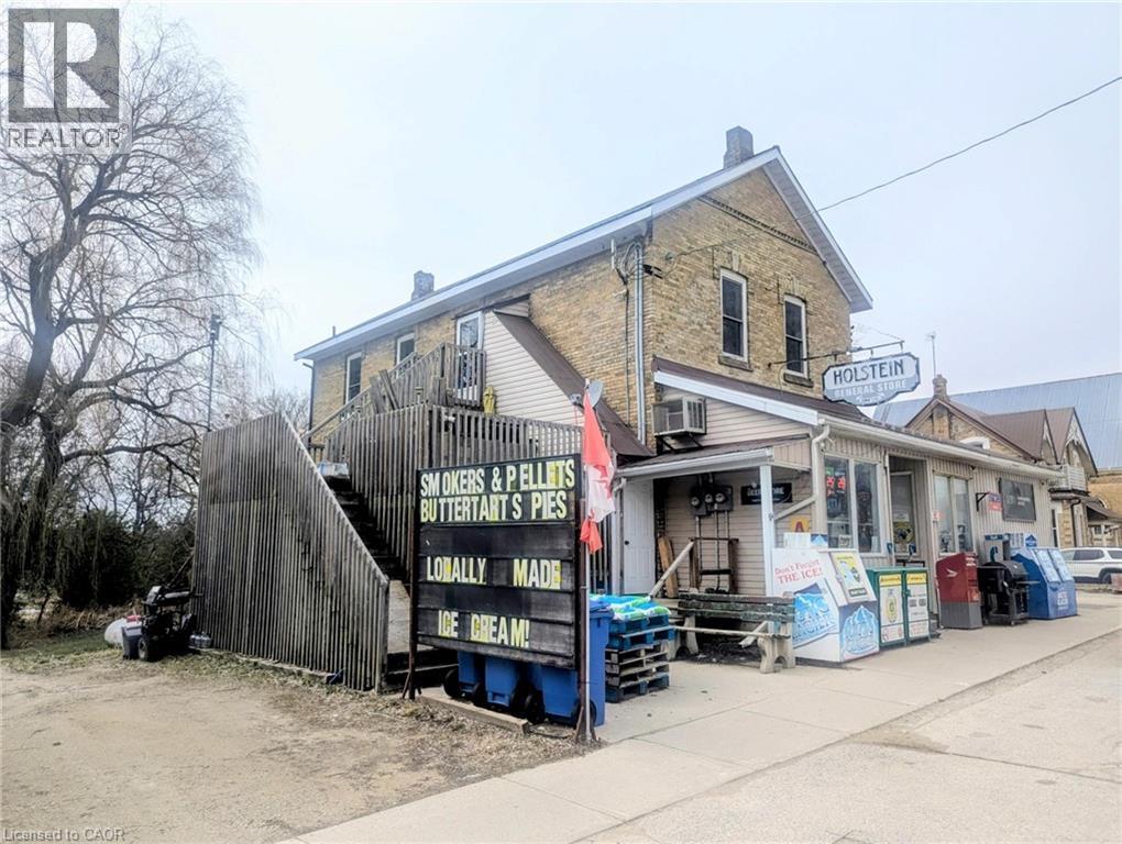 Live, Work & Earn - All in One Incredible Opportunity! Looking for the perfect blend of lifestyle and income? This rare country general store with living quarters in the heart of Holstein, Ontario offers the ultimate work-from-home dream. Established, well-loved general store with long-term ownership history. Great multiple income stream with strong local and visiting traffic featuring postal services & community mail hub pick up, lottery terminals centre, well stocked LCBO licenced outlet and great local produce plus great grab and go lunch options. Located right on the snowmobile route as a favourite rest stop also enhances income during the winter months with profound loyal customer base. Nice improvements already completed for comfortable on-site living quarters or rental income. Why Holstein? This vibrant rural community offers more than just charm-it delivers a lifestyle features like the Annual Bluegrass & Maple Syrup Festivals. The community also features public school, daycare, and community centre complete with park, playground & swimming facilities plus a Senior's residence. Whether you're an entrepreneur, investor, or lifestyle seeker, this is your chance to own a thriving business while enjoying small-town living all at the same time. Opportunities like this don't come often-step into a business with history, stability, and heart. (id:49203)