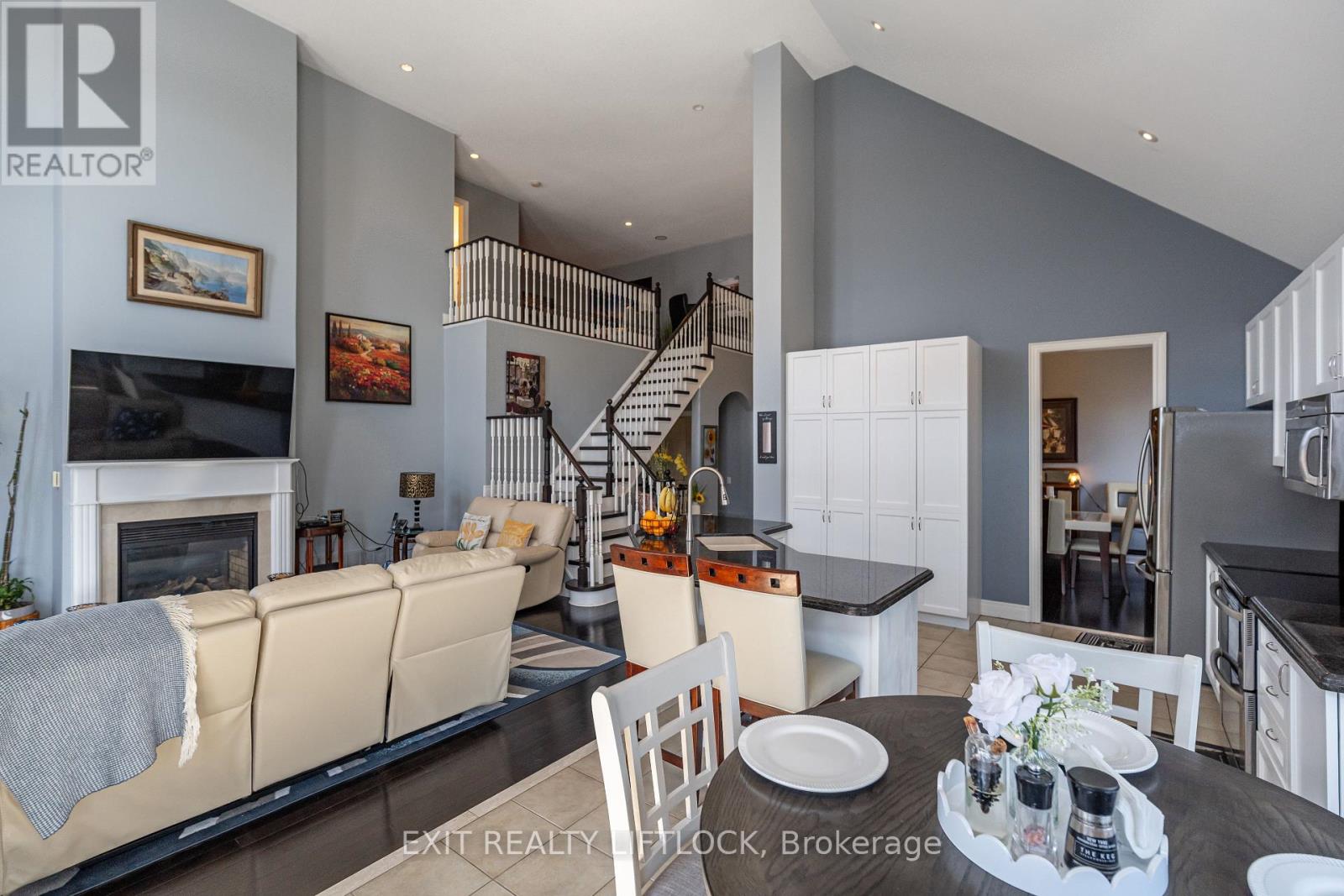 Welcome to your dream home, where luxury, comfort, and family living come together seamlessly. This beautifully crafted bungaloft offers three spacious levels designed for versatility, perfect for growing families, multi-generational living, or anyone who loves to entertain. The main floor features a bright, open-concept eat-in kitchen, a formal dining room, and a cozy living area with wall-to-wall windows and a stunning fireplace. The primary suite is conveniently located on this level, complete with its own fireplace and a spa-inspired ensuite. A second bedroom and full bathroom provide comfort and flexibility for guests or family, while main floor laundry and direct garage access add everyday convenience. Upstairs, the inviting loft space includes a large family/sitting room and an additional bedroom, perfect for kids, teens, or guests. The fully finished lower level expands your living space with a complete in-law setup, including a bedroom, bathroom, kitchenette, recreation room, and second laundry area. Step outside and experience your private backyard oasis, featuring a saltwater pool with a waterfall and auto-refill system, a 6-person hot tub, gazebo, and Tikki bar. Lush landscaping with irrigation creates a resort-style atmosphere, ideal for entertaining, relaxing, and making memories. With parking for 4+ vehicles and a thoughtfully designed layout, this exceptional home delivers both style and substance. Don't miss your opportunity to make it yours! (id:49203)
