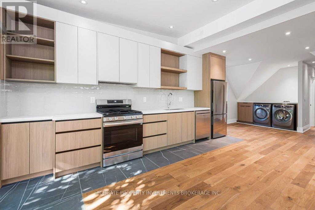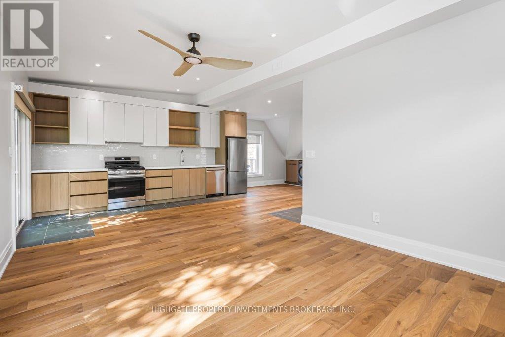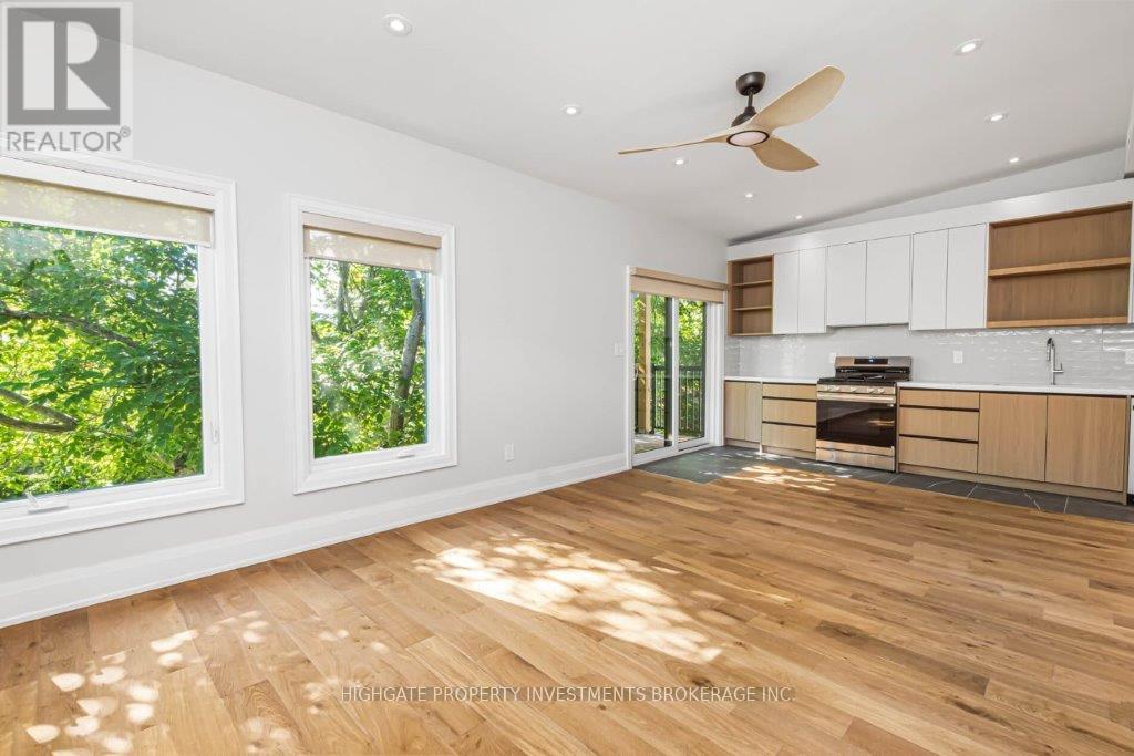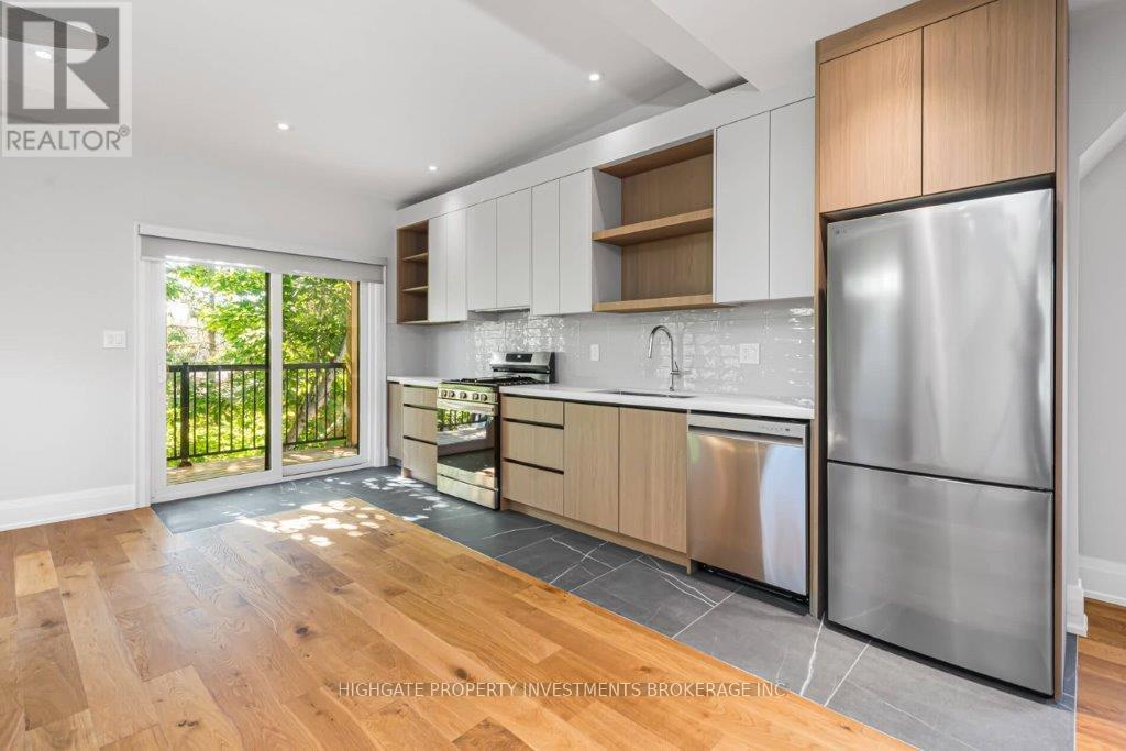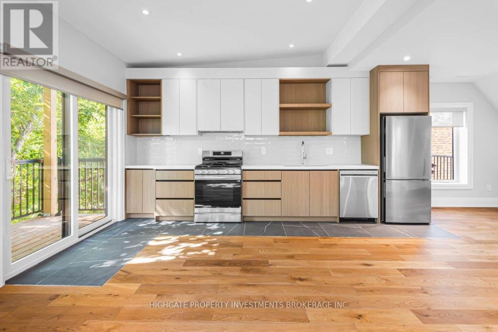 Brand New. Never Lived In. Fully Renovated. Premium & Modern Finishes Throughout. Beautifully Designed. Premium & Modern Finishes Throughout. Open Concept Floorplan. Stunning Kitchen Featuring Built-In SHelving, Backsplash, Soft-Close Cabinets, Tile Flooring & Potlights. Sprawling Living/Dining Rooms With Wide Plank Hardwood, Large Windows, More Pot LIghts & W/O To Deck. Laundry Area With Built-In Storage & Table Top. Primary Bedroom Includes Vaulted Ceiling, Large Closet, Large Window & Hardwood Flooring. 2nd Bedroom - Perfect For Working From Home. Modern Bath Including Glass Enclosed Stand-Up Shower With Niche, Tile Floor, Vanity With Storage. Enclosed Deck With Privacy & Shade From Numerous Trees. Fire Escape For Safety. 1 Parking Space. Additional Storage. (id:49203)