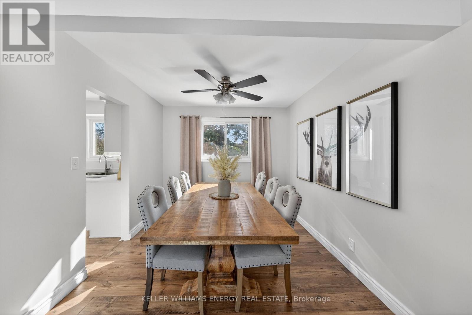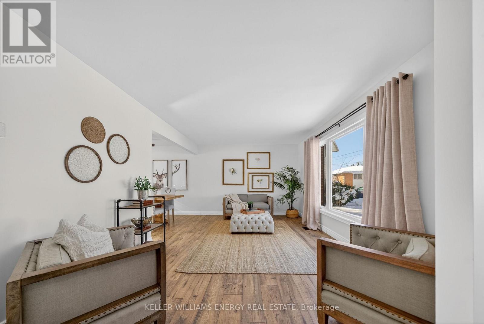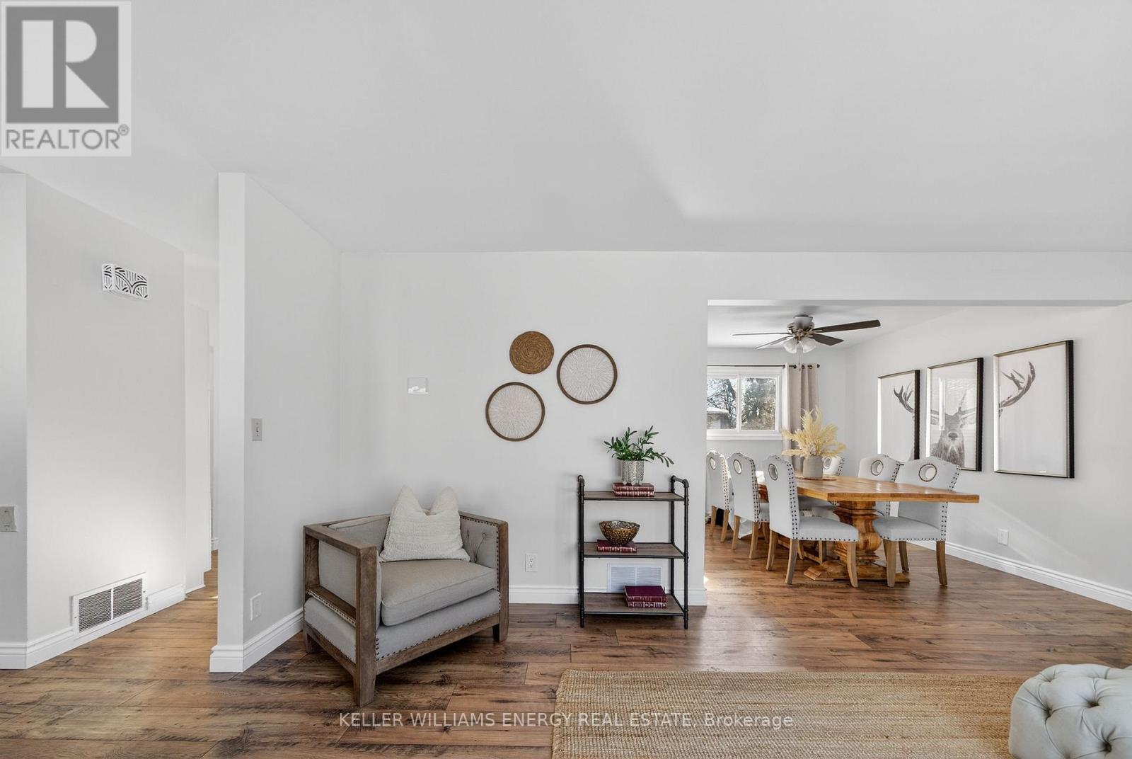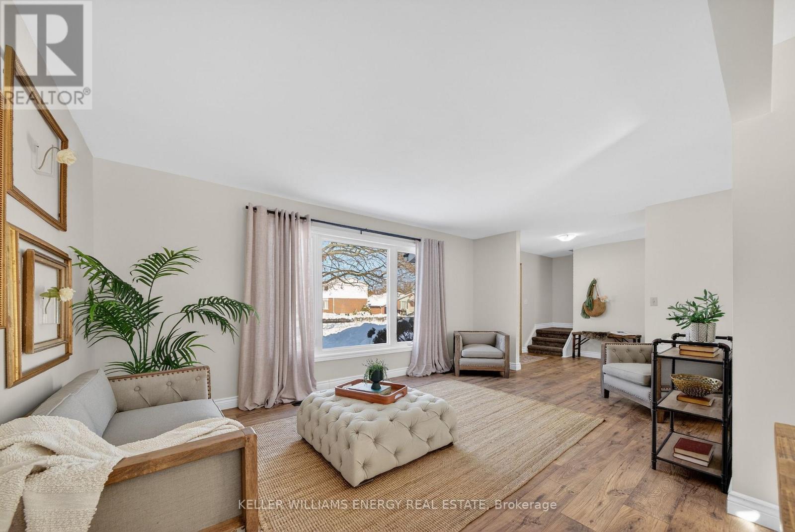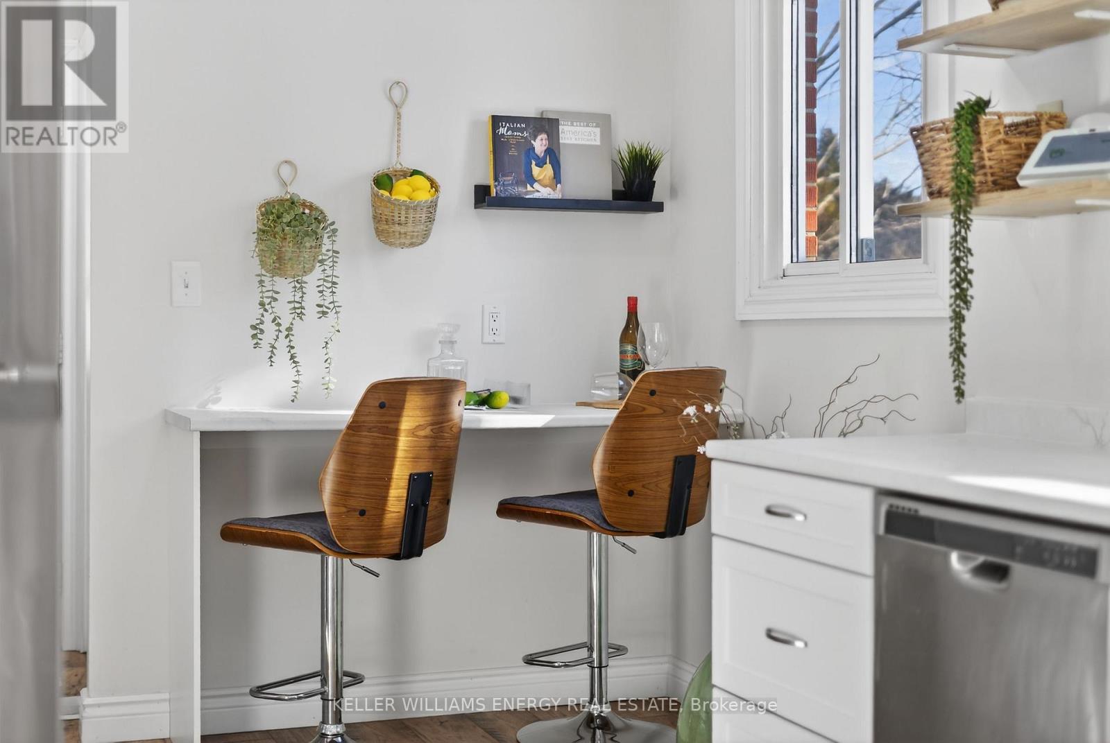 See Video & Virtual Tour links. Welcome to this beautifully updated 4-bedroom, 1.5-bath home, located on a quiet, family-friendly street in a desirable West-end Belleville neighbourhood. This move-in-ready property offers thoughtful upgrades throughout. The fully updated kitchen (2025) is the heart of the home, showcasing new stylish cabinetry, modern countertops, a deep sink with updated faucet, built-in microwave, and a breakfast bar-perfect for everyday living and entertaining. The spacious living room features ample seating space and a large bay window that fills the home with natural light. The dining room flows into both the living room and kitchen, ideal for family meals and gatherings. A convenient main-floor 2-piece bathroom, located near the carport entrance, has been updated with a new vanity and fixtures. Upstairs, you'll find four generously sized bedrooms and a refreshed 4-piece bathroom with a new vanity, vinyl flooring, and fixtures (2025), a newer bathtub and surround. Throughout the freshly painted home, all-new water-resistant laminate flooring (2025) provides a bright, cohesive finish. Additional updates include multiple newer windows (2020 & 2025). The hot water tank is owned and there is central air conditioning. Fibre optic internet is available-ideal for video conferencing, home security systems, and gaming. Enjoy a fantastic lifestyle location with walkable access to the Belleville waterfront trail, Zwick's Waterfront Park, great schools, convenience stores, box stores, quick dining options, and more. Simply unpack and enjoy-this is a well-maintained, thoughtfully upgraded home in an excellent Belleville location. (id:49203)