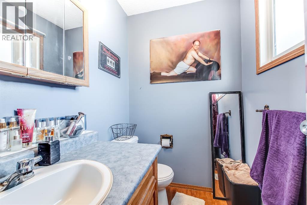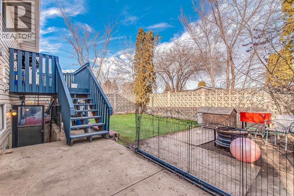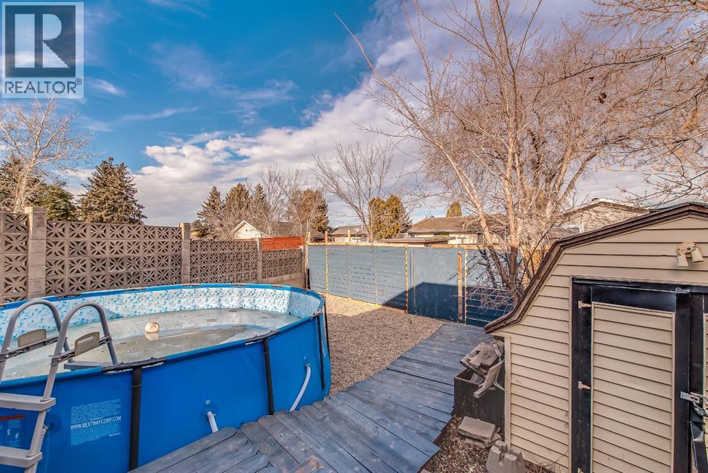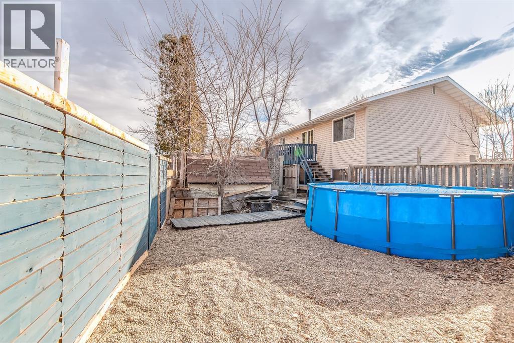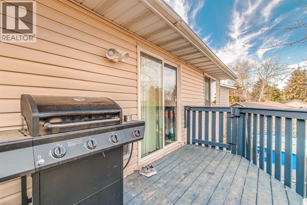 Excellent investment opportunity with great flexibility in this spacious 5-bedroom home, offering 3 bedrooms up and 2 down, plus two full bathrooms and a 2-piece ensuite. Located on a quiet cul-de-sac and situated on a large pie-shaped lot, this property offers strong value with major upgrades already completed. The bright main floor features a welcoming living room with a wood-burning fireplace (electric insert) and a bay window added in 2020. A separate dining area leads into the functional kitchen, complete with a stainless steel fridge, stove & dishwasher and a pantry with laundry hookups. Patio doors open onto a deck overlooking the fully fenced backyard. Outdoor space is a true highlight, featuring turf landscaping, a patio area, a shed, and an above-ground pool—perfect for summer enjoyment. The lower level provides added versatility with a second wood-burning fireplace and a separate kitchen area—ideal for extended family, guests, or potential revenue-generating use. Laundry options include hookups upstairs and a washer/dryer already installed downstairs. Improvements include new shingles 2025, all new windows (except 2) done in 2020, an exterior front door 2020, stainless steel appliances 2017, and laminate and vinyl plank flooring throughout. Parking is plentiful with a double concrete front pad and room for an RV. Additional features include a high-efficiency furnace (2017), central A/C and central vacuum (sold as-is). A solid opportunity for investors or buyers seeking a property with income potential, space, and substantial upgrades already in place. (id:49203)