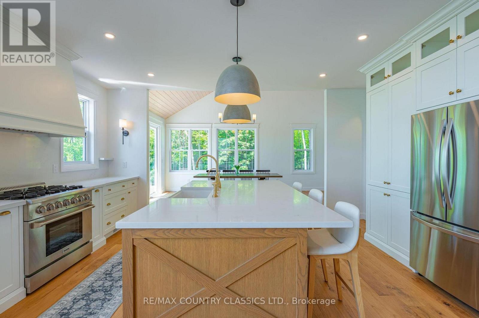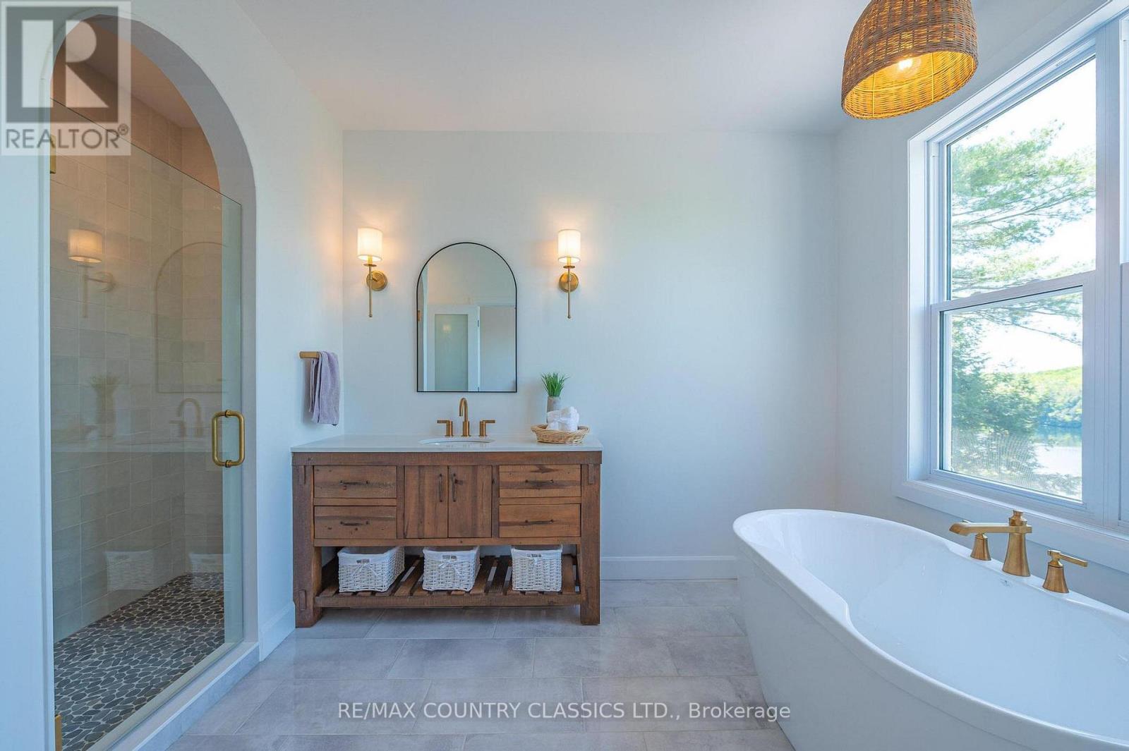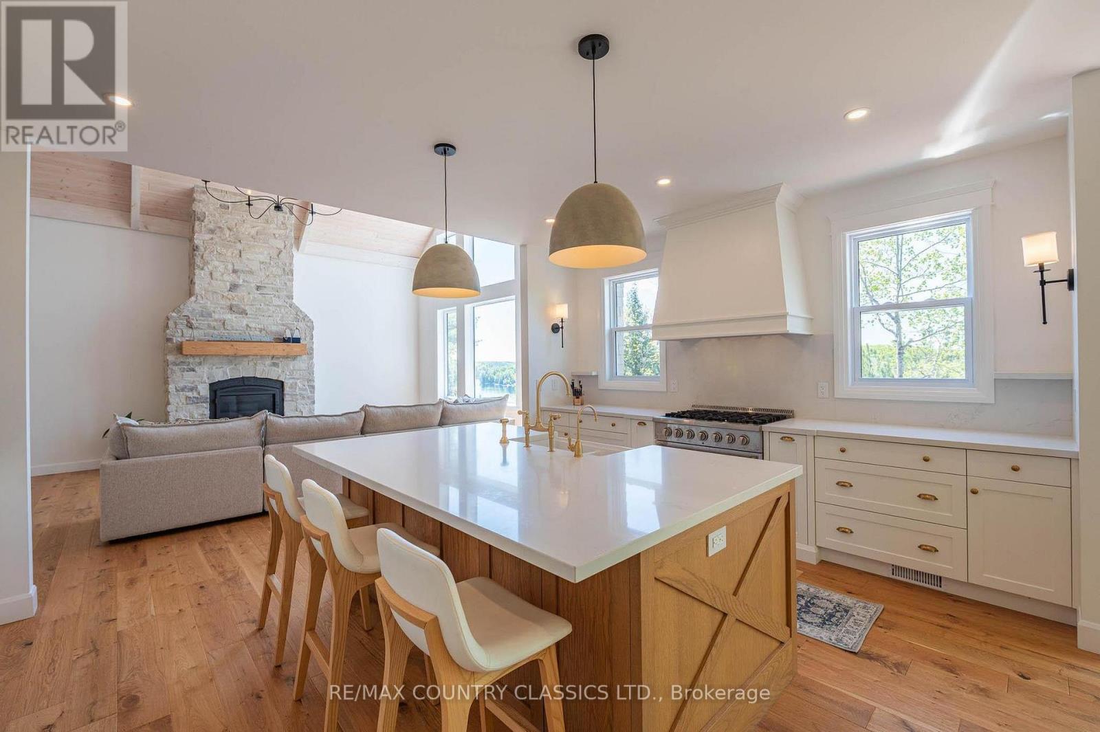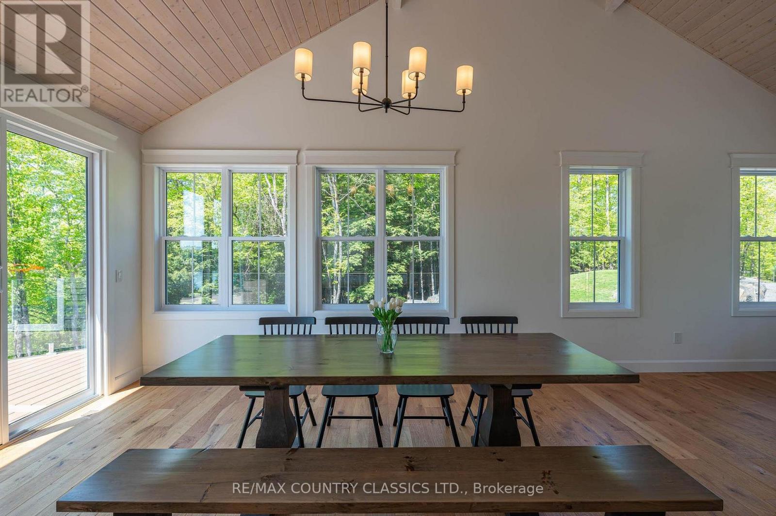 Luxury Lakeside Living at Chandos Lake Estates. Welcome to your dream retreat on the pristine shores of Chandos Lake. Nestled within the exclusive Chandos Lake Estates, this brand-new five-bedroom home offers the perfect blend of modern elegance and natural beauty. Perched on an elevated lot, the property boasts breathtaking panoramic views of the lake, with expansive windows and multiple outdoor living spaces designed to capture every sunrise and sunset. The thoughtfully designed layout features spacious, light-filled interiors, high-end finishes, and seamless indoor-outdoor flow--ideal for both entertaining and quiet relaxation. The gourmet kitchen opens to a grand living area with vaulted ceilings and a stone fireplace, while the primary suite offers a private sanctuary with lake views, a spa-inspired ensuite, and walk-in closet. Four additional bedrooms provide ample space for family and guests. Step outside to enjoy excellent waterfront access, complete with a private dock, deep swimming water, and plenty of space for boating and lakeside activities. Whether you're hosting summer gatherings or enjoying peaceful mornings by the water, this property delivers an unparalleled lakeside lifestyle. Located just minutes from local amenities yet surrounded by nature, this is a rare opportunity to own a slice of paradise in one of North Kawartha's most sought-after communities. (id:49203)