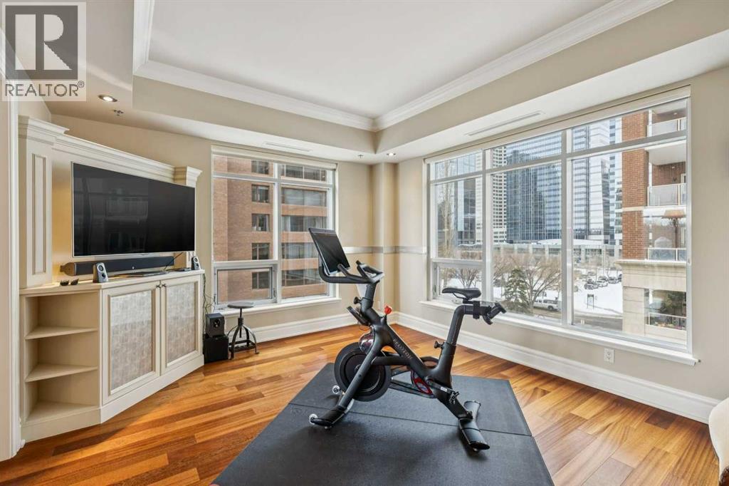 Welcome to Princeton Grande, one of Calgary’s most prestigious & exclusive riverfront addresses in the heart of Eau Claire, perfectly positioned along the Bow River & directly across from the natural beauty of Prince's Island Park. This extraordinary 3,065 sq. ft. private sub-penthouse offers an exceptional standard of luxury living, where timeless elegance, architectural scale & breathtaking river & park views come together to create a truly remarkable home. A private elevator opens directly into the residence, revealing expansive interiors designed for sophisticated entertaining & refined everyday living. Grand principal rooms are framed by oversized windows that capture sweeping views of the river & park, while high coffered ceilings, custom millwork, & elegant designer finishes elevate every space. The formal living room, anchored by a double-sided gas fireplace & surrounded by windows with terrace access, creates a dramatic yet inviting setting while the gracious dining room is perfectly suited for hosting memorable dinners & special occasions against a backdrop of spectacular views. The chef-inspired kitchen is beautifully appointed with granite countertops, custom cabinetry, & an expansive pantry, offering both functionality & understated luxury. Flowing effortlessly into a bright south-facing breakfast nook & a comfortable family room, with access to a private terrace ideal for outdoor dining & enjoying river views. A refined den with custom built-ins provides the perfect executive office or private library (could be used as a 3rd bedroom). The luxurious primary suite is a tranquil sanctuary featuring a spacious walk-in closet & a spa-inspired ensuite complete with a deep soaker tub, glass-enclosed shower, and dual vanities. A second bedroom with its own ensuite & large closet offers exceptional comfort & privacy for guests. Additional highlights include 371+ sq. ft of outdoor living space on two private terraces, a dedicated laundry room, central vacuum sys tem, built-in speaker system, abundant in-suite storage, two titled underground parking stalls a short distance to the elevator, & a titled storage locker. Residents of Princeton Grande enjoy an unmatched collection of five-star amenities designed for comfort, wellness, & entertaining. These include 24-hour concierge & security, an elegant lobby with fireplace lounge, beautifully appointed guest suites, a private library & conference room, temperature-controlled wine storage with a tasting room, a sophisticated residents’ lounge with full kitchen & terrace, fully equipped fitness center, a dedicated yoga studio, steam room with change facilities, an underground car wash bay, & a private freight elevator for discreet service & move-ins. Surrounded by the Bow River pathways, steps to downtown’s finest dining, cultural venues, & vibrant urban amenities, this exceptional residence offers a rare opportunity to experience luxury condominium living at one of Calgary’s most distinguished & sought-after addresses. (id:49203)