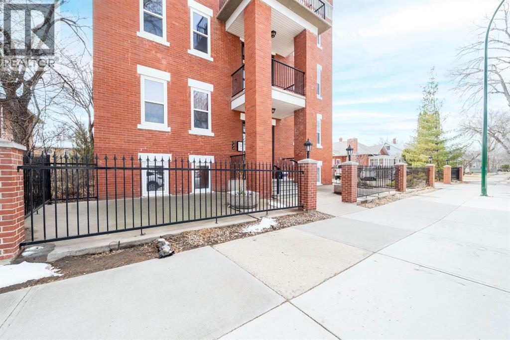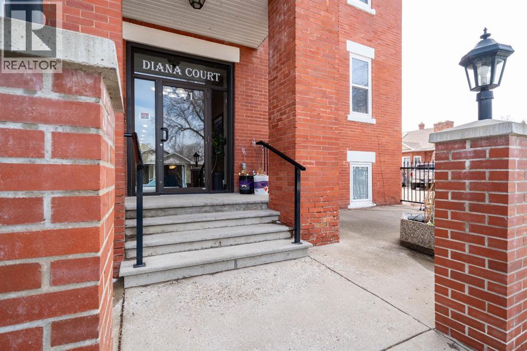 $450 MonthlyWelcome to this charming TOP-FLOOR one-bedroom, one-bathroom condo, perfectly situated in a beautiful historic brick building just minutes from downtown Medicine Hat! This well-maintained unit offers a quiet and private living experience, facing east to capture the basking morning sun, while staying comfortably cool during the summer months. Inside, you’ll find thoughtful upgrades and quality finishes throughout. The kitchen features stunning Corian Countertops installed in 2021, complemented by rich knotted alder cabinetry in a warm cinnamon stain, convenient pull-out drawers, corner pantry and stainless steel appliances. The open living space including the kitchen, living room and hallway are finished with hardwood flooring in a pecan stain, which are in impeccable condition. The bathroom adds a touch of character with a classic clawfoot tub, enhancing the condo’s cozy and inviting feel. The Primary Bedroom includes a closet and secondary closet with your in suite laundry. This unit is exceptionally well laid out, making the most of every square foot while maintaining a bright and welcoming atmosphere. Additional features include a dedicated storage unit in the basement, one assigned parking stall, and ample street parking for guests. Residents also enjoy shared front and back patios, with the rear patio offering a communal gas BBQ—perfect for relaxing or entertaining. Condo fees of $450/month include gas, water, building maintenance, and reserve fund contributions, making for easy and predictable ownership. Average electricity costs are only approximately $55/month, keeping overall expenses very affordable. This top-floor condo is ideal for a single professional, first-time homeowners, or someone looking to downsize. Cute, comfortable, and move-in ready, this is a fantastic opportunity to own a well-cared-for home in a desirable location on one of the ABCD Streets, close to downtown amenities. Book a showing today and see for yourself! (id:49203)