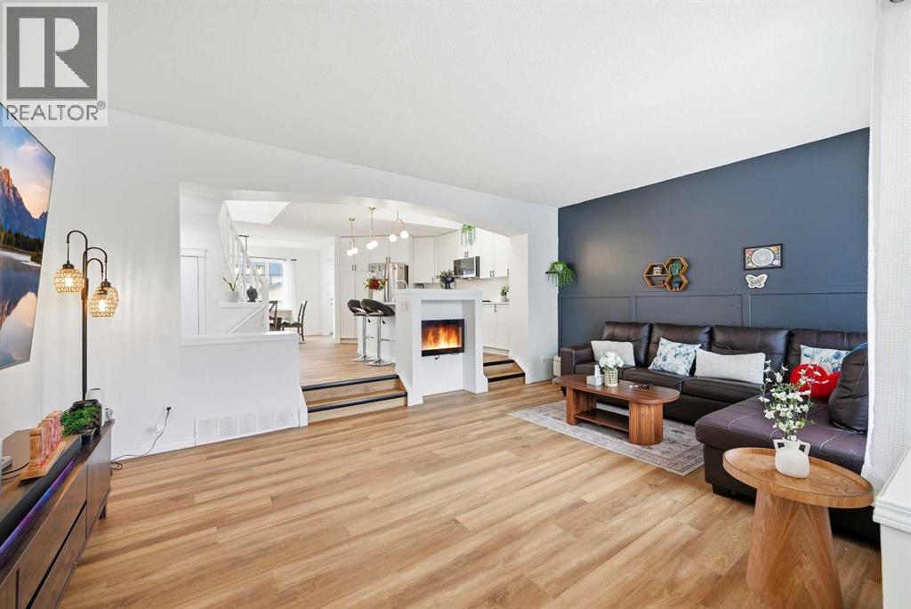 Welcome to 41 New Brighton Green SE, a FULLY RENOVATED bright and inviting home with a unique and practical layout. This well kept property sit on a EAST-WEST lot and offers three bedrooms and two and a half bathrooms, making it perfect for families or first time buyers. The main floor is open and filled with natural light, featuring an open to above kitchen that creates a spacious feel. The sunken living room is warm and cozy, complete with an electric fireplace that is ideal for relaxing evenings or entertaining guests. The living, dining, and kitchen areas flow smoothly together, giving plenty of room for daily living and gatherings. A discreet half bath and small mud area add extra convenience on the main level. Upstairs, the rounded staircase leads to a bright landing with a skylight. The primary bedroom is generously sized with a walk in closet and a private 4 piece ensuite. Two more comfortable bedrooms and another full bathroom complete the upper floor. Outside, enjoy the west-facing fenced backyard with an oversized double parking area, perfect for outdoor enjoyment and extra parking. Large windows bring in plenty of sunlight throughout the day, making every room feel bright and welcoming. The layout is easy to maintain and works well for both everyday living and special occasions, offering a move in ready home full of comfort and charm. (id:49203)