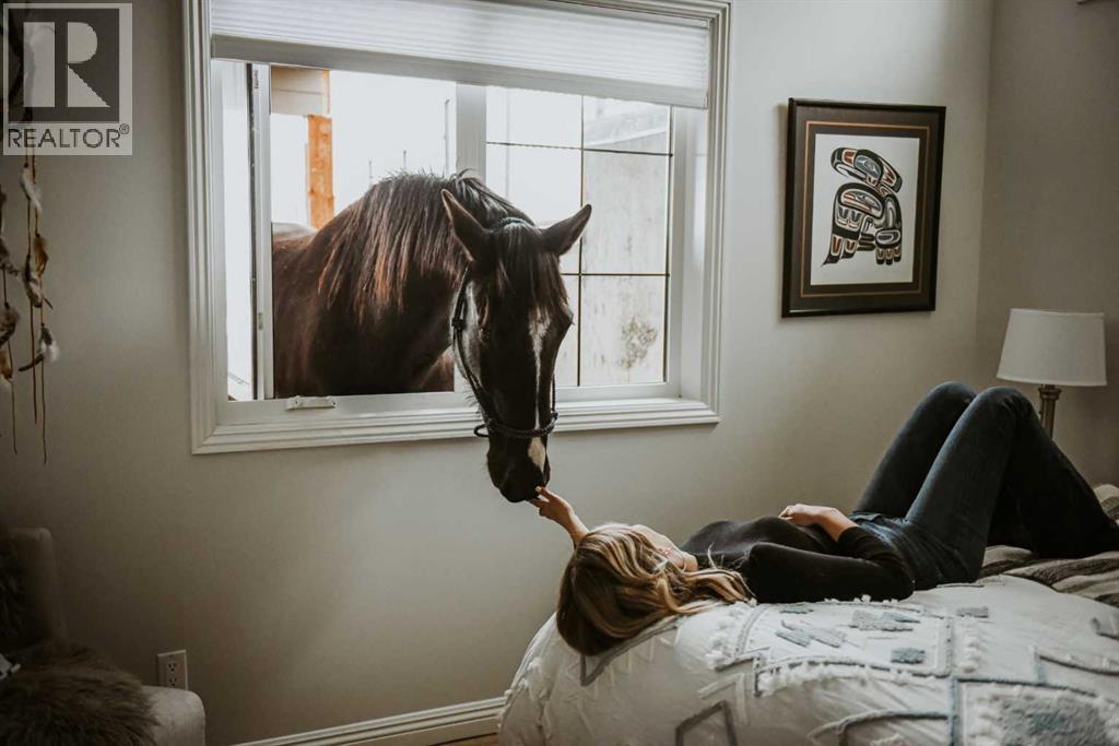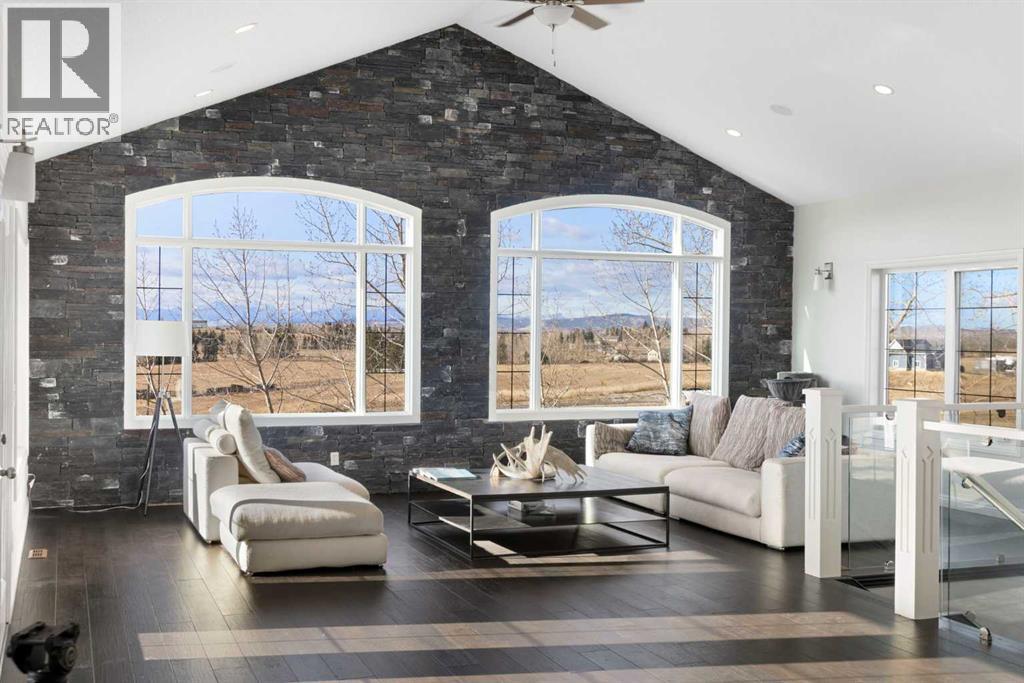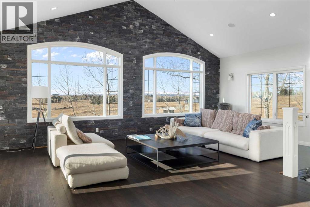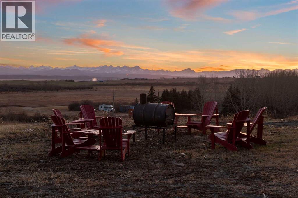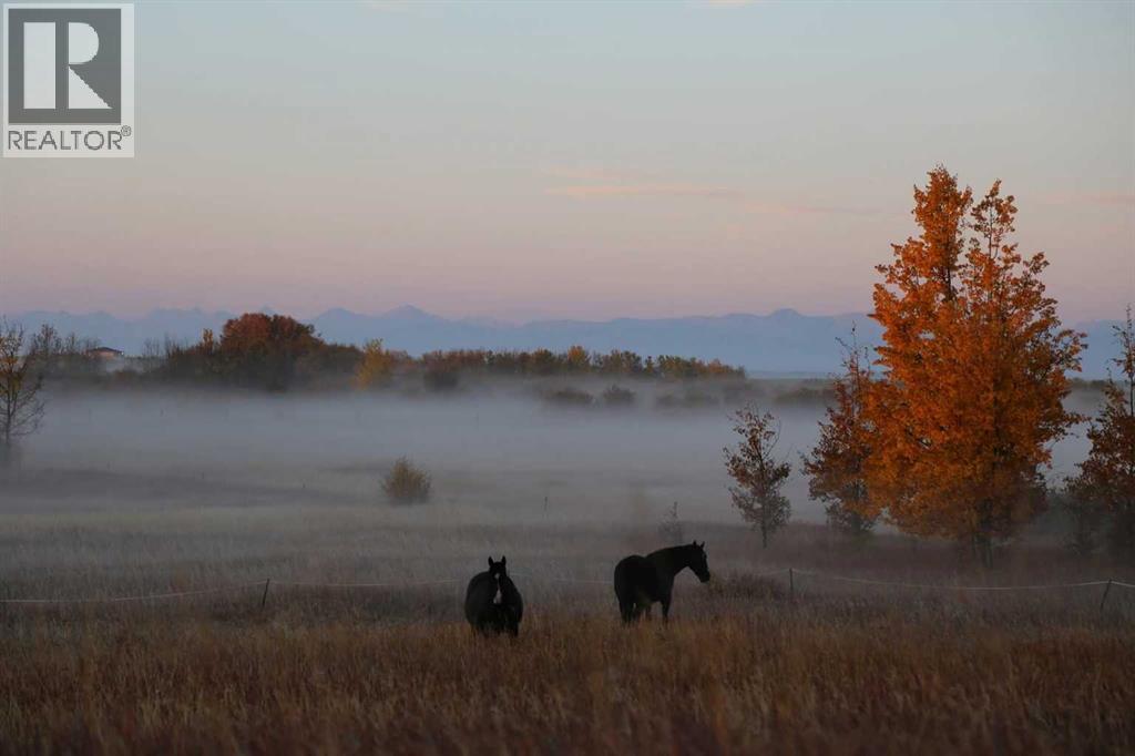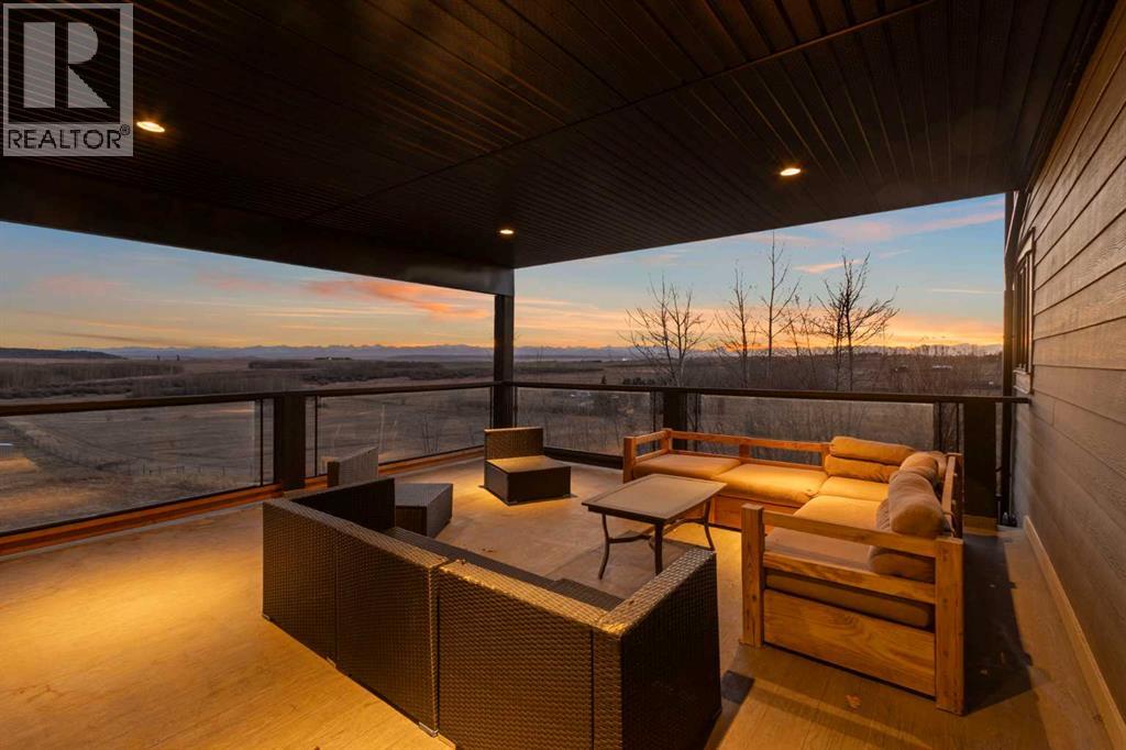 A lifestyle most only dream of! Historic Rocky Mountain views - just 8 minutes to Cochrane! Gorgeous custom-designed two-storey home featuring 4 bedrooms and 3.5 baths, with over 4900 sqft of developed living, AND 1,200 sq.ft. of wraparound decking on two levels.The main floor offers a smart, functional layout with three spacious bedrooms, including a massive primary retreat complete with a huge walk-in closet and luxurious 4-piece ensuite. Two additional bedrooms share another 4-piece bathroom with convenient main-floor laundry.Upstairs, the panoramic mountain views steal the show. The open-concept living space features 20-ft beamed ceilings, a cozy fireplace with built-in bench seating, and direct access to the south-facing deck. The chef-inspired kitchen showcases a full-size Sub-Zero fridge and freezer, granite island with seating, pot-filler over a Wolf six-burner gas range, walk-in pantry, and thoughtful design for everyday family life or large gatherings. The dining area, surrounded by three walls of windows, opens through French doors to another expansive deck — perfect for entertaining or soaking up the scenery.The walkout lower level expands your living options with a spacious one-bedroom suite (approx. 1,450 sq.ft.) featuring an open kitchen, dining, and living area, plus a media room/office, 3-piece bath, and laundry. A private entry makes it ideal for extended family, a caregiver, and successful short/long-term rental income. An interior locking door provides flexibility and security. Lots of options here.The oversized two-storey heated garage with attached carport ensures ample parking and storage.Outdoors, this fully fenced property includes manual entry gates, a quonset, and a charming barn with box and standing stalls, tack room, and loft (no power). Multiple paddocks, pastures with auto-waterers, two horse shelters, and a fenced dog run complete the setup.Enjoy peaceful rural living just minutes from Cochrane — with school bus service, shopping, and entertainment nearby. A short drive takes you to the Rockies and Alberta’s best outdoor playground.Book your private viewing today — this property truly needs to be experienced in person. (id:49203)