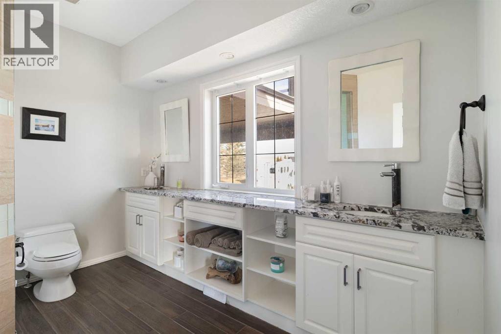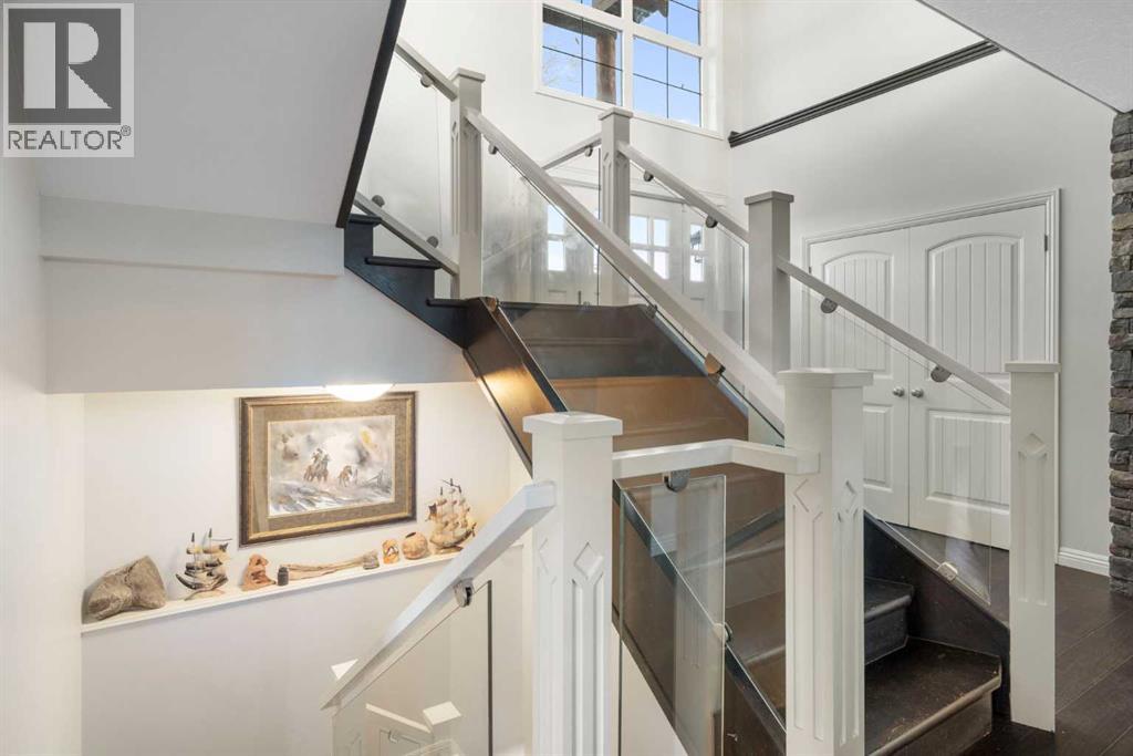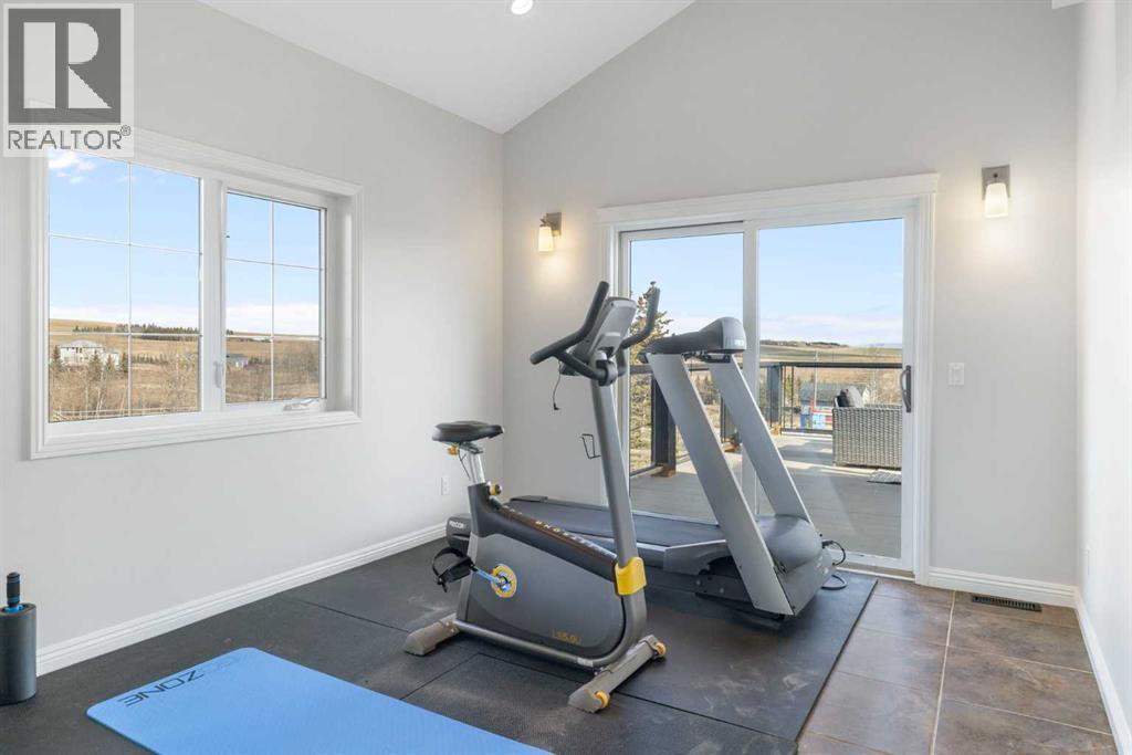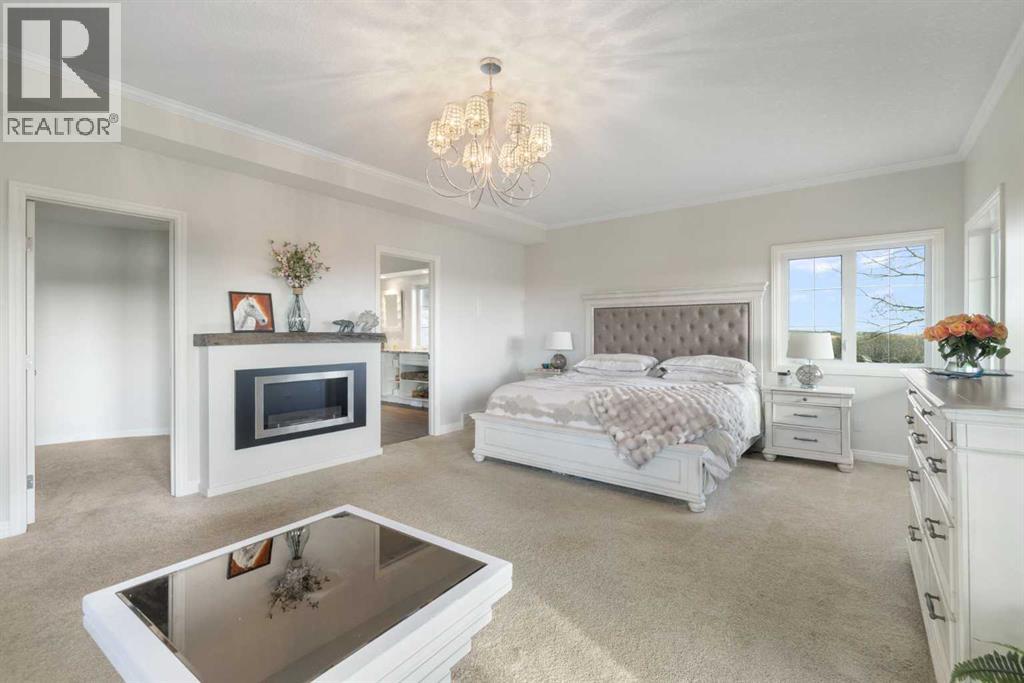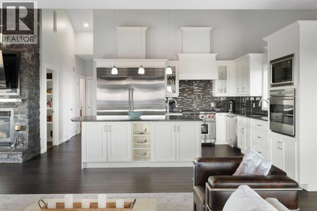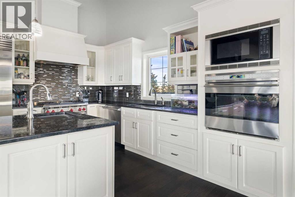 A lifestyle most only dream of! Historic Rocky Mountain views - just 8 minutes to Cochrane! Gorgeous custom-designed two-storey home featuring 4 bedrooms and 3.5 baths, with over 4900 sqft of developed living, AND 1,200 sq.ft. of wraparound decking on two levels.The main floor offers a smart, functional layout with three spacious bedrooms, including a massive primary retreat complete with a huge walk-in closet and luxurious 4-piece ensuite. Two additional bedrooms share another 4-piece bathroom with convenient main-floor laundry.Upstairs, the panoramic mountain views steal the show. The open-concept living space features 20-ft beamed ceilings, a cozy fireplace with built-in bench seating, and direct access to the south-facing deck. The chef-inspired kitchen showcases a full-size Sub-Zero fridge and freezer, granite island with seating, pot-filler over a Wolf six-burner gas range, walk-in pantry, and thoughtful design for everyday family life or large gatherings. The dining area, surrounded by three walls of windows, opens through French doors to another expansive deck — perfect for entertaining or soaking up the scenery.The walkout lower level expands your living options with a spacious one-bedroom suite (approx. 1,450 sq.ft.) featuring an open kitchen, dining, and living area, plus a media room/office, 3-piece bath, and laundry. A private entry makes it ideal for extended family, a caregiver, and successful short/long-term rental income. An interior locking door provides flexibility and security. Lots of options here.The oversized two-storey heated garage with attached carport ensures ample parking and storage.Outdoors, this fully fenced property includes manual entry gates, a quonset, and a charming barn with box and standing stalls, tack room, and loft (no power). Multiple paddocks, pastures with auto-waterers, two horse shelters, and a fenced dog run complete the setup.Enjoy peaceful rural living just minutes from Cochrane — with school bus service, shopping, and entertainment nearby. A short drive takes you to the Rockies and Alberta’s best outdoor playground.Book your private viewing today — this property truly needs to be experienced in person. (id:49203)