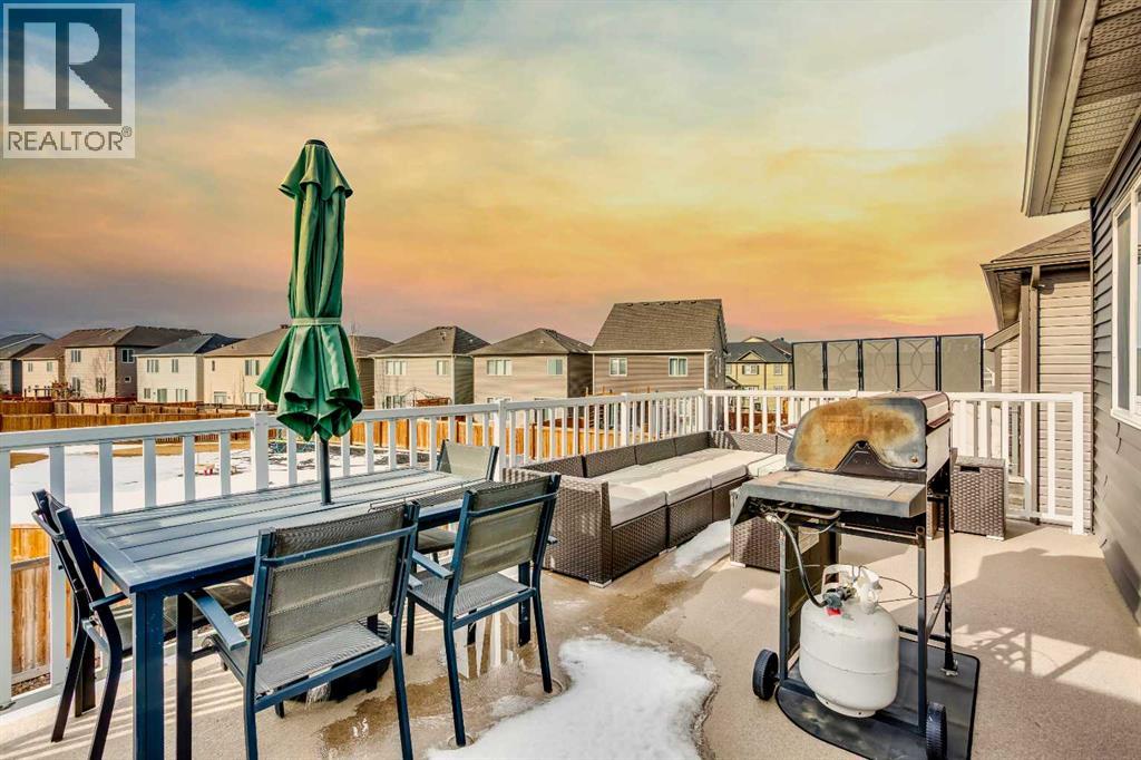 Welcome to this rare end-unit townhome with NO condo fees, perfectly situated fronting onto a park in the sought-after community of Windsong in Airdrie. Offering extra privacy and abundant natural light, this home stands out with its high-end finishings and a beautifully upgraded kitchen featuring quality cabinetry, modern design, and stylish details throughout.The functional and spacious layout includes 3 bedrooms and 2.5 bathrooms, with all bedrooms conveniently located upstairs. Step outside to enjoy the large west-facing balcony, the perfect spot to take in evening sunsets and overlook the park.The main floor offers comfortable everyday living and easy access to the attached double garage, while the unfinished basement provides excellent potential to create additional living space, a home gym, or extra storage tailored to your needs.With no condo fees, park-front living, premium upgrades, and a double garage, this is a fantastic opportunity to own a stylish and low-maintenance home in one of Airdrie’s most family-friendly communities. (id:49203)