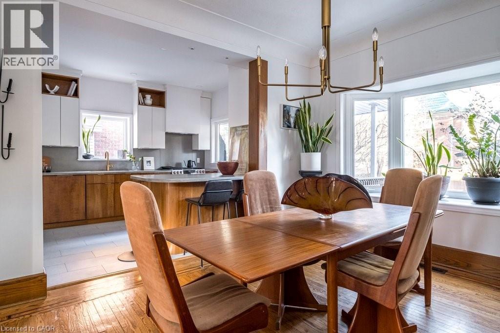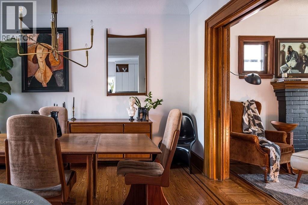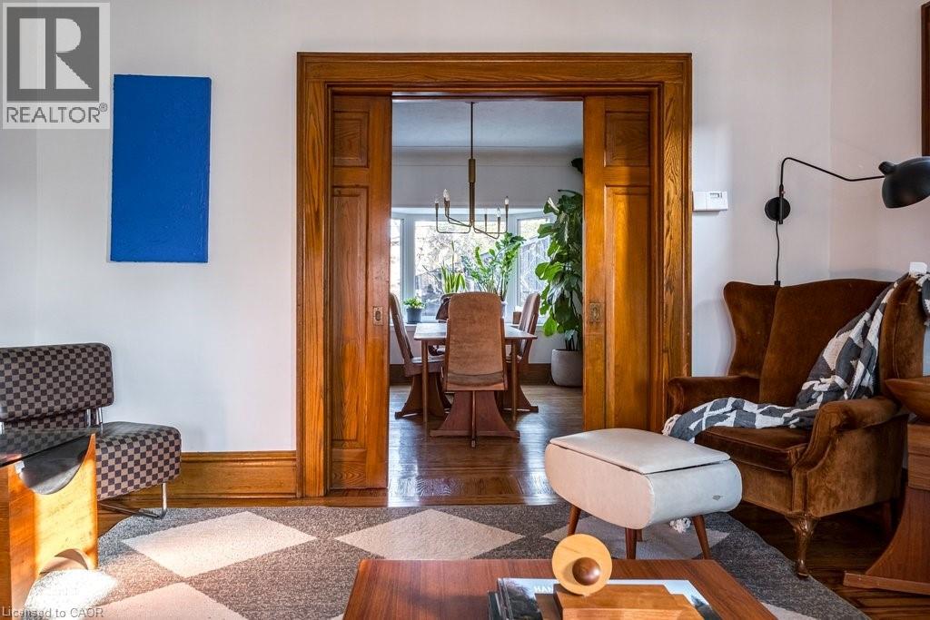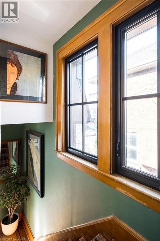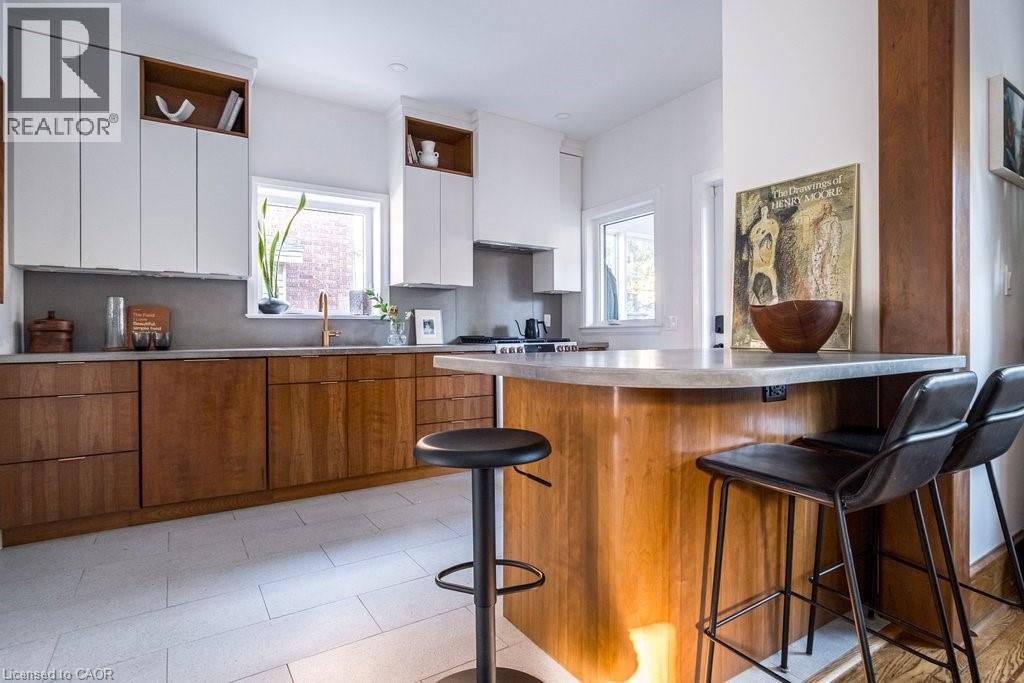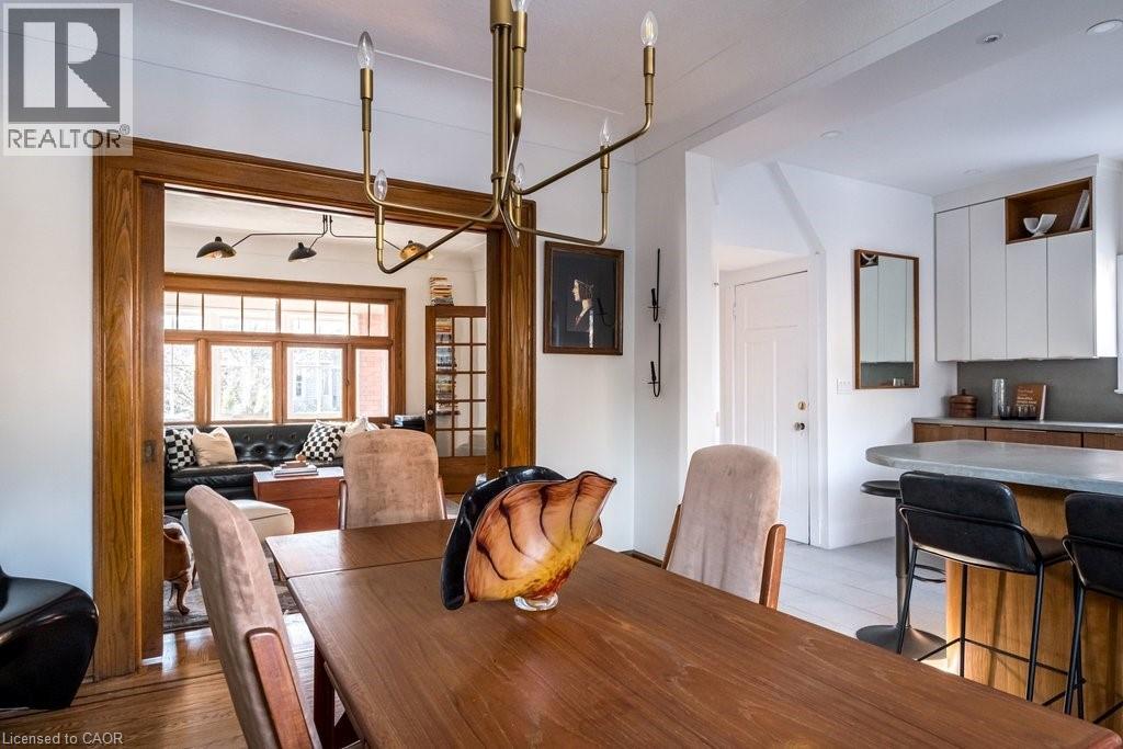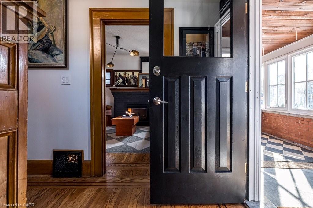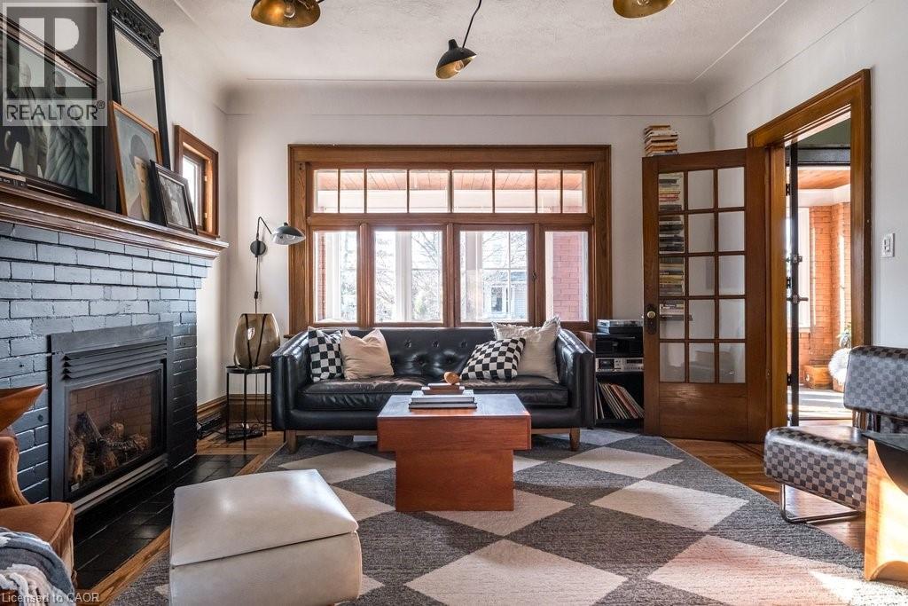 A rare opportunity to own a beautifully preserved and thoughtfully updated century home south of Aberdeen in one of Hamilton’s most sought-after neighbourhoods. Perfectly positioned in Kirkendall South, just steps to the Niagara Escarpment, this timeless residence offers over 2,650 sq. ft. of living space, with basement, 3-season rooms, and studio included. Four bedrooms, two full bathrooms, and two kitchens. The enclosed three-season front sunroom, fitted with newer windows and door (2024), provides a gracious introduction to an interior defined by refinished hardwood floors, natural wood trim, a cozy gas fireplace, french door, and original pocket doors. The heart of the home is the fully renovated kitchen, featuring custom floor-to-ceiling solid cherry cabinetry with a rounded peninsula, poured concrete countertops and backsplash crafted by Broe Design, a GE Café matte white gas convection range, and a Bosch panel-ready dishwasher. An enclosed porch just off the kitchen captures serene evenings all season long overlooking the backyard. Upstairs, three bedrooms share refinished hardwood flooring, 4 pc bath has been fully updated with floor-to-ceiling porcelain tile and a glass shower enclosure (2023). The finished basement offers a self-contained nanny suite with a fourth bedroom, second kitchen, three-piece bathroom with glass shower and porcelain tile surround (2019), sitting area, a charming children’s reading nook tucked under the stairs, laundry area, generous storage. The home has been comprehensively upgraded with a new 200-amp electrical panel, spray foam insulated basement walls, R50 attic insulation, updated HVAC ducting, and a 2021 roof covering both the main home and detached studio. Outside, enjoy a custom stamped concrete backyard by Silva's Concrete (2024), a new rear fence (2023), a large detached studio with heat and hydro, and a long private drive. Just steps to shops, cafés, and restaurants on Dundurn and Locke St. S. It's a beautiful community. (id:49203)