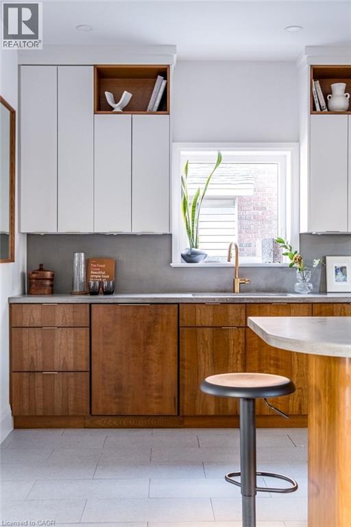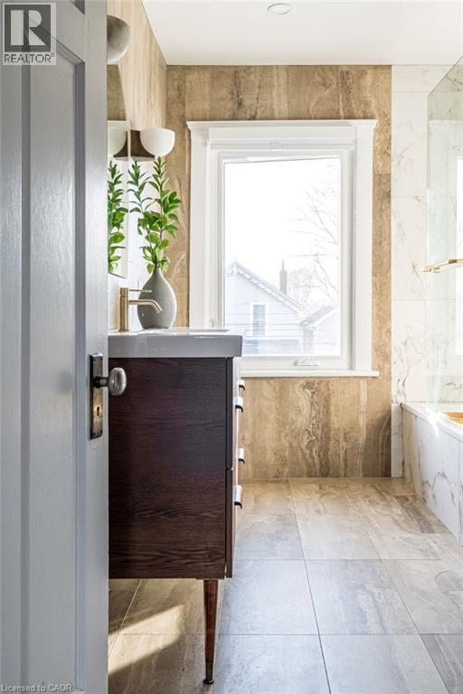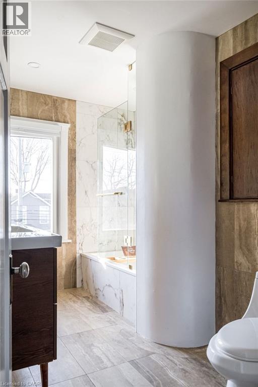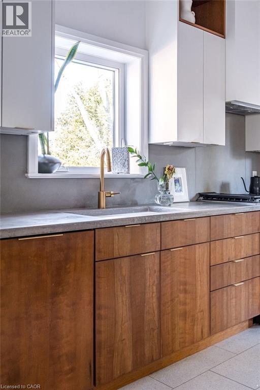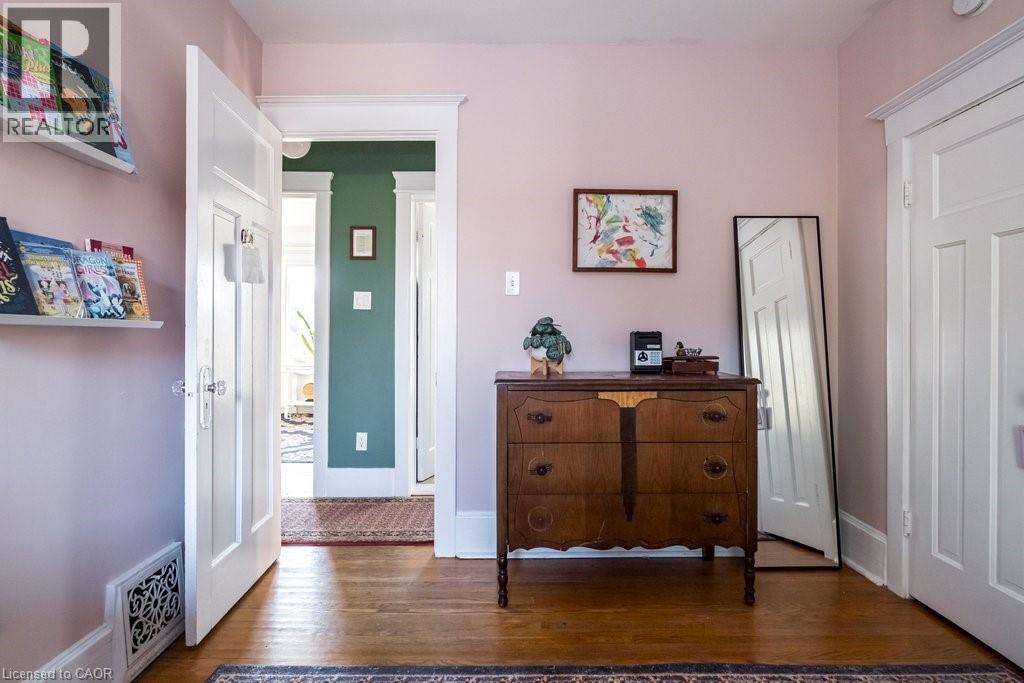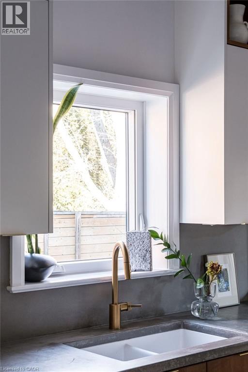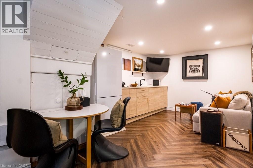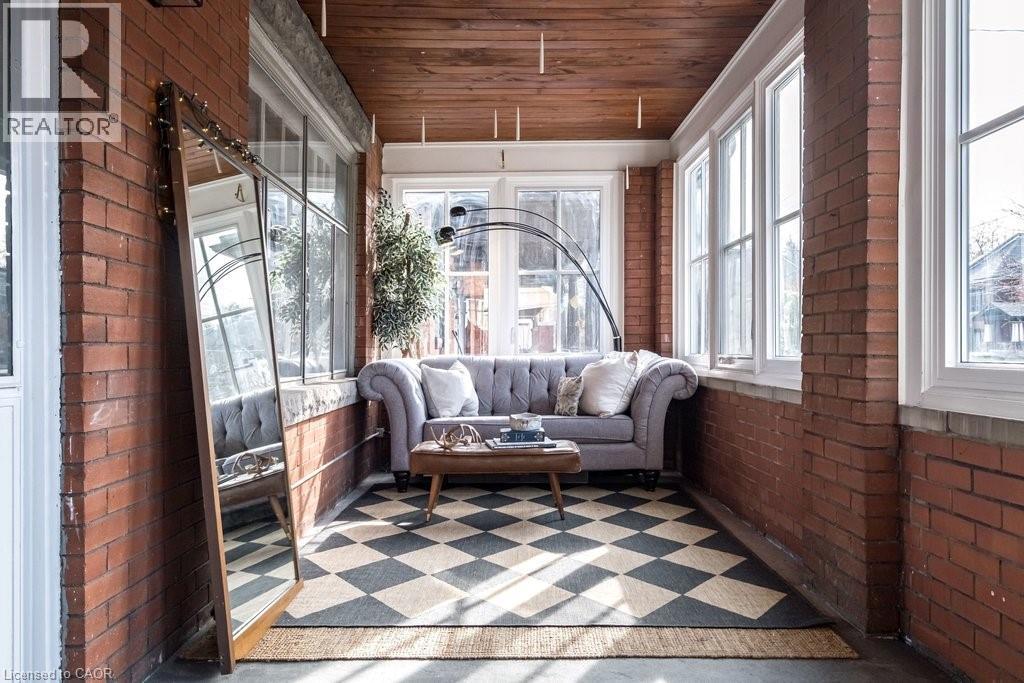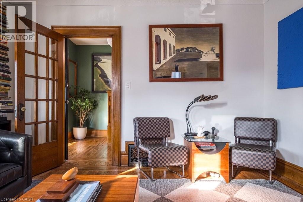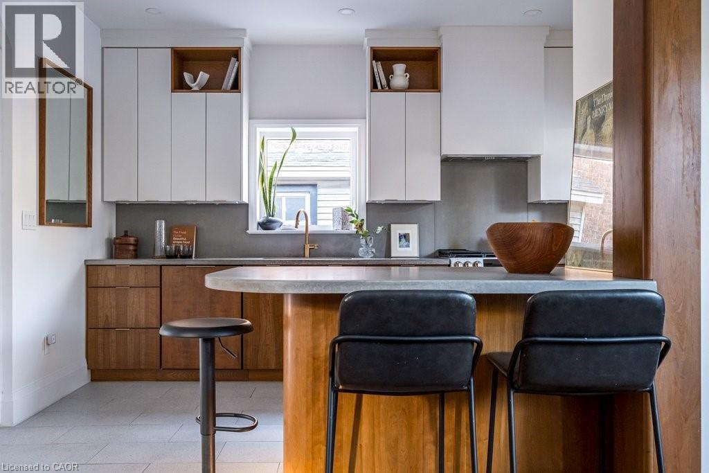 A rare opportunity to own a beautifully preserved and thoughtfully updated century home south of Aberdeen in one of Hamilton’s most sought-after neighbourhoods. Perfectly positioned in Kirkendall South, just steps to the Niagara Escarpment, this timeless residence offers over 2,650 sq. ft. of living space, with basement, 3-season rooms, and studio included. Four bedrooms, two full bathrooms, and two kitchens. The enclosed three-season front sunroom, fitted with newer windows and door (2024), provides a gracious introduction to an interior defined by refinished hardwood floors, natural wood trim, a cozy gas fireplace, french door, and original pocket doors. The heart of the home is the fully renovated kitchen, featuring custom floor-to-ceiling solid cherry cabinetry with a rounded peninsula, poured concrete countertops and backsplash crafted by Broe Design, a GE Café matte white gas convection range, and a Bosch panel-ready dishwasher. An enclosed porch just off the kitchen captures serene evenings all season long overlooking the backyard. Upstairs, three bedrooms share refinished hardwood flooring, 4 pc bath has been fully updated with floor-to-ceiling porcelain tile and a glass shower enclosure (2023). The finished basement offers a self-contained nanny suite with a fourth bedroom, second kitchen, three-piece bathroom with glass shower and porcelain tile surround (2019), sitting area, a charming children’s reading nook tucked under the stairs, laundry area, generous storage. The home has been comprehensively upgraded with a new 200-amp electrical panel, spray foam insulated basement walls, R50 attic insulation, updated HVAC ducting, and a 2021 roof covering both the main home and detached studio. Outside, enjoy a custom stamped concrete backyard by Silva's Concrete (2024), a new rear fence (2023), a large detached studio with heat and hydro, and a long private drive. Just steps to shops, cafés, and restaurants on Dundurn and Locke St. S. It's a beautiful community. (id:49203)
