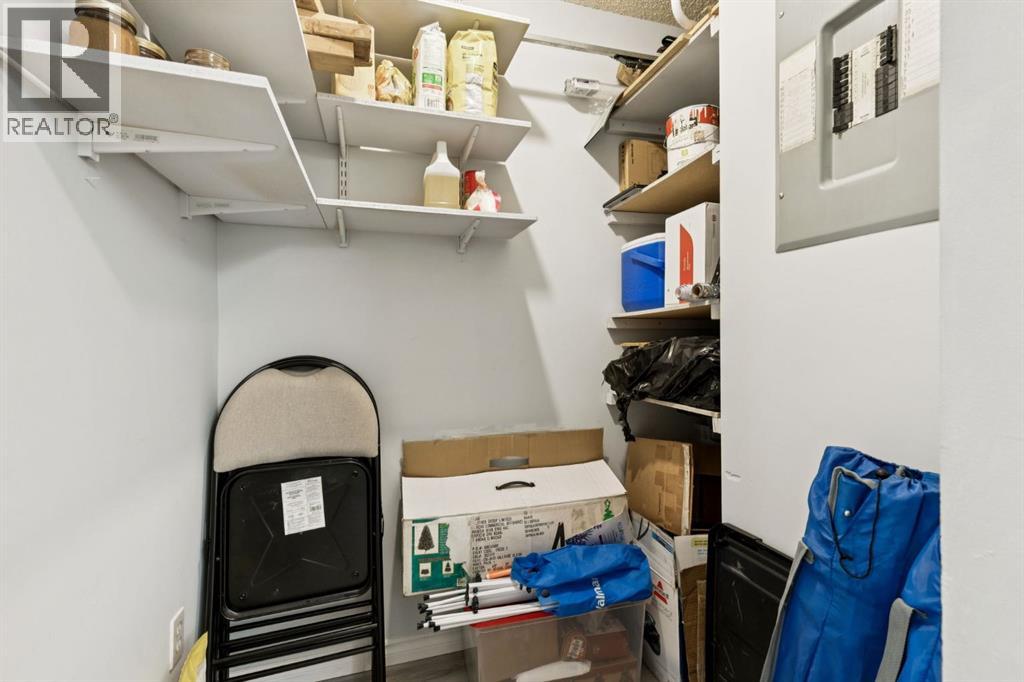 $359.19 MonthlyWelcome to this bright and beautifully maintained 1bedroom, 1 bathroom condominium featuring an large, private balcony where you can enjoy sunny mornings and comfortable shade in the afternoon.The thoughtfully designed kitchen features full height cabinetry with elegant over cabinet lighting for a clean European inspired look, along with ample countertop space that provides plenty of room for cooking and entertaining. A convenient pass through to the living room allows for natural light and easy conversation while hosting.The open layout flows effortlessly into a spacious dining and living area that can comfortably accommodate a full dining suite and a variety of furniture arrangements, making it ideal for everyday living or entertaining guests. A ceiling fan with integrated lighting adds comfort to the dining space.The large bedroom easily fits a king size bed and offers a generous double closet. Additional storage is thoughtfully incorporated with a wide entry closet and a separate storage room. The stacked washer and dryer are tucked neatly into their own closet just outside the bedroom for added convenience.This fourth-floor home is filled with natural morning light and features stylish laminate flooring, a private covered balcony, and excellent in suite storage. Low monthly condo fees include heat, water, sewer, insurance, professional management, reserve fund contributions, snow removal, landscaping, parking, and common area maintenance.The location offers exceptional convenience with quick access to Peigan Trail, Deerfoot Trail, and the new Ring Road system, while still being just minutes from downtown Calgary. Shopping, schools, parks, and playgrounds are all within walking distance, and a bus stop is conveniently located directly in front of the building.Additional features include an assigned parking stall and ample visitor parking. Whether you are a first-time buyer, downsizer, or investor, this well-kept home presents a fantastic opportunity in a h ighly accessible location. This suite is excellent value, reach out today to book your private viewing. (id:49203)