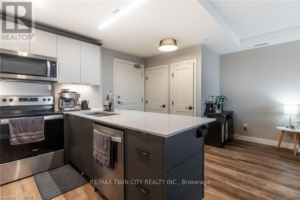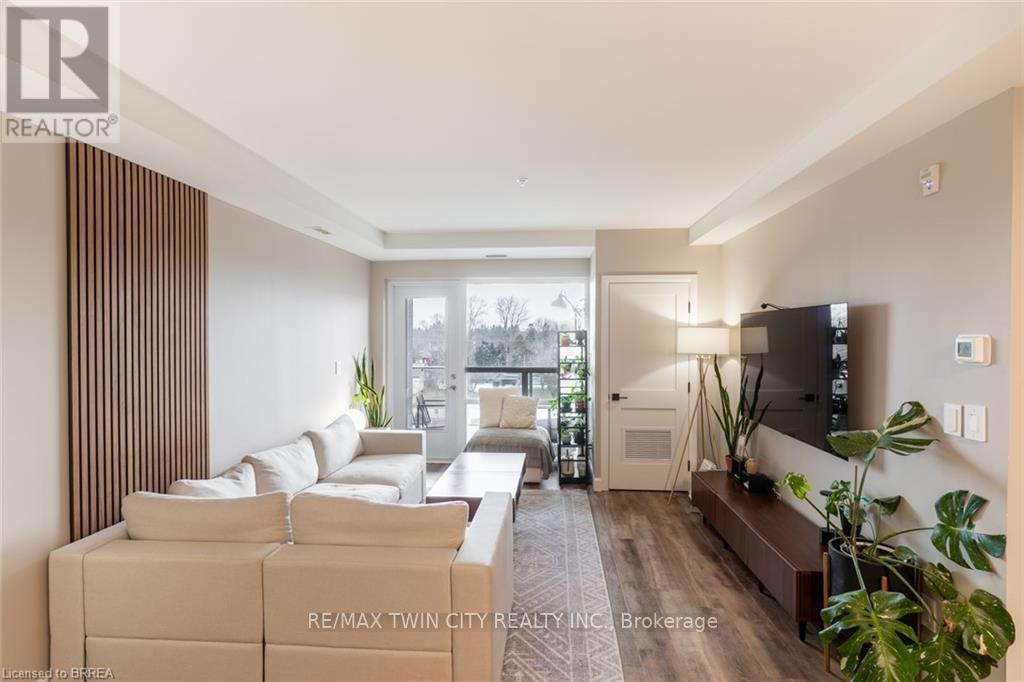 Welcome to Unit 412 at The Landing, a modernly designed boutique condo community at 34 Norman Street in Brantford's vibrant north end. A minute to 403 acess, less than 30 minutes to Hamilton! This bright, open-concept suite features a functional living, dining, and kitchen layout with excellent flow and natural light throughout. The primary bedroom includes a walk-in closet and private ensuite, while the second bedroom is well-proportioned and located near the main bathroom, offering flexible living arrangements for guests or a small family. In-suite laundry adds everyday convenience. Residents of The Landing enjoy a standout set of building amenities, including a fitness centre, library lounge, speakeasy social space, and a rooftop patio ideal for relaxing and entertaining. The rooftop area also offers space for BBQs and lounge seating, enhancing lifestyle appeal. The building's location provides quick access to Highway 403, costco, shopping, great restaurants and patios in walking distance! An excellent opportunity to lease a modern condo in one of Brantford's most desirable and amenity-rich residential communities. Utilities are additional, water is included. (id:49203)